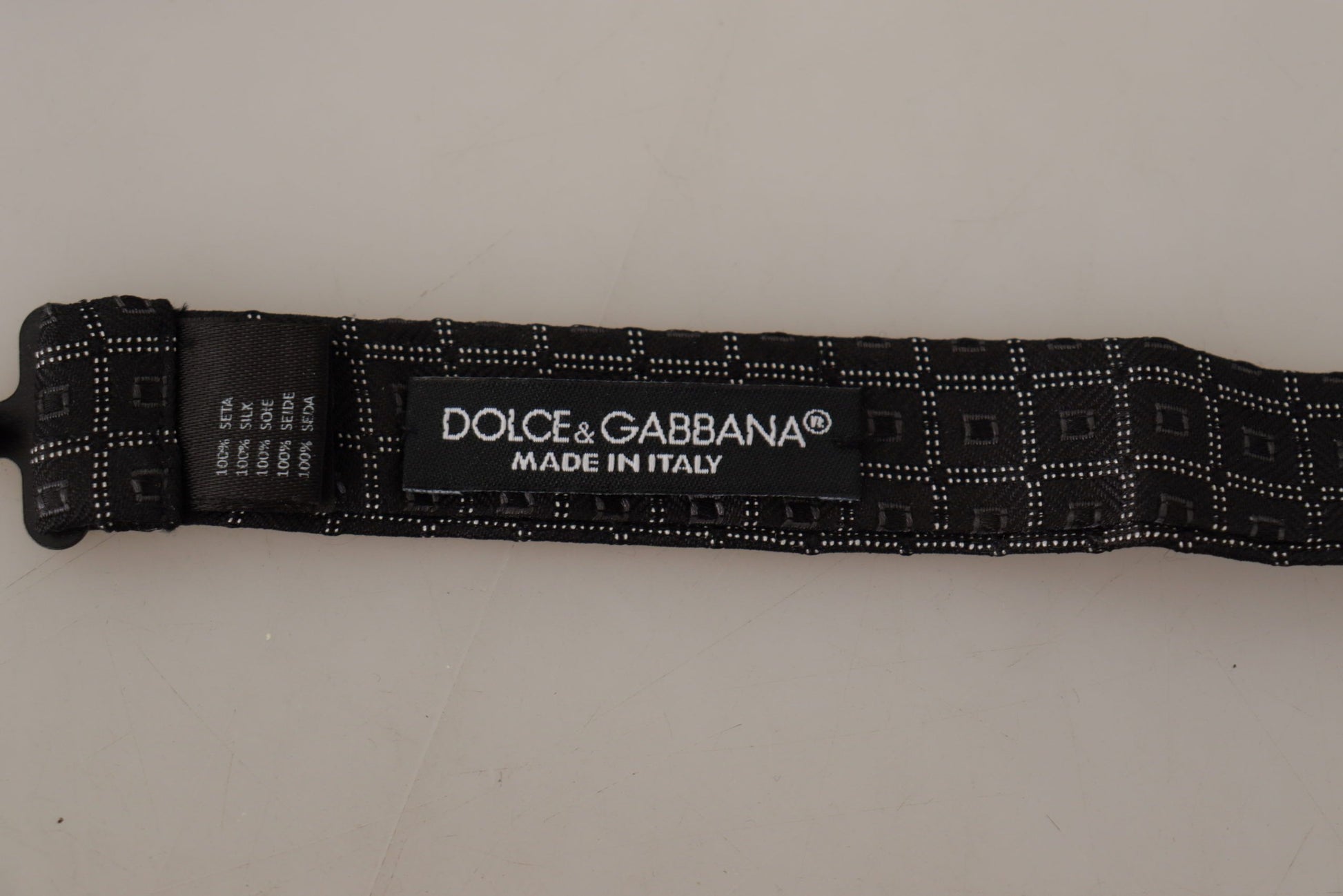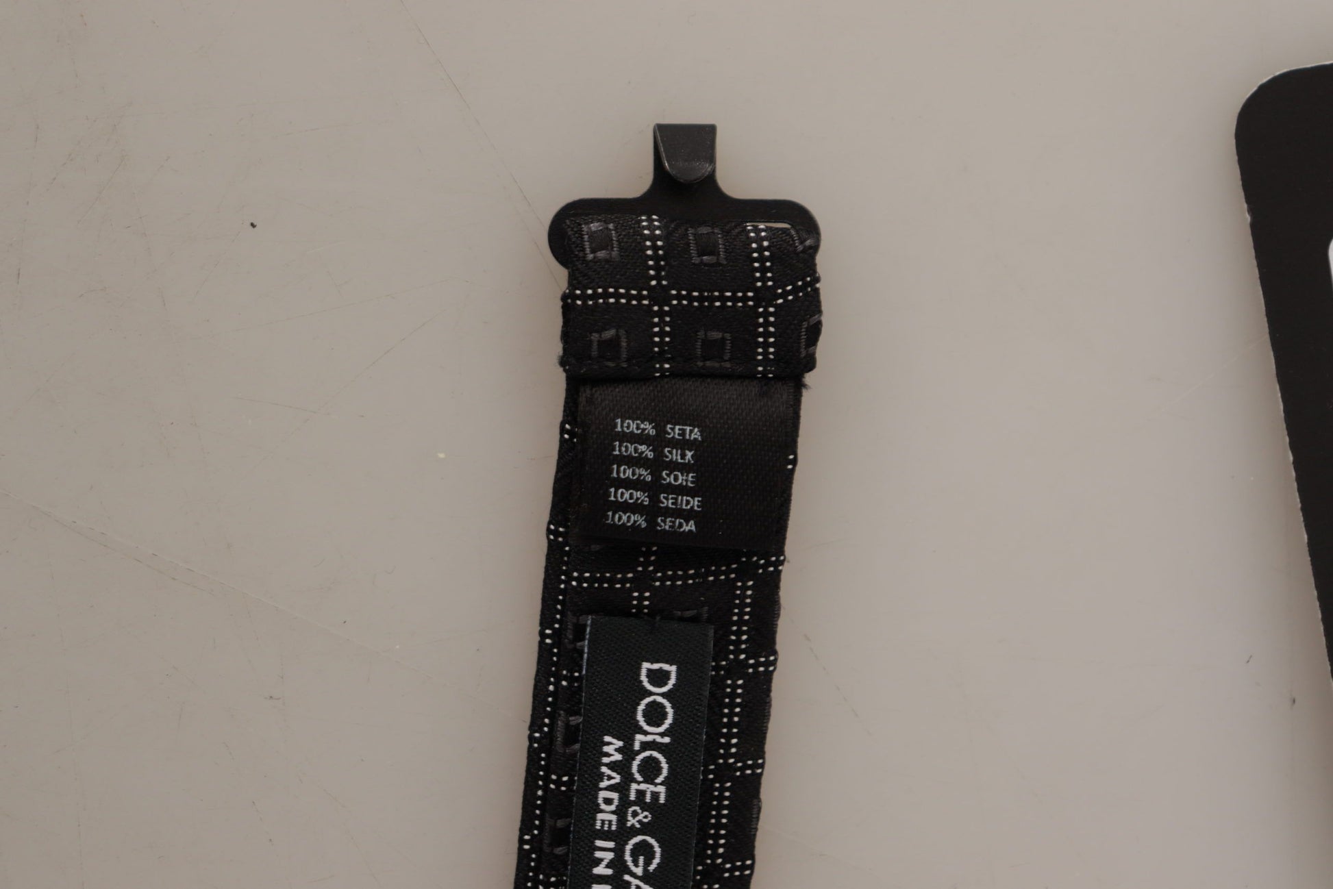 Sophisticate your ensemble with this stunning, 100% Authentic Dolce & Gabbana black silk bow tie. Perfect for exclusive events, this tied bow tie features a captivating Fantasy Print, offering a touch of elegance to any outfit. Crafted in Italy, it boasts an adjustable neck strap ensuring a perfect fit for any gentleman.