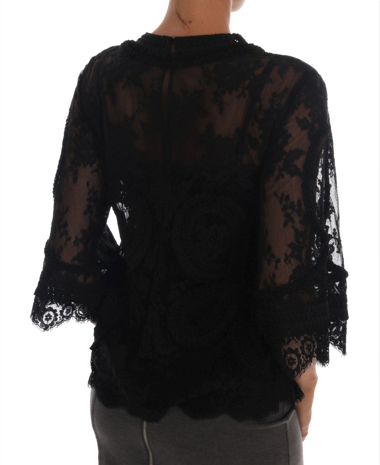 Unveil your inner style with this stunning Dolce & Gabbana black floral lace torero blouse. Exquisitely crafted, this garment features a delicate theme of matador-inspired design, evoking an air of sophistication and allure. Complete with a hook closure at the back for a seamless fit and subtle logo details, this blouse embodies Italian luxury.