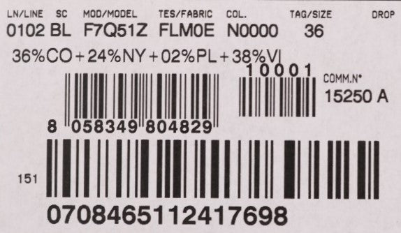 Material: 38% Rayon, 38% Cotton, 24% Nylon, 2% Polyester