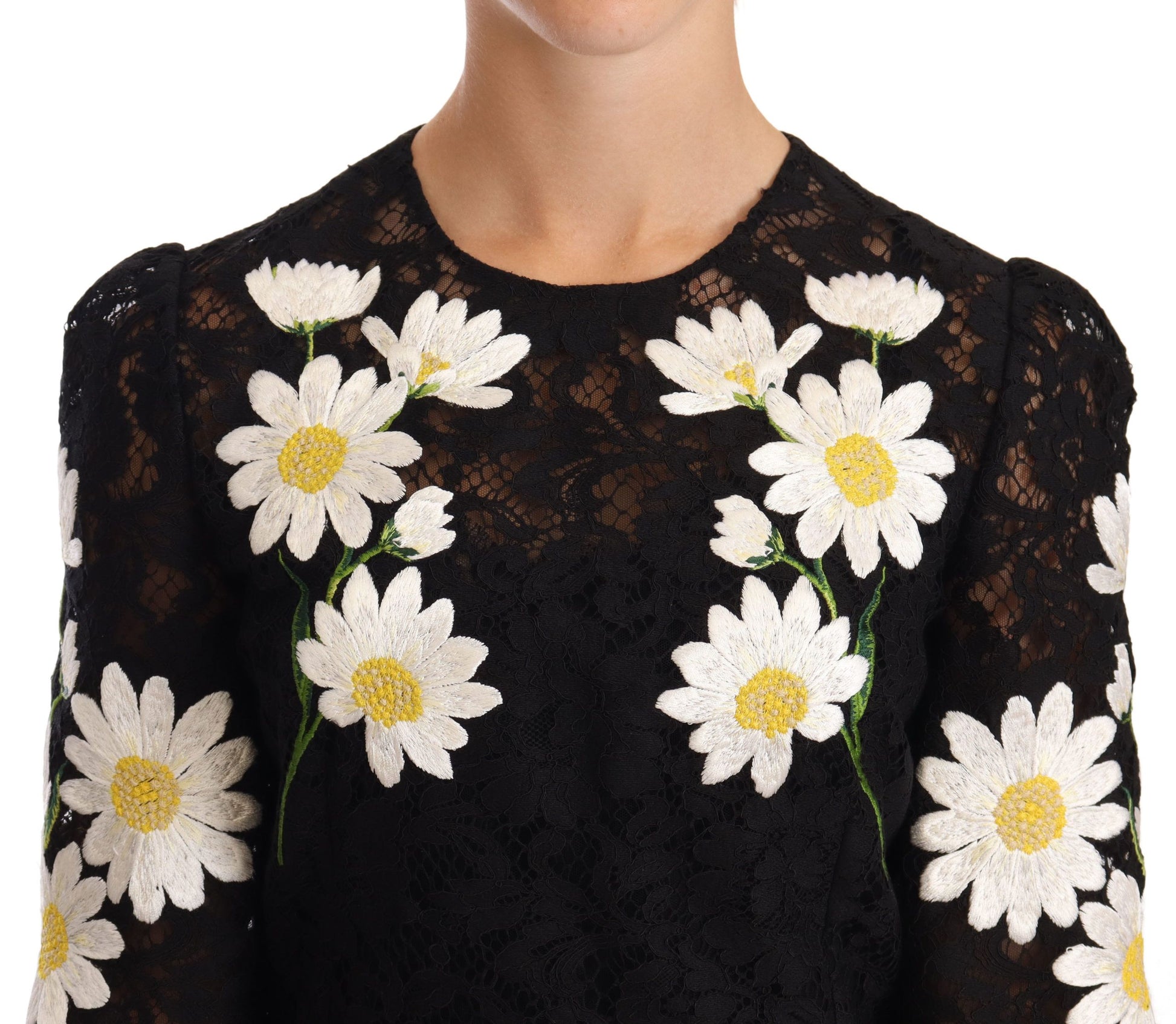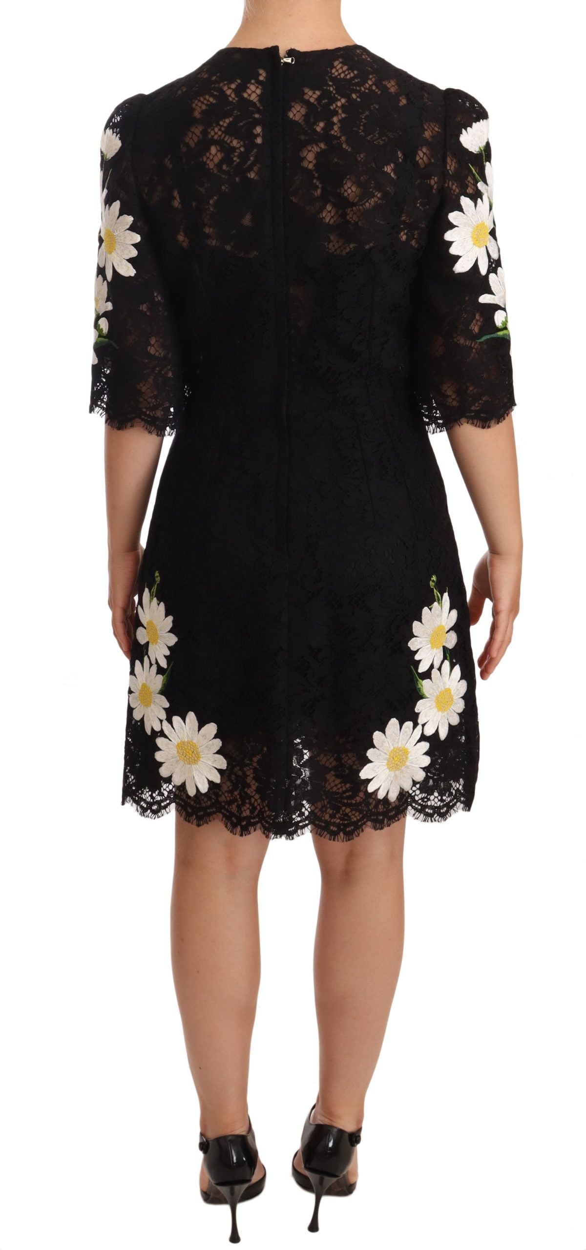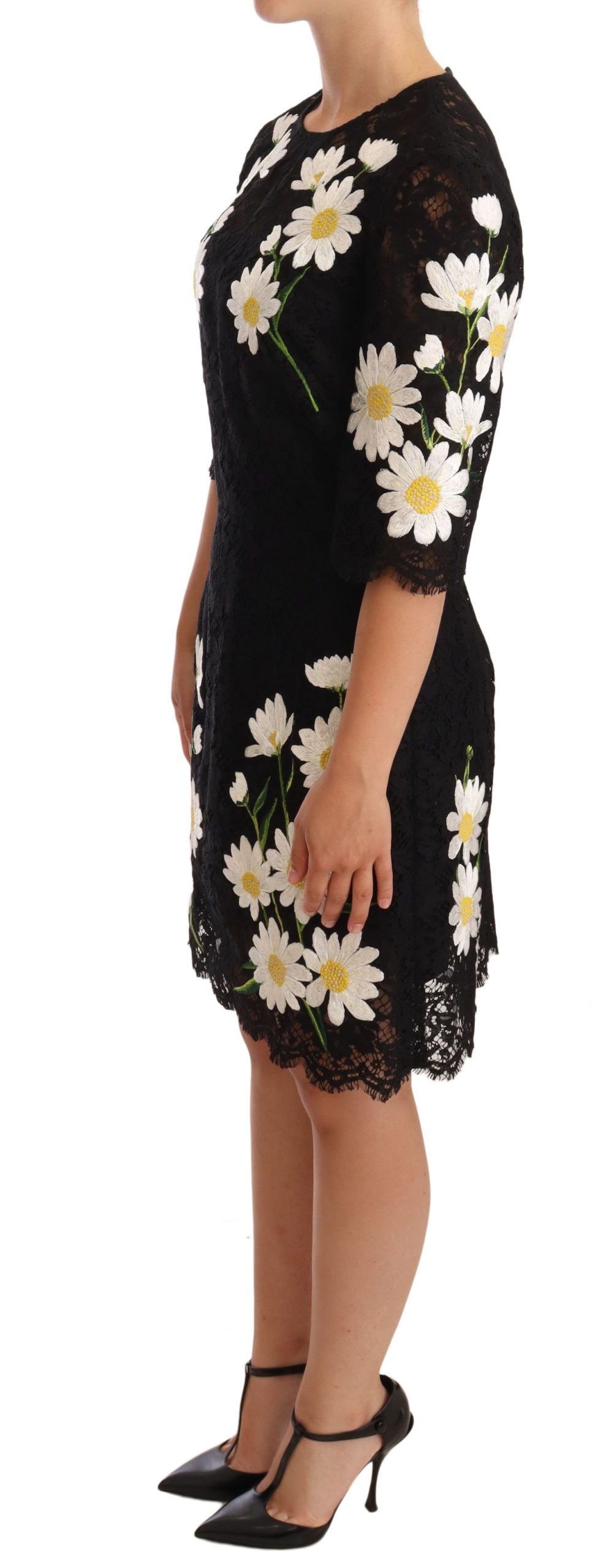 Indulge in the epitome of Italian craftsmanship with this exquisite Dolce & Gabbana sheath dress. Designed for those who appreciate the delicate interplay of floral lace and daisy embroidery, this dress is a masterpiece of style and sophistication. The luxurious blend of nylon, cotton, and viscose offers a perfect balance of comfort and durability, while the stretch silk lining ensures a flawless fit. This charming black dress is complete with a convenient zipper closure at the back, adding both functionality and elegance to your wardrobe. Elevate your evening attire with the blend of modern design and classic charm that only Dolce & Gabbana can provide.