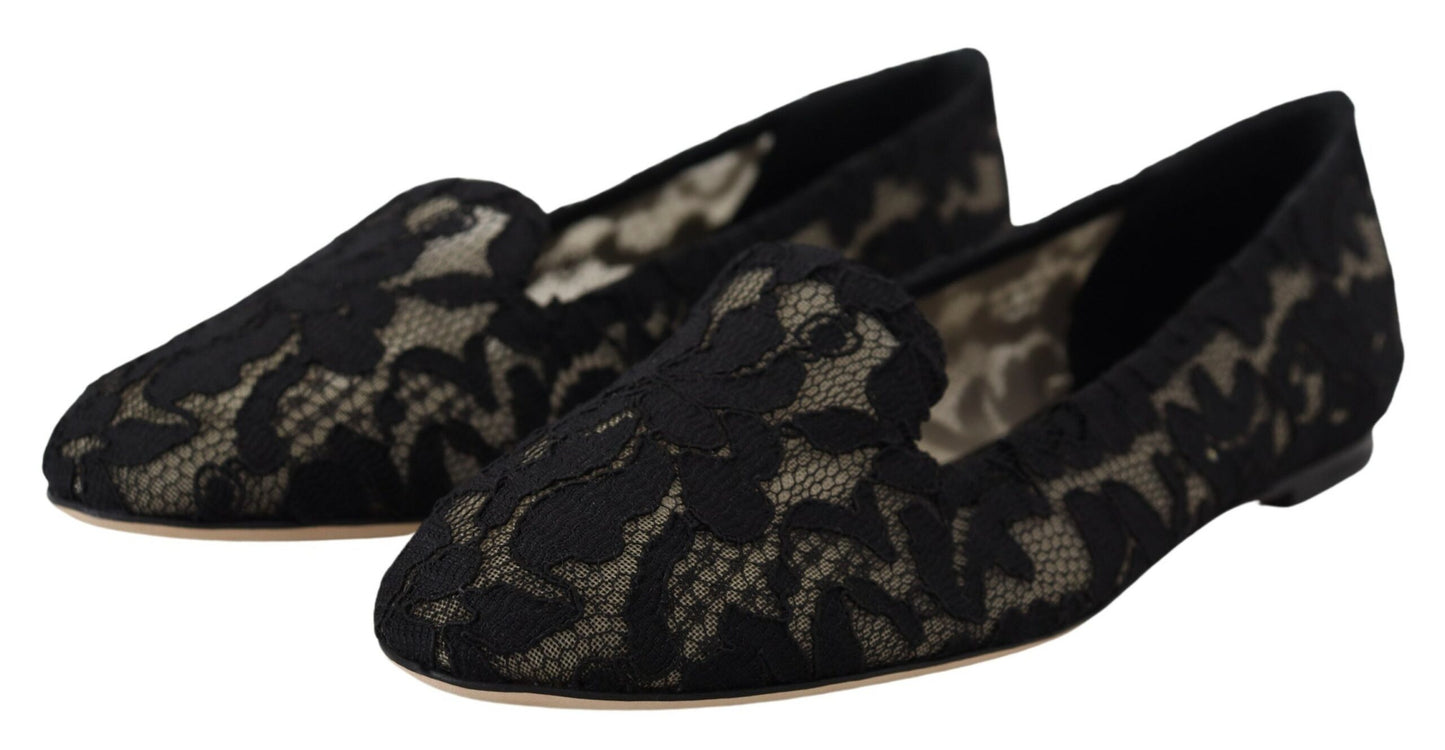 Discover elegance and comfort with these beautiful black lace flat shoes, perfect for adding a touch of sophistication to any outfit. Coming from the luxurious Dolce & Gabbana collection, these shoes are brand new with tags and embody the brand’s iconic style and craftsmanship. Expertly made in Italy, they feature a blend of soft viscose and cotton with a hint of polyamide for durability. The soles are crafted from fine leather and rubber, offering both high quality and comfort. These flats are adorned with delicate logo details, making them an authentic luxury statement for fashion-forward individuals.