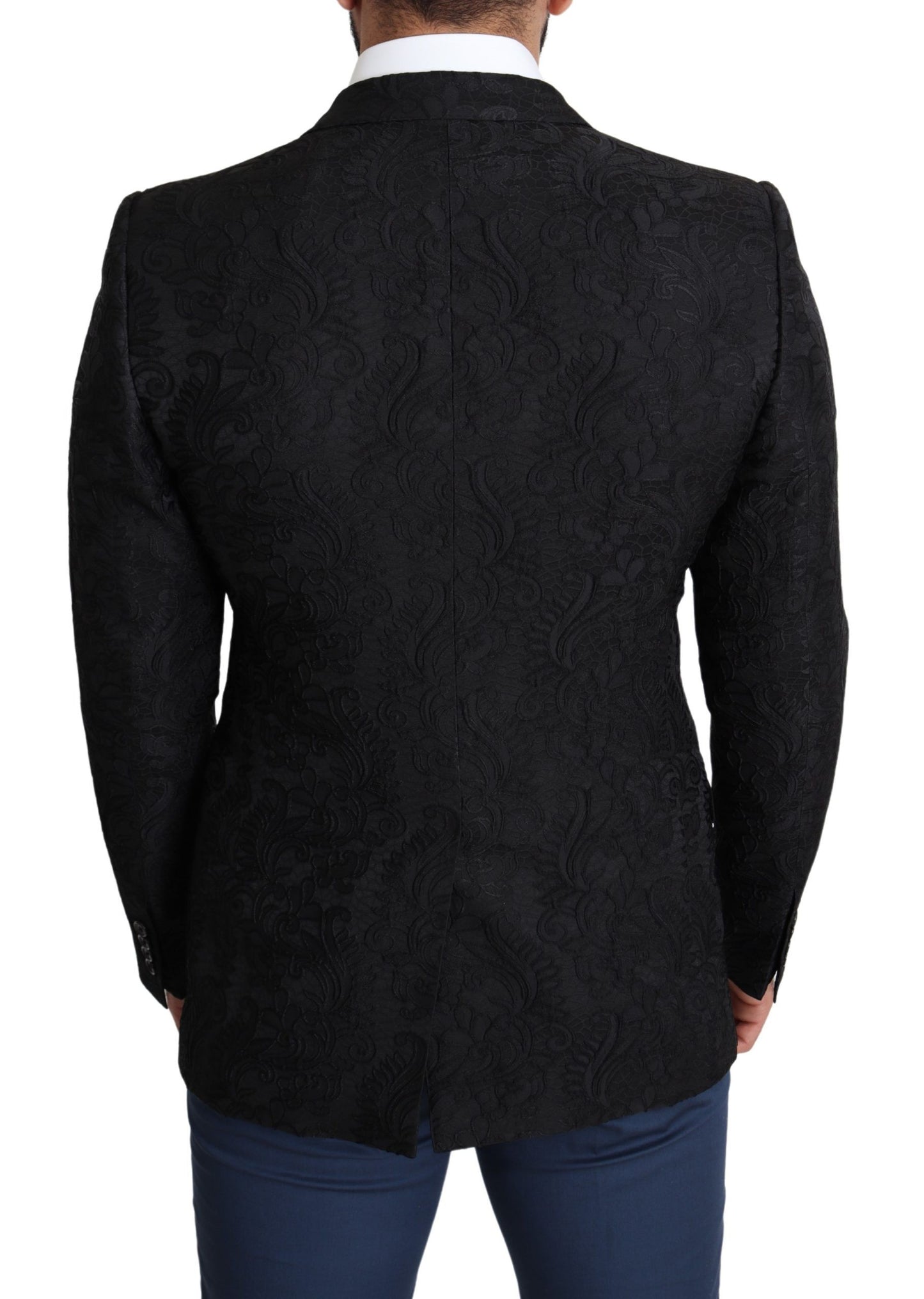 Exude sophistication with this impeccably tailored Dolce & Gabbana Martini blazer jacket. Featuring a black floral pattern, this piece is a testament to Italian craftsmanship and luxury style. Designed for the modern man, the blazer offers a regular fit and is styled with a single-breasted two button closure. The construction boasts three external pockets, three internal pockets, and a back vent for added comfort. Perfect for formal events, it’s an exclusive garment that’s as practical as it is stylish.