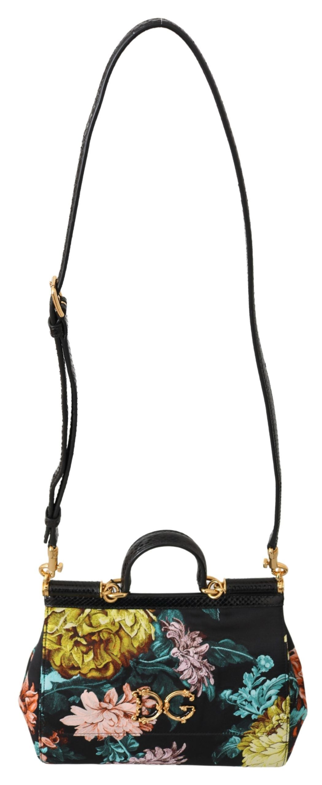 Indulge in the epitome of Italian luxury with the Dolce & Gabbana Sicily Shoulder Bag. Adorned with a vibrant floral print set against a sleek black background, this exquisite item blends classic elegance with a touch of modern flair. Crafted from a sumptuous blend of materials with a predominant composition of 70% PL and 30% Ayers Leather, this stunning bag boasts both beauty and durability. Gold metal accents provide a lavish finishing touch, exemplifying the brand’s attention to detail and commitment to opulence.