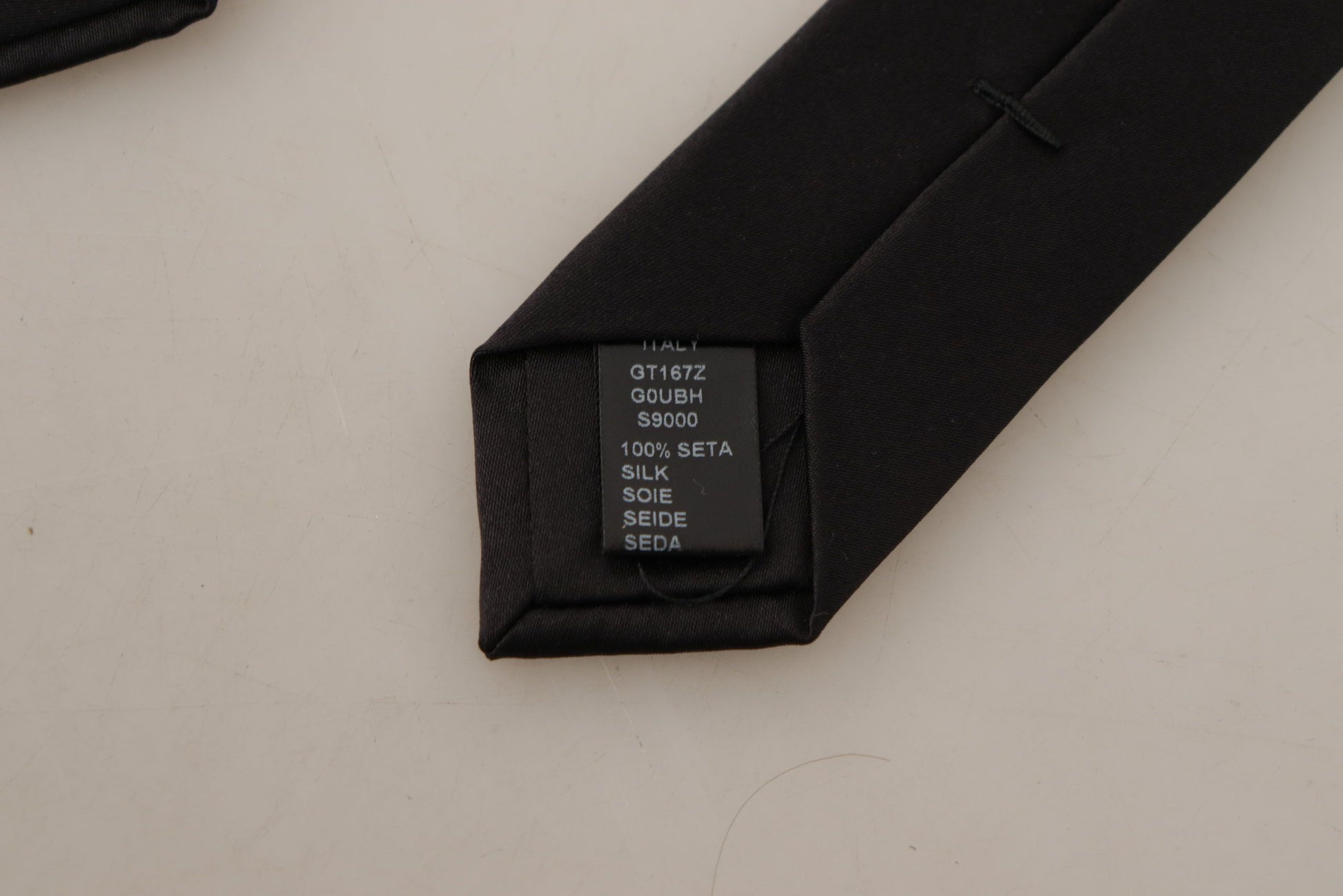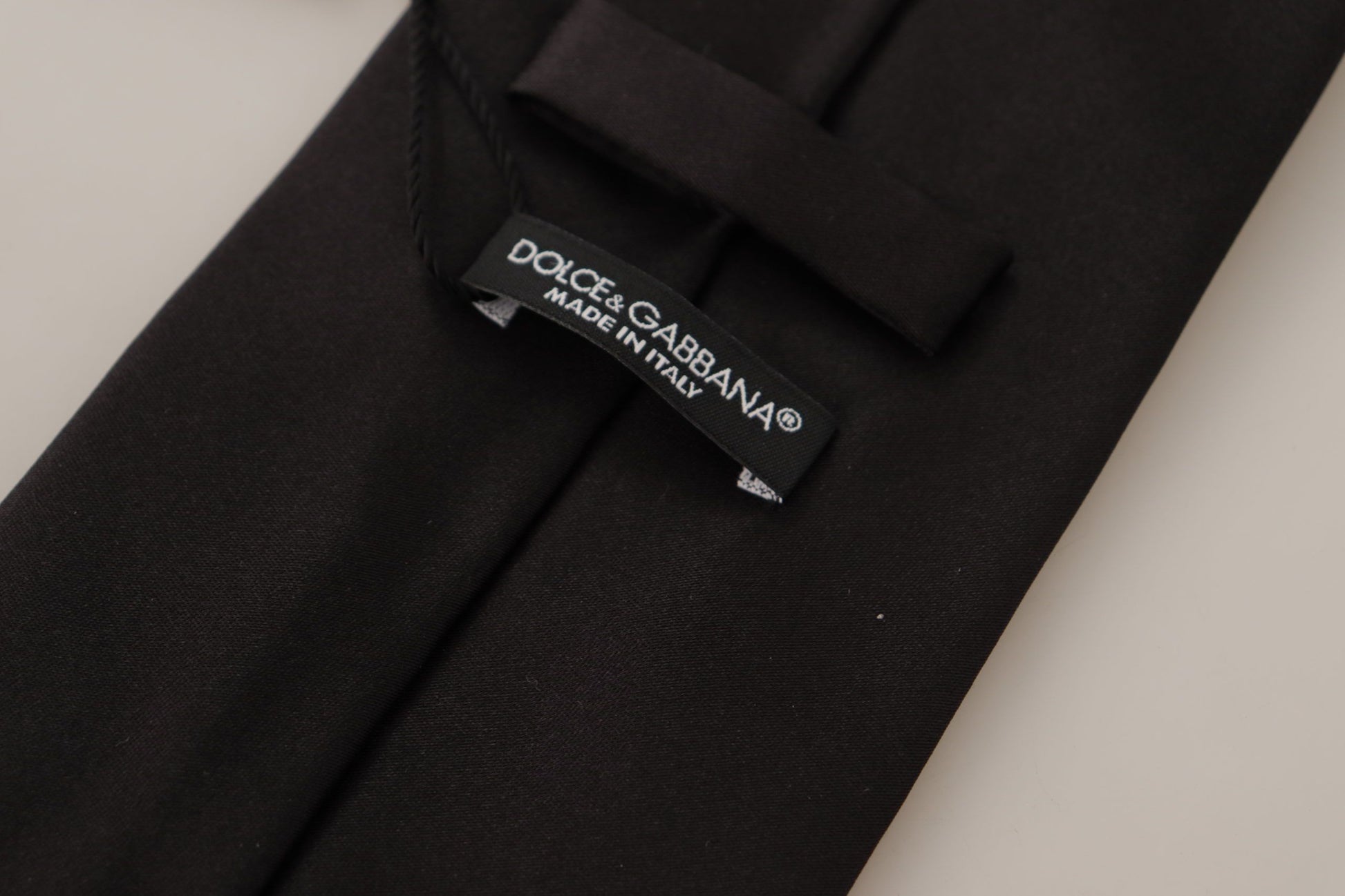Discover the epitome of sophistication with this stunning Dolce & Gabbana tie. Crafted from luxurious 100% silk and made in Italy, it is the perfect accessory for any formal occasion or as a distinguished addition to your business attire. Its classic black hue ensures it can be paired with a wide array of shirt colors and patterns, making it a versatile and essential piece in your wardrobe.