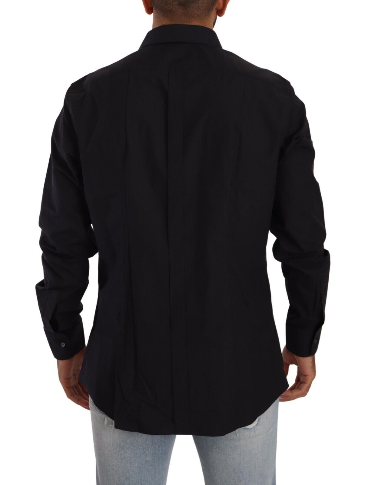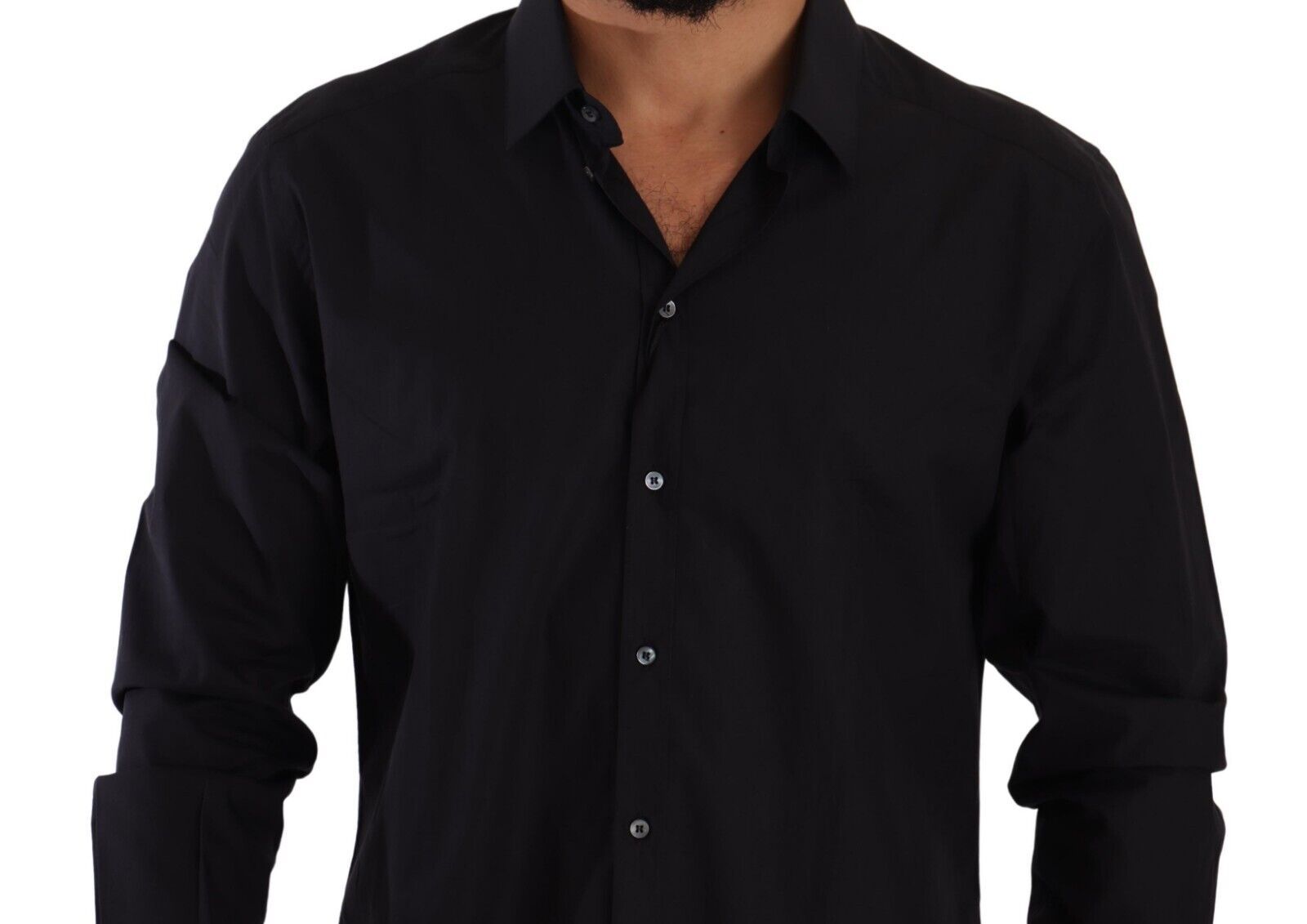 Introducing the epitome of sophistication with our exclusive Dolce & Gabbana dress shirt, from their esteemed GOLD collection. This piece exudes elegance with its sleek black hue and slim fit, crafted from the finest 100% cotton for a luxurious feel against the skin. Perfect for discerning gentlemen who demand both style and comfort.
