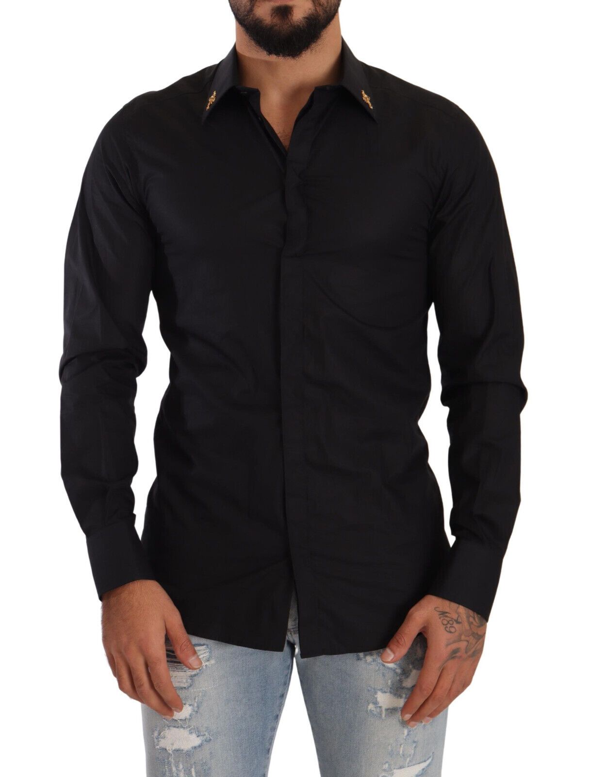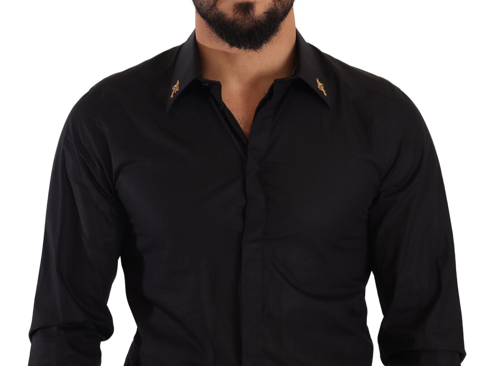 Experience the epitome of Italian craftsmanship with this exquisite Dolce & Gabbana GOLD dress shirt. Defined by its luxurious 100% cotton fabric, this shirt boasts a sharp slim fit that accentuates the silhouette. The classic neck, long sleeves, and sophisticated front button closure make it a timeless addition to any wardrobe. Intricate logo details add a dash of the brand’s iconic style, ensuring that this piece is not just a garment, but a statement.