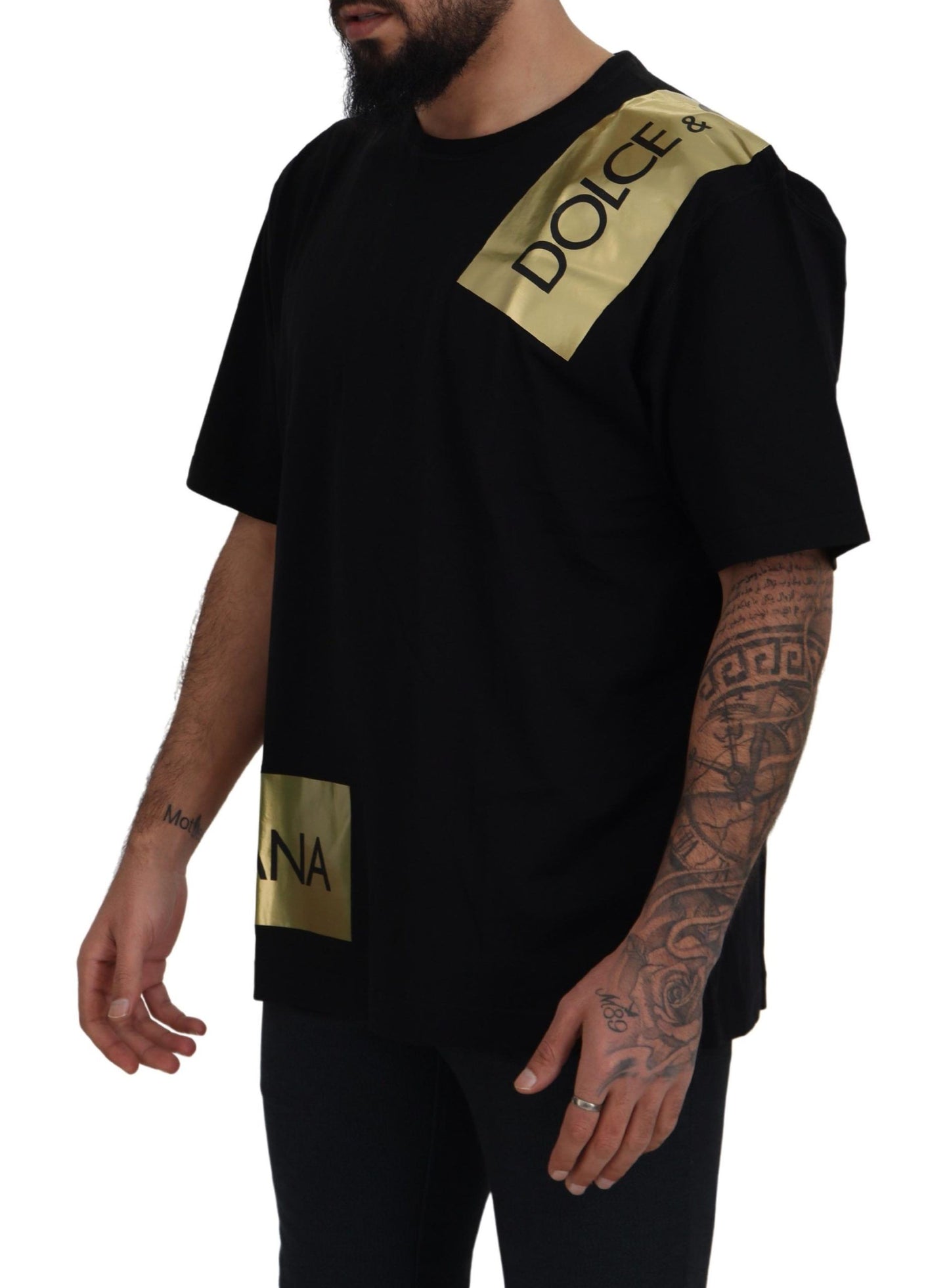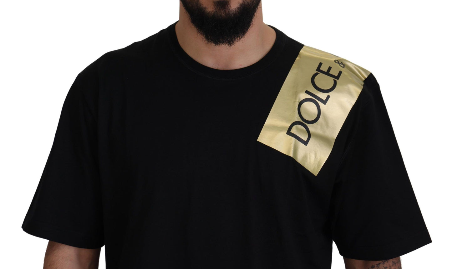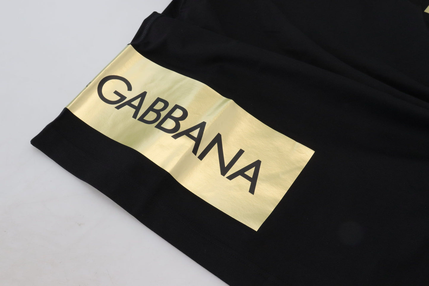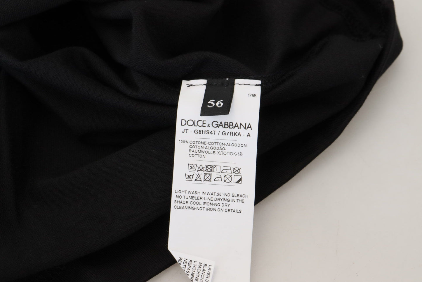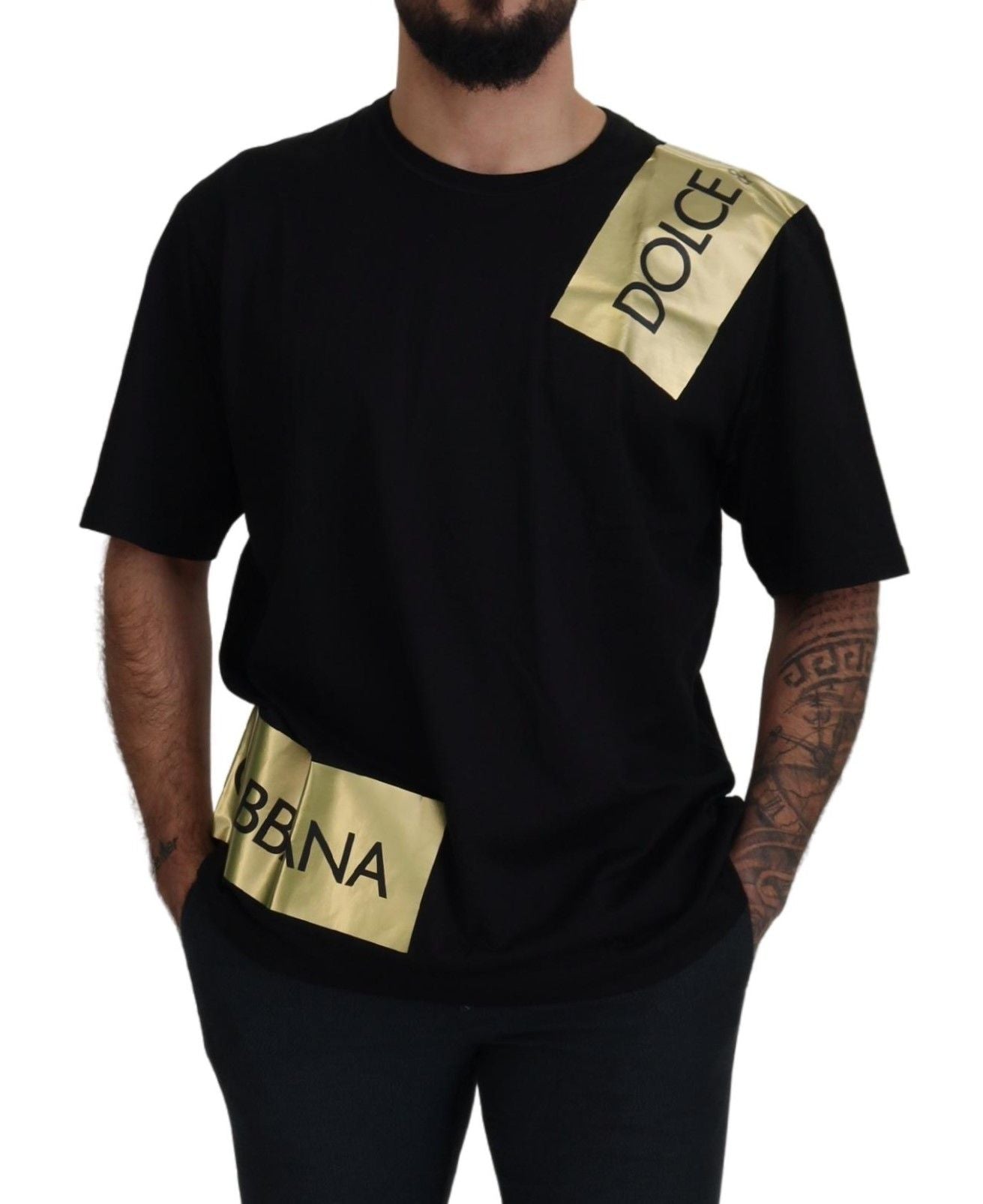 Indulge in the epitome of Italian luxury with this exquisite Dolce & Gabbana T-shirt. Beautifully crafted to elevate your wardrobe, this top exudes elegance with its sleek black color contrasted by a stunning gold DG logo. Designed for a regular fit and made from the finest 100% cotton, this short-sleeve crewneck T-shirt is not only a style statement but also a testament to premium comfort. It’s perfect for those who appreciate high-end fashion with a touch of opulence. Proudly made in Italy, it is adorned with the iconic logo details, promising to infuse your ensemble with the label’s renowned glamour.