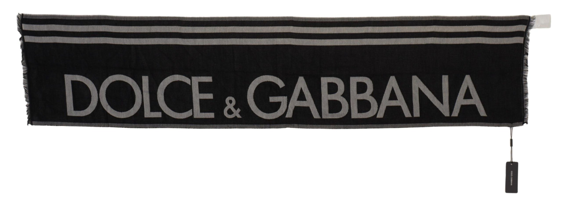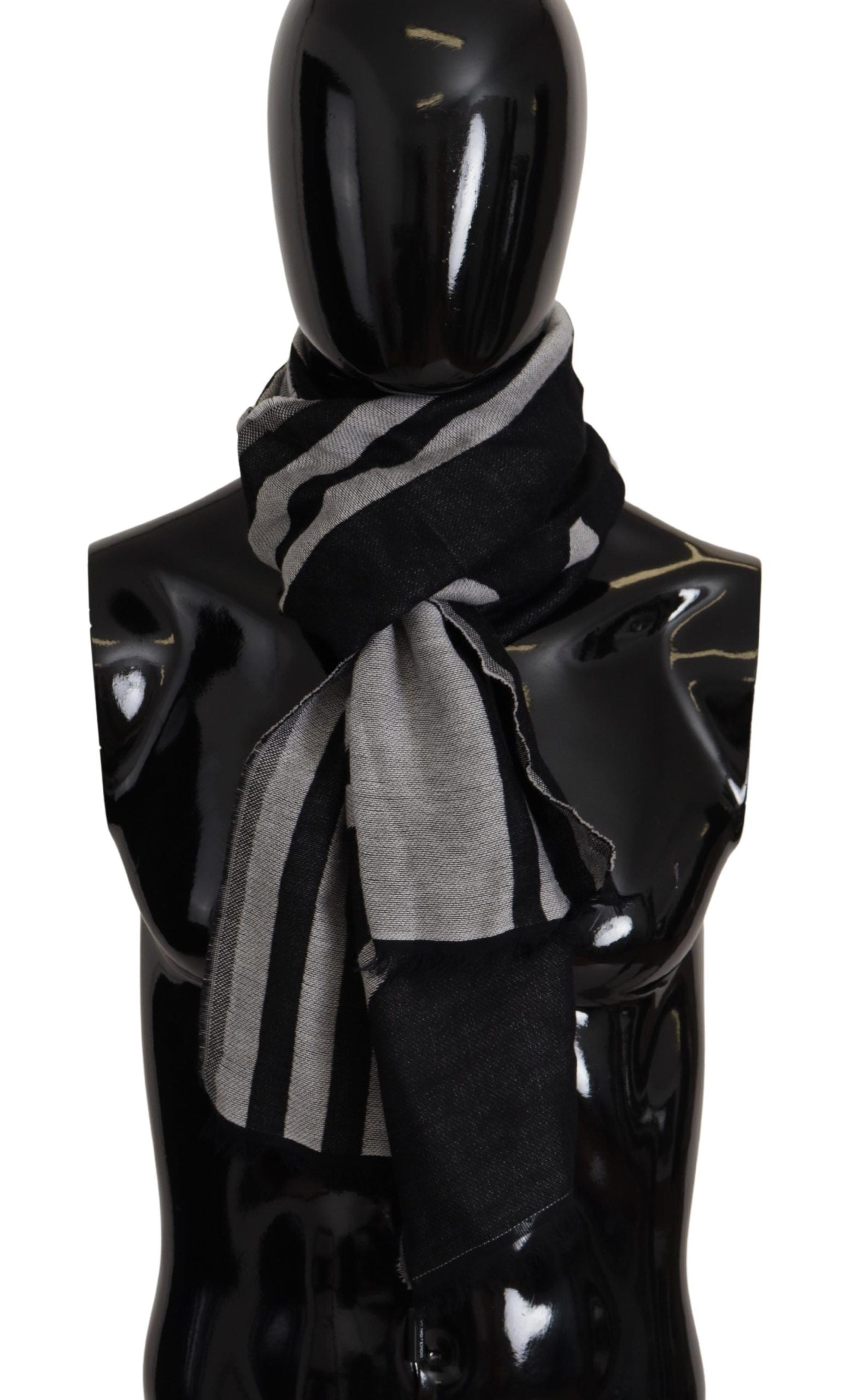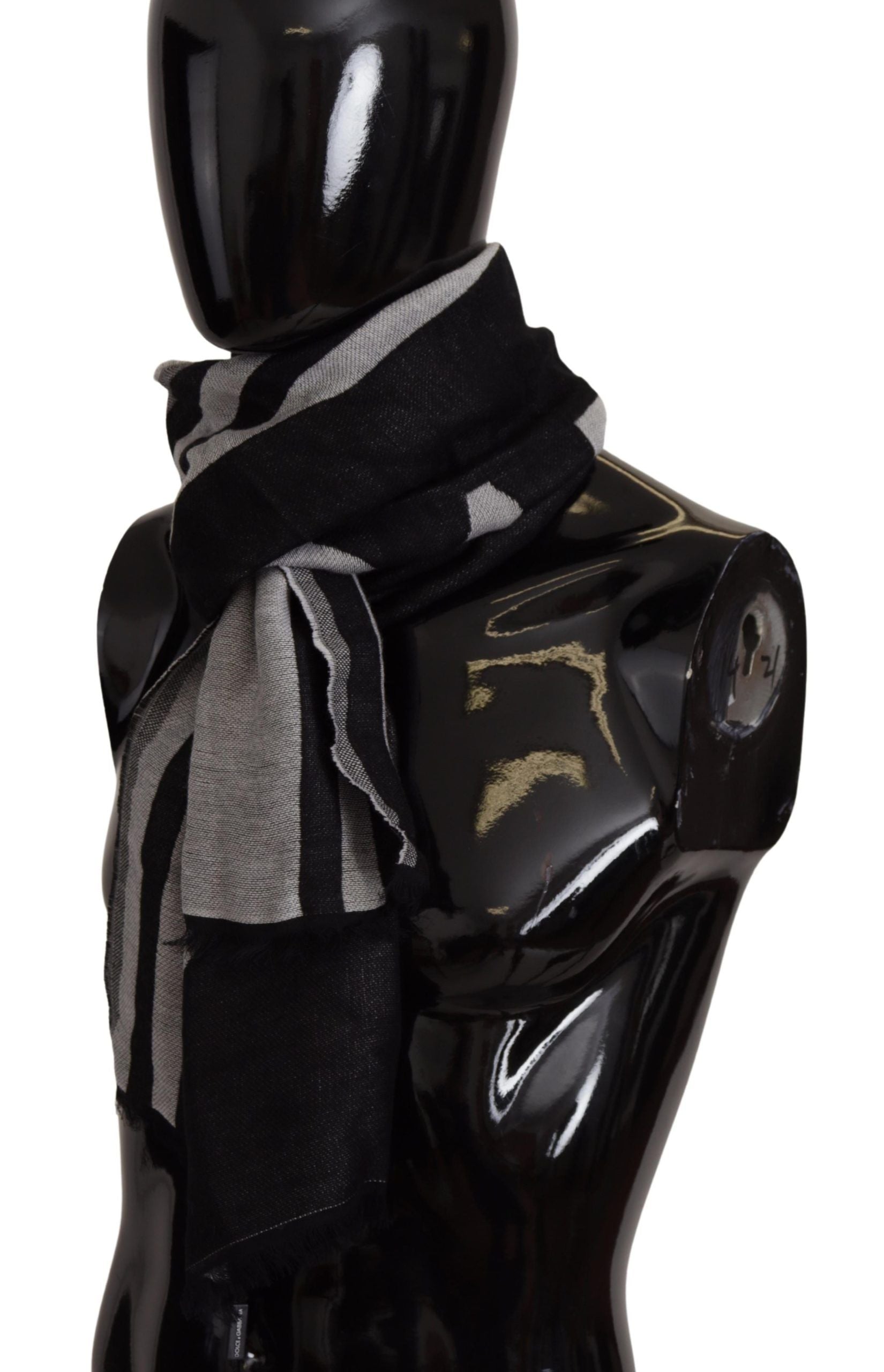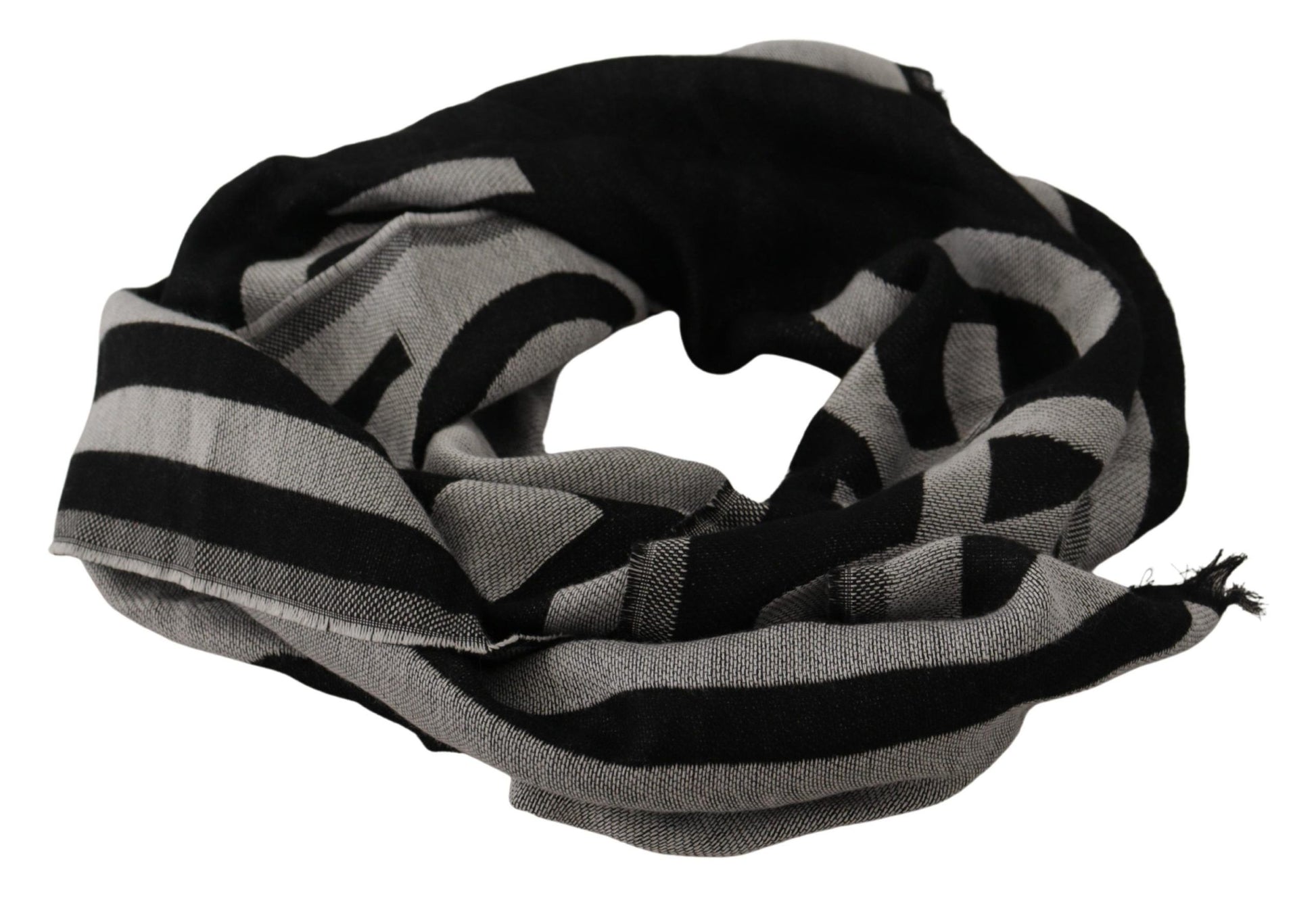 Black Gray Cotton Modal Jacquard Logo Wrap Scarf