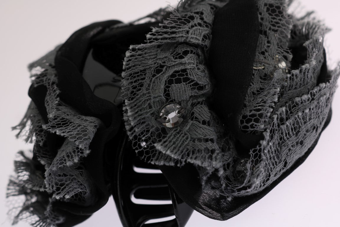 Step up your hair game with this dazzling Dolce & Gabbana floral lace crystal hair claw, perfect for adding a touch of luxury to any outfit. Elegantly crafted with intricate lace and sparkling clear crystals, this hair accessory is a true statement piece.