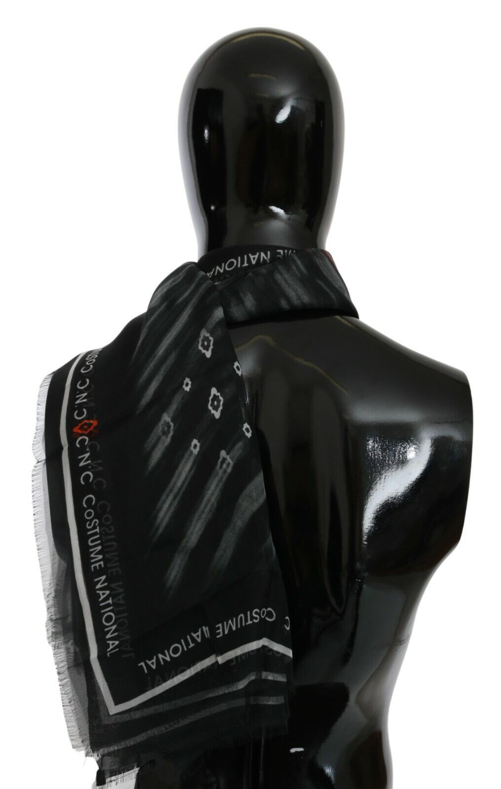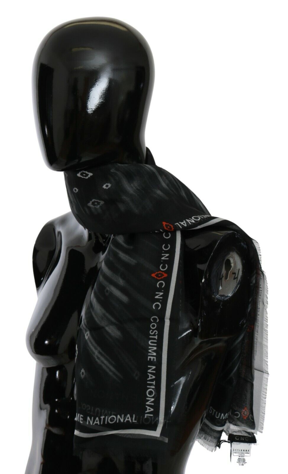 Black Gray Silk Foulard Branded C'N'C Scarf