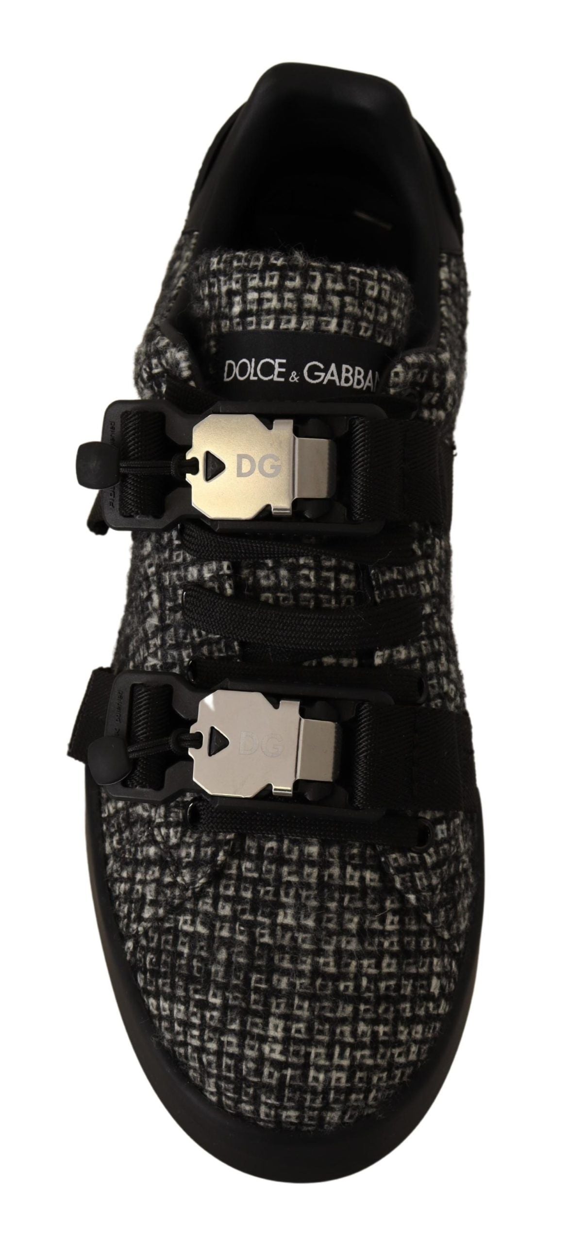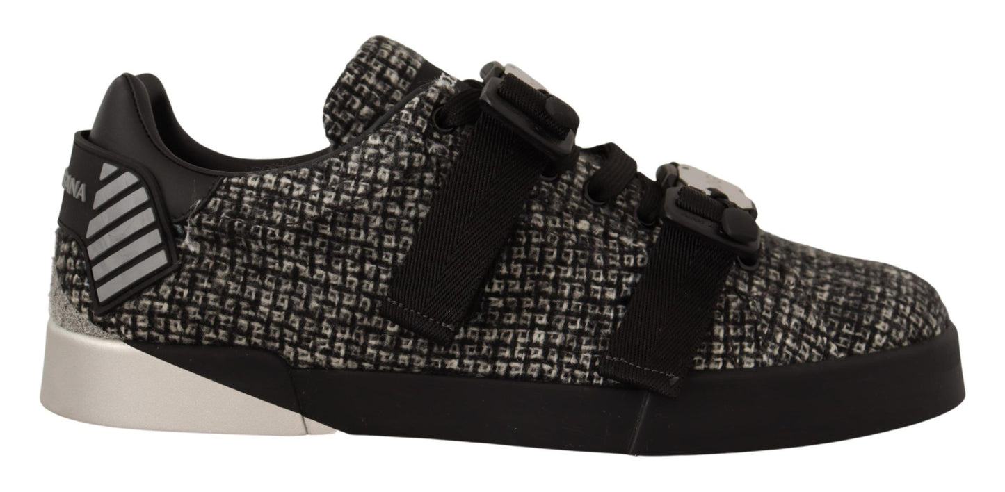 Step into luxury and style with these gorgeous, brand new sneakers. Crafted by the prestigious Dolce & Gabbana, these low top casual sneakers are designed for both comfort and sophistication. Made with premium wool and cotton materials, they feature a versatile black and gray color palette that complements any outfit. The durable rubber sole ensures longevity, while the logo details add an exclusive touch of branding – all proudly Made in Italy.