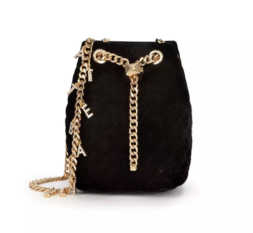 Chic Velvet Mini Bucket Bag with Gourmette Chain