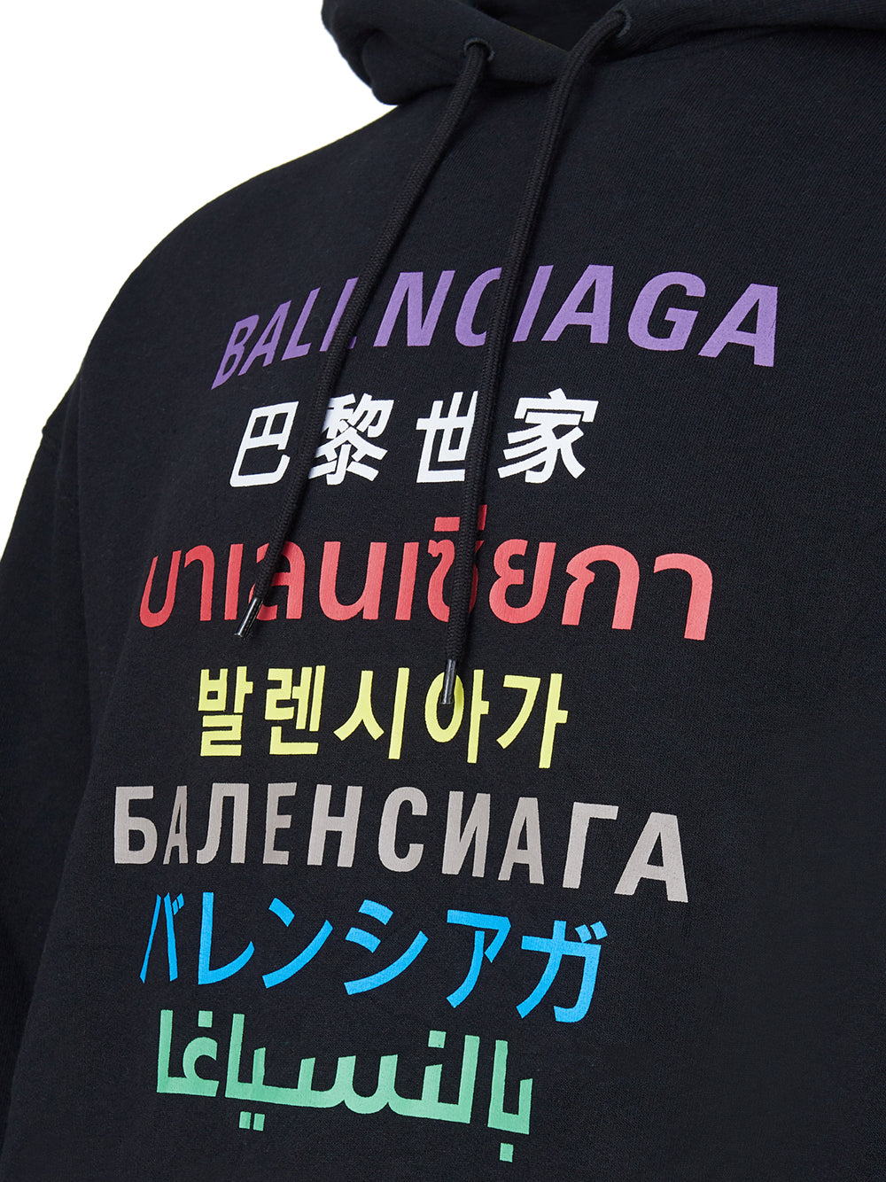 Indulge in the comfort and style of this sumptuous Balenciaga Black Hooded Sweatshirt, a perfect blend of high fashion and casualwear. Made with exceptional craftsmanship in Italy, it features an adjustable hood for your perfect fit, a convenient front maxi pocket, and the brand’s iconic colored logo proudly displayed on the front. The inner fabric is as soft as it is cozy, ensuring this regular-fit sweatshirt will become an essential in your wardrobe.