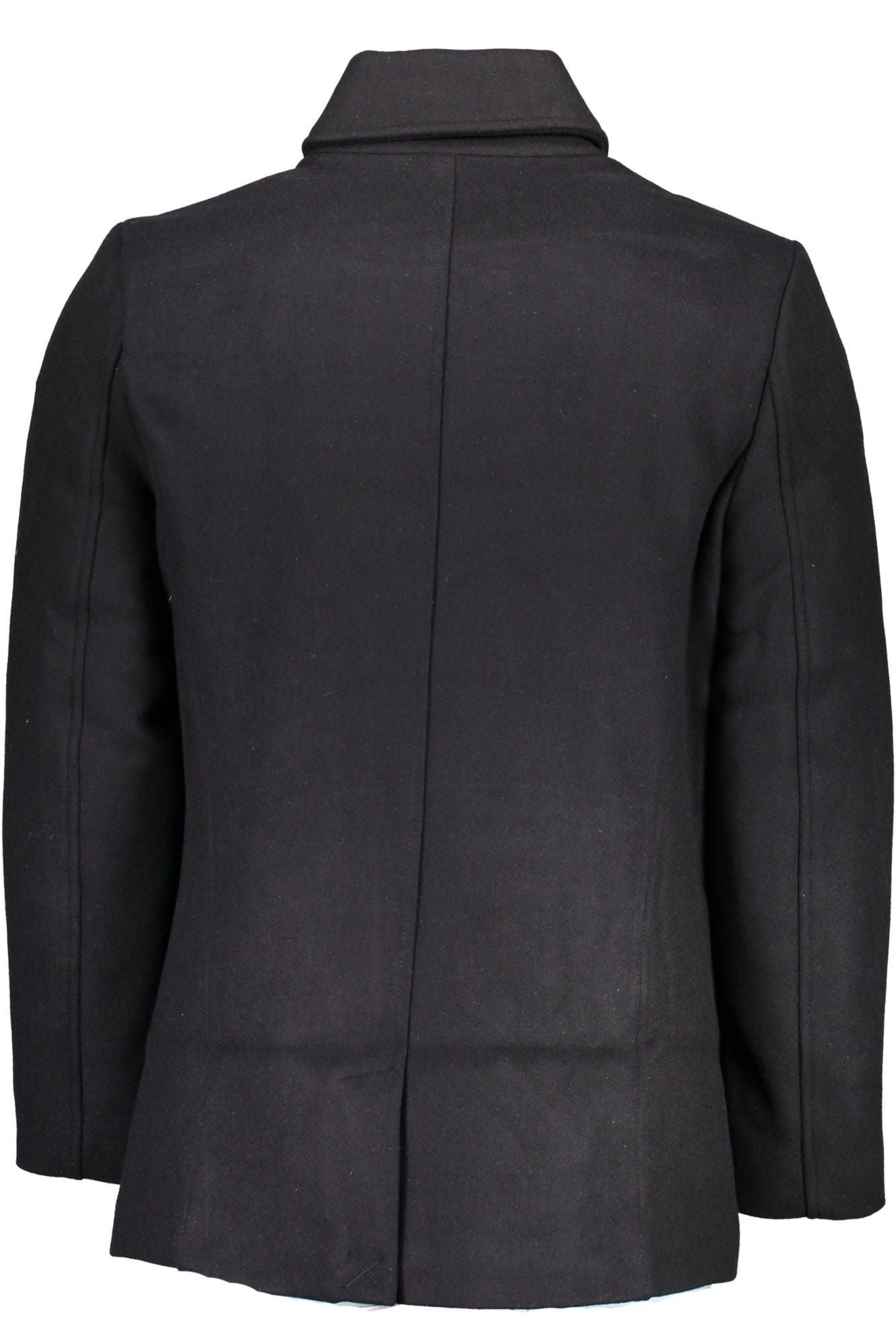 Refined and stylish, this long-sleeve black coat from Guess Jeans exudes elegance and practicality. Designed with a smart button and zip front closure, it’s ideal for those seeking both fashion and function. The coat boasts two external pockets for keeping personal items secure and is completed with a lined interior for added warmth. The signature Guess Jeans logo adds a subtle touch of branded sophistication.