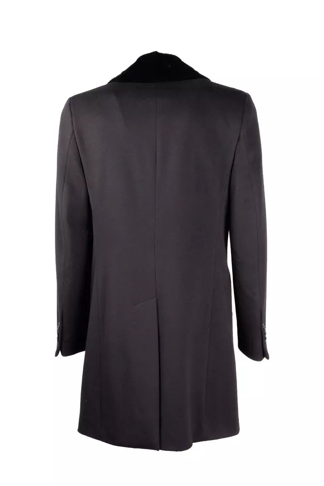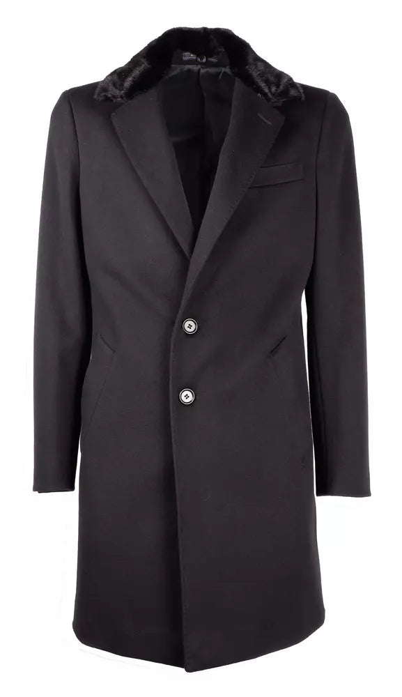 Discover timeless style and exceptional warmth with this sophisticated woven virgin wool coat. Designed by the renowned ‘Made in Italy’ fashion house, this piece features an elegant removable mink fur collar, a sleek two-button front design, and two convenient slant pockets. Its luxurious black hue and impeccable craftsmanship ensure it’s an ideal choice for the discerning gentleman.