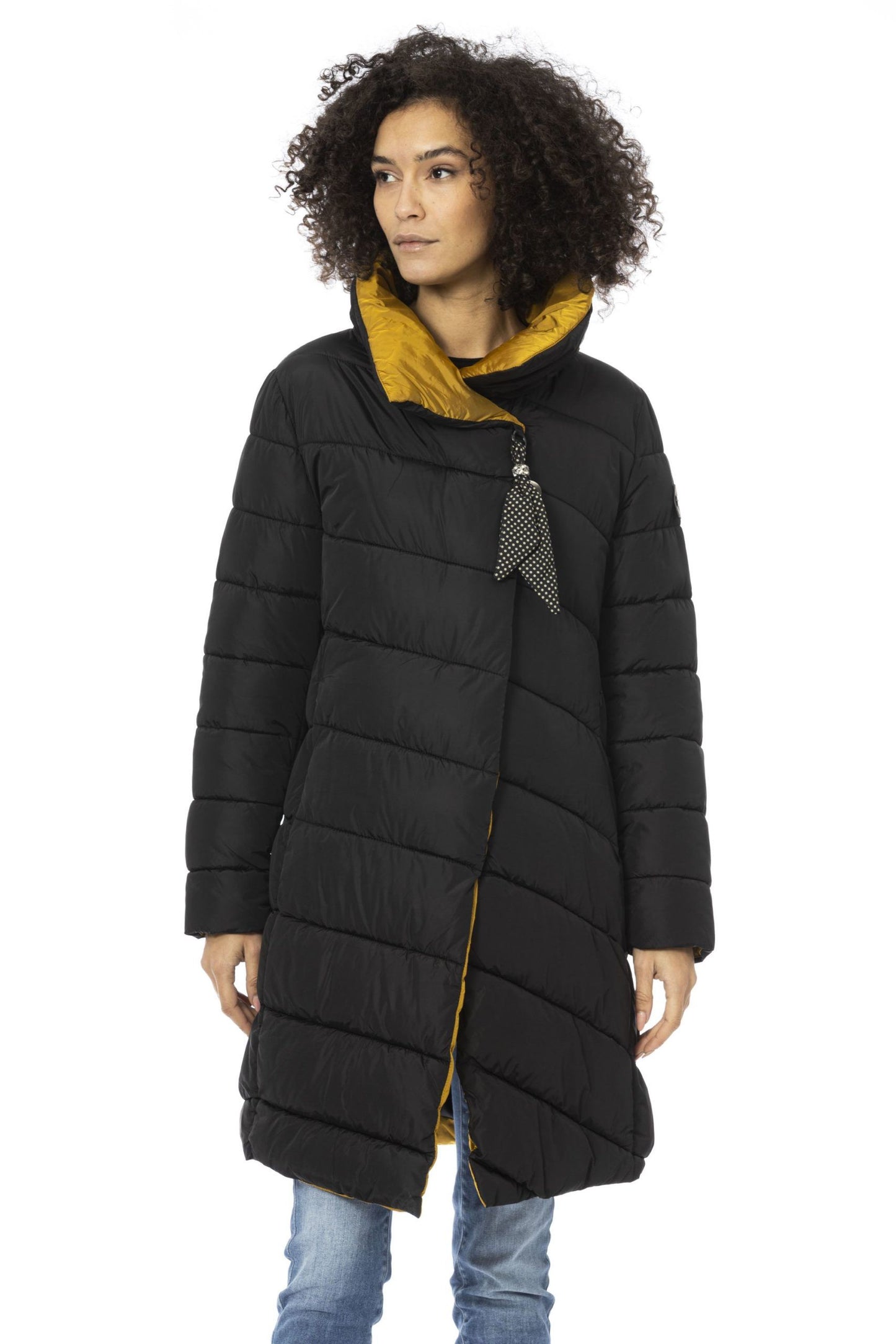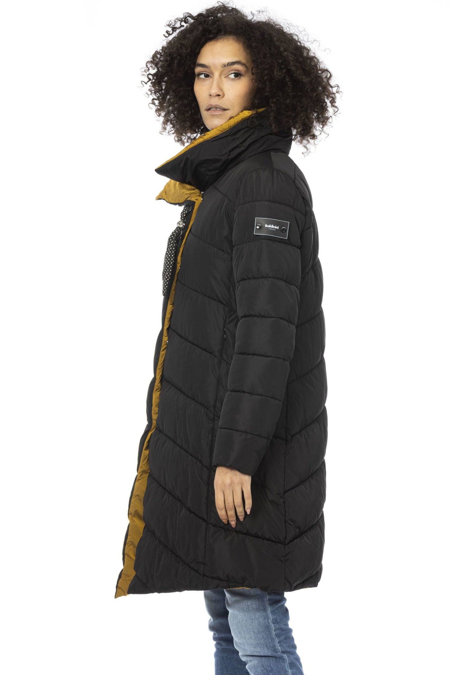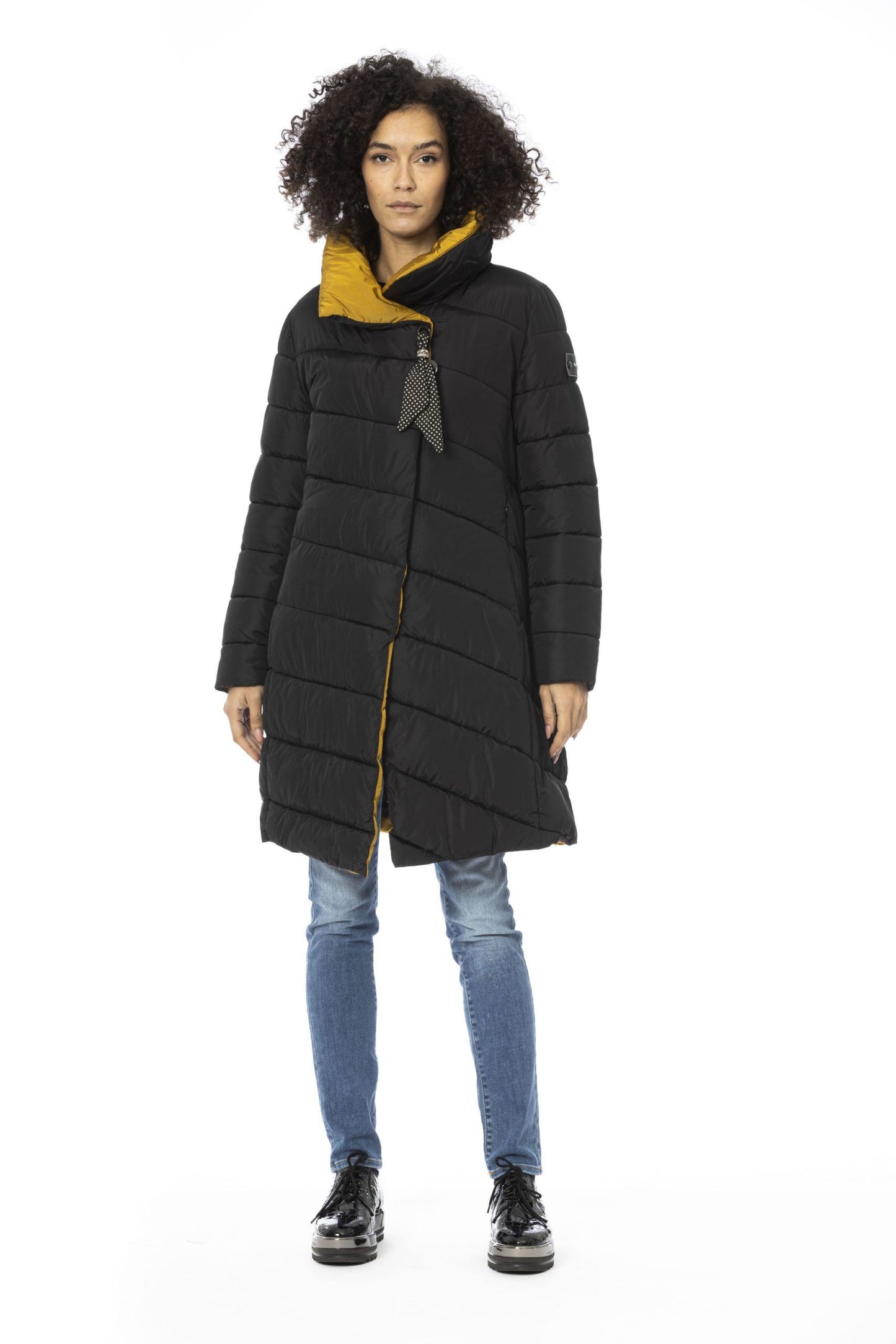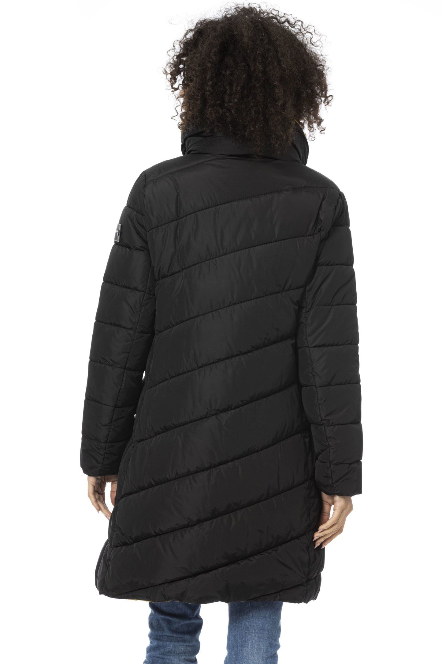 Discover the epitome of Italian elegance with this luxurious Baldinini Trend Long Down Jacket. Designed for discerning fashion enthusiasts, the jacket boasts a sleek black color and is expertly crafted from premium materials, ensuring warmth and style without the bulk of a hood. The jacket’s distinctive oblique button closure and the sophisticated Baldinini monogram in metal add a touch of exclusivity, while its external welt pockets combine functionality with fashion.