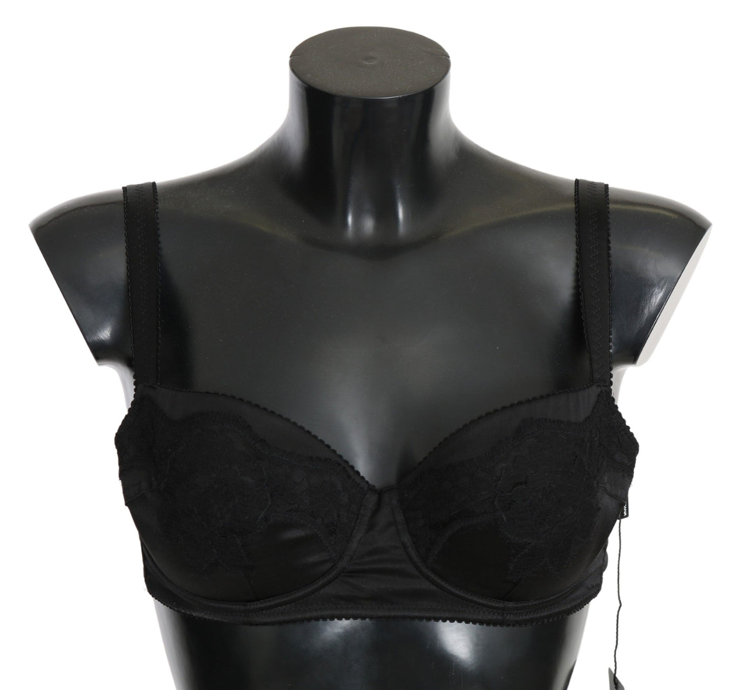 Indulge in the luxury and comfort of this exquisite Dolce & Gabbana undergarment. Designed with intricate black lace and a blend of high-quality silk, this bra guarantees to add a touch of sophistication to your lingerie collection. Perfect for those who appreciate the allure of fine Italian craftsmanship and the beauty of detailed logo accents.