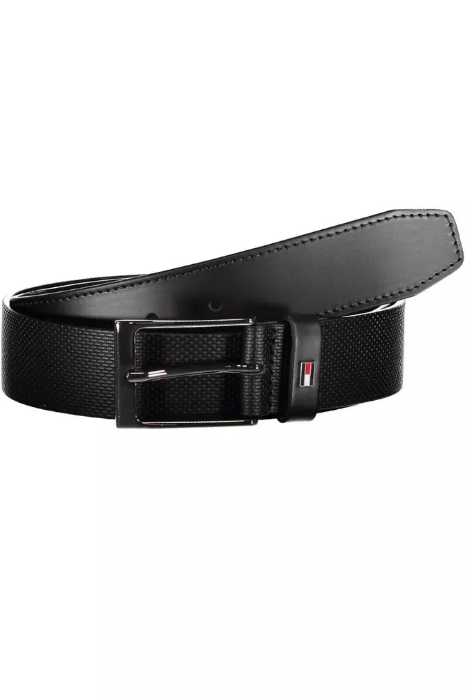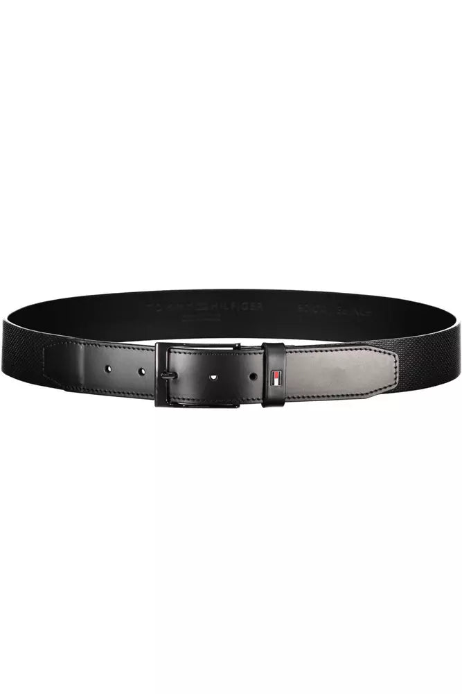Discover the perfect finishing touch for your attire with our elegant black leather belt, featuring a sleek metal buckle complemented by contrasting details for a dash of sophistication. This accessory boasts the iconic logo, adding a touch of designer appeal to your ensemble.