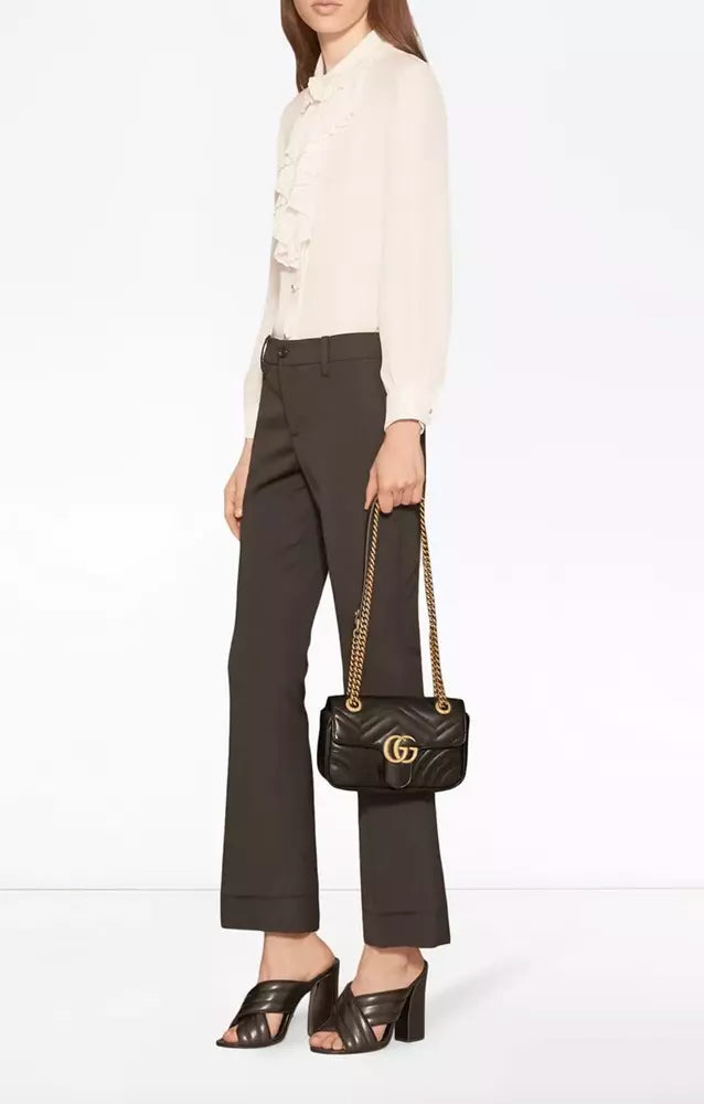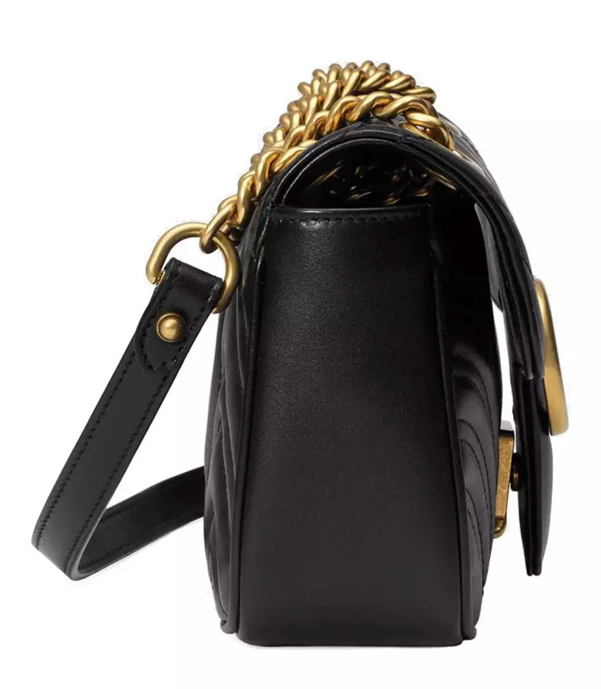 Discover elegance and versatility with our Chevron Quilted Leather Shoulder Bag. Its iconic structured chain design and sleek flap closure, adorned with a polished Double G, encapsulate sophistication. The unique sliding chain strap allows for multiple style options, transitioning effortlessly from a shoulder to a hand bag. A stunning chevron-quilted pattern graces the leather exterior, enhanced by a subtle heart detail on the back, revealing a touch of playfulness.