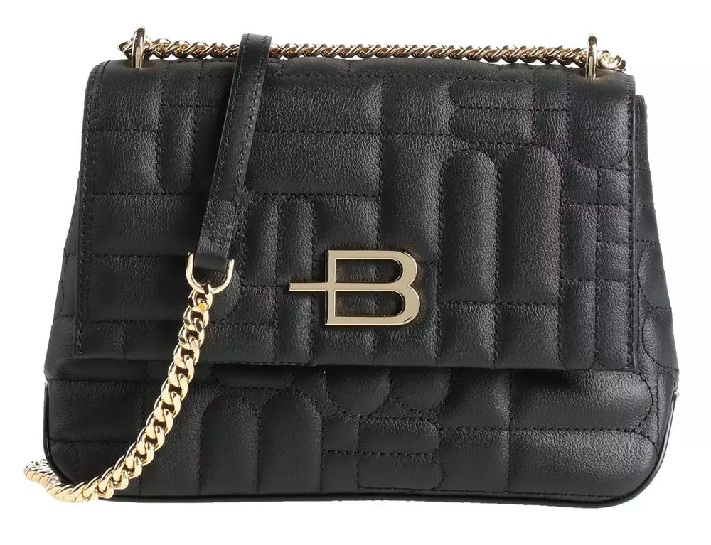 Refine your style with this exquisite black shoulder bag crafted from a premium blend of materials. Its sleek design is complemented by a front flap opening, revealing a harmonious blend of functionality and high fashion. The front is adorned with a tasteful hardware logo, adding a touch of elegance to the sophisticated silhouette of this accessory.