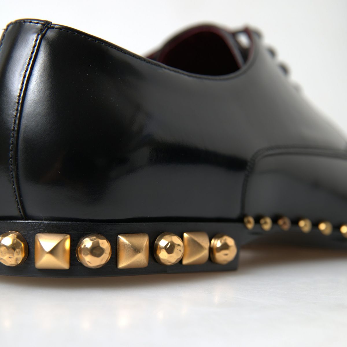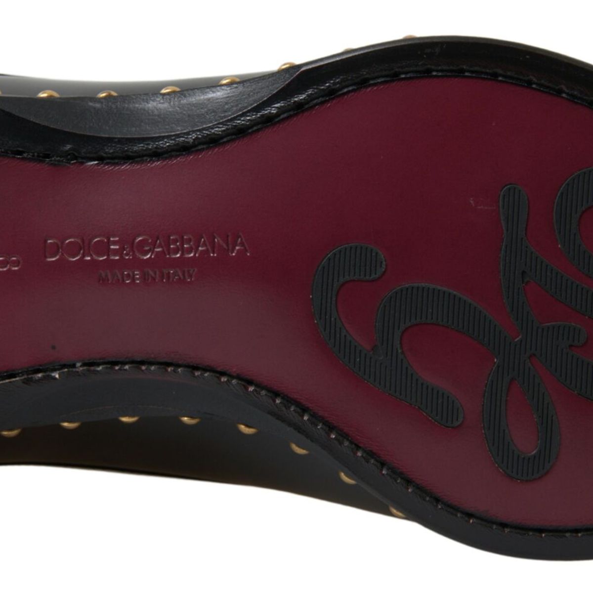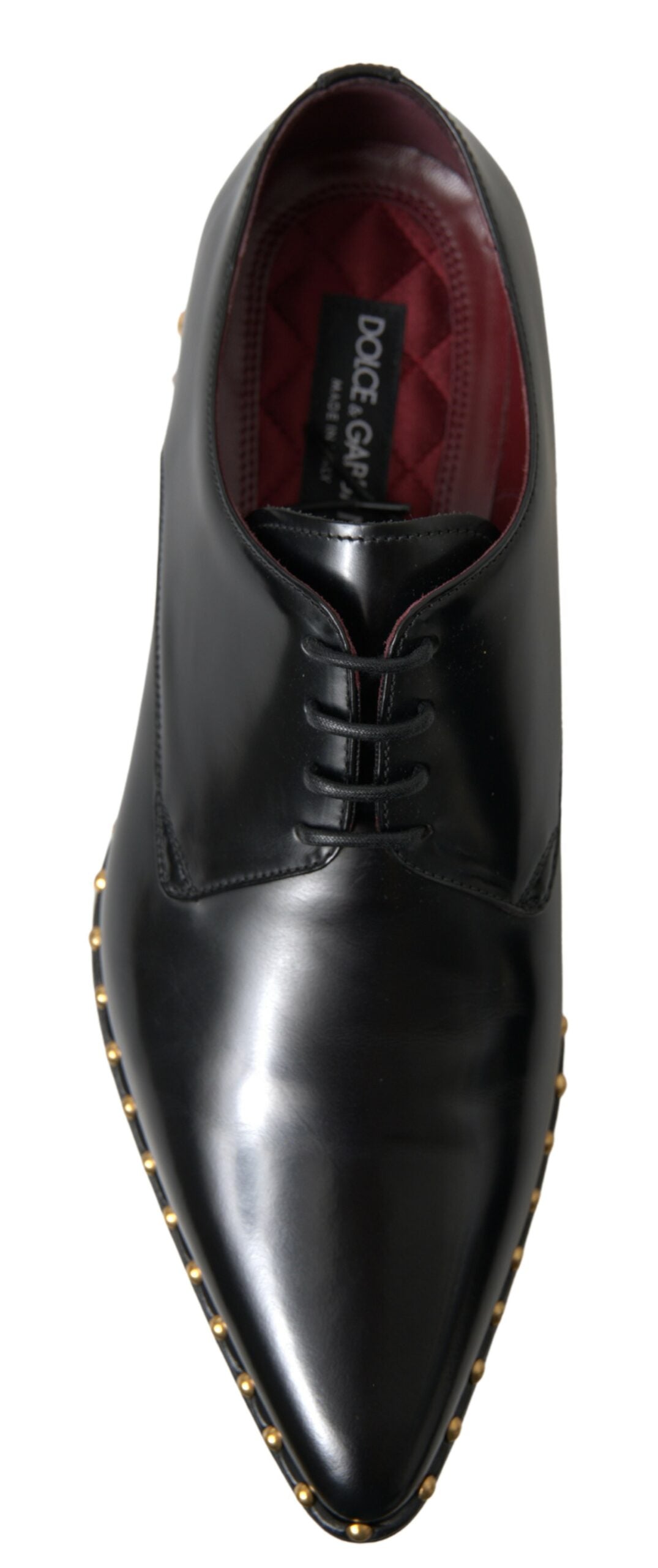 Step into luxury with these Dolce & Gabbana men’s dress shoes, featuring a classic pointed-toe design. Crafted from premium leather, the black and gold color scheme exudes sophistication, perfect for formal occasions. Designed and made in Italy, these shoes are a testimony to exceptional craftsmanship with a distinctive vintage flair enhanced by the logo details and a luxurious leather outer sole.