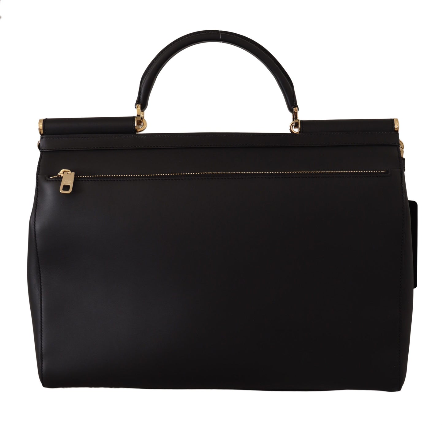 Elegant XL Sicily Black Leather Bag with Gold Accents
