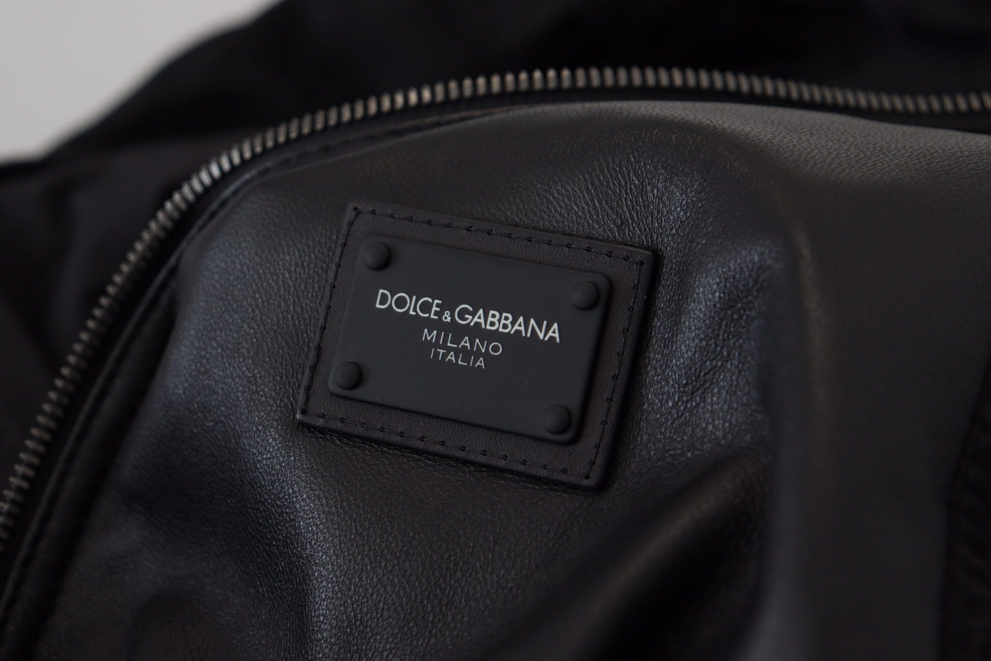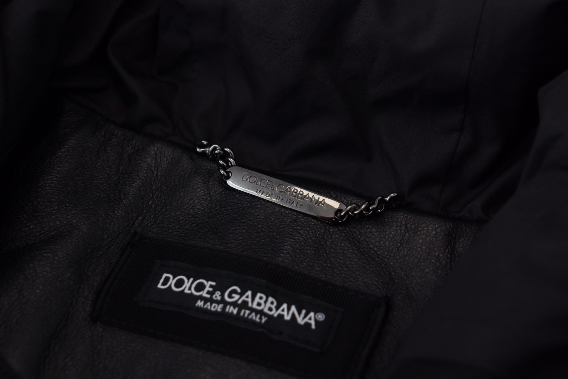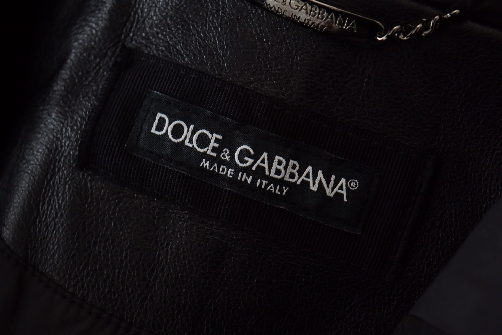 Step into luxury with this stunning, 100% Authentic Dolce & Gabbana leather hooded bomber jacket. This new addition with tags features a sleek black design and a full zip closure, complemented by a logo plaque adorning the chest for that touch of designer elegance. Designed for comfort and style, it includes an adjustable hood strap, ensuring the perfect fit for any occasion. Crafted in Italy, it’s a statement piece that combines durability with high-fashion sensibility.