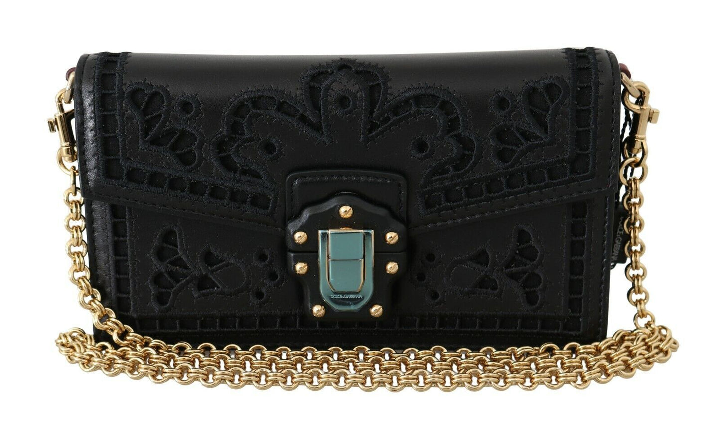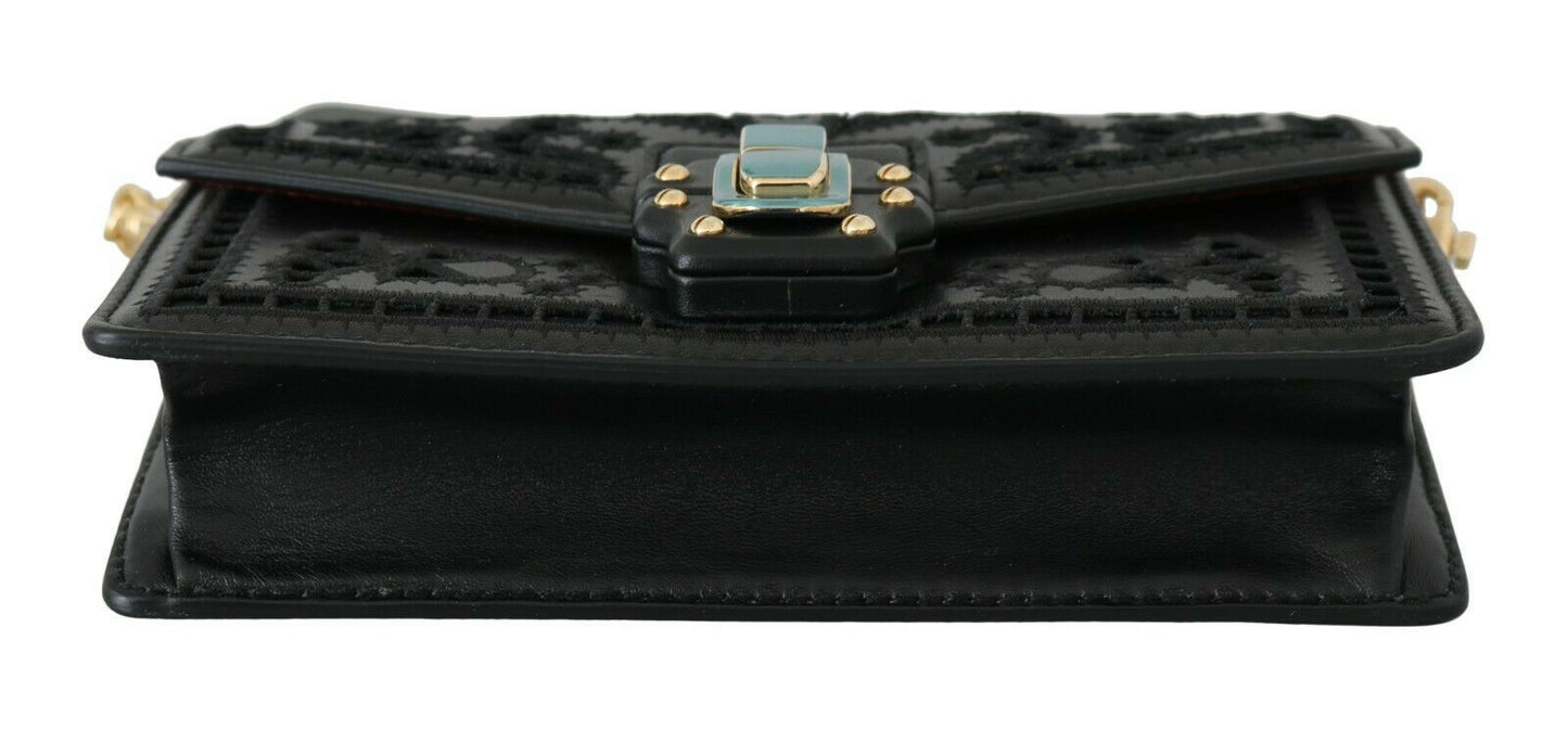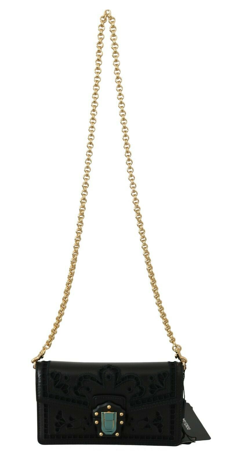 Infuse luxury into your accessory collection with the Dolce & Gabbana LUCIA shoulder messenger bag. This exquisite piece is brand new with tags, ensuring its pristine condition. It’s crafted from a sumptuous blend of materials, predominantly leather, with polished gold metal detailing adding a touch of opulence. The black color scheme is timeless and versatile, while the detachable gold chain shoulder strap offers varied styling options. Inside, a lush red leather lines the interior, and organizational needs are met with a slot, a pocket, and a zipper pocket for securing valuables. This Italian-made treasure is a testament to elegance and sophistication.