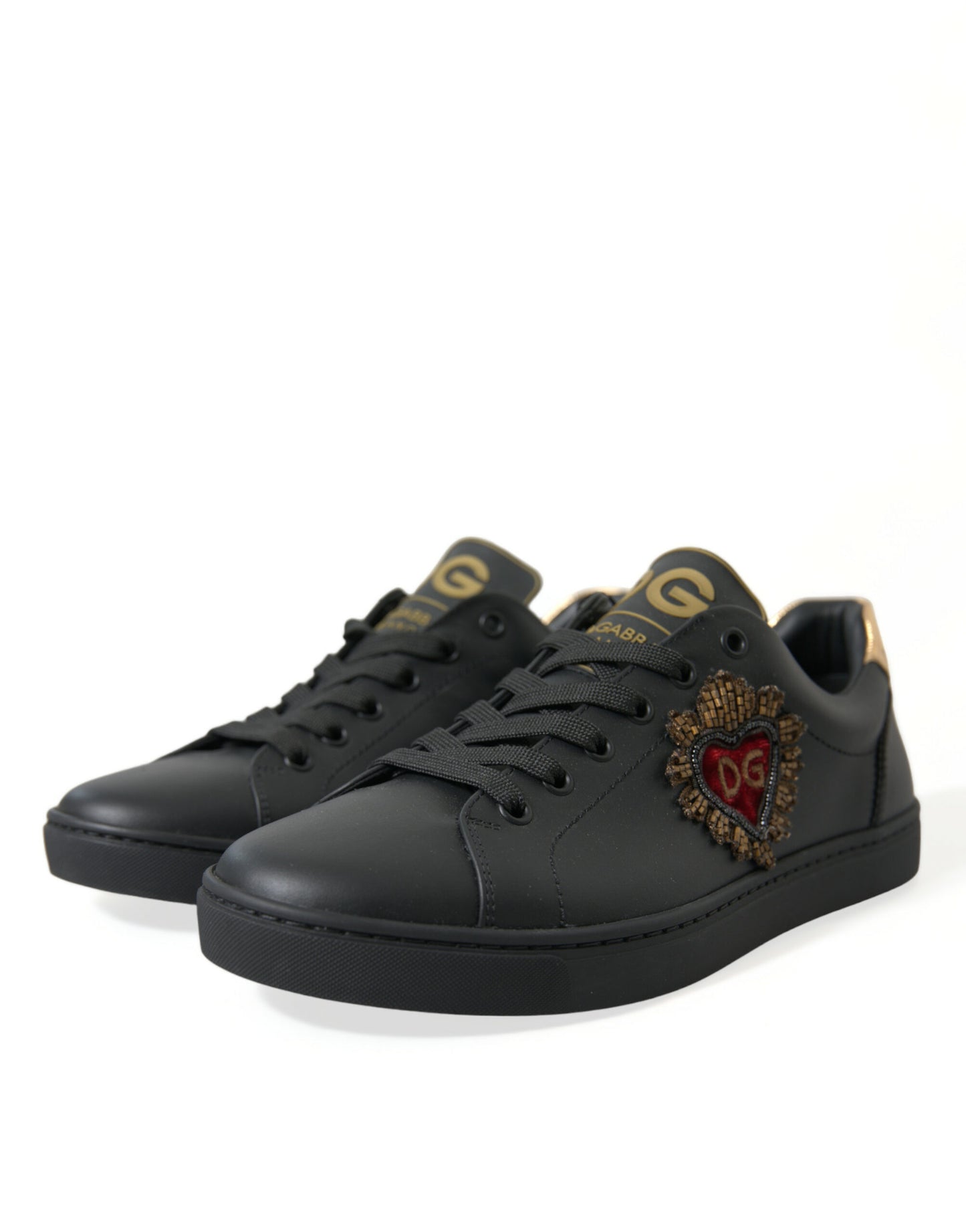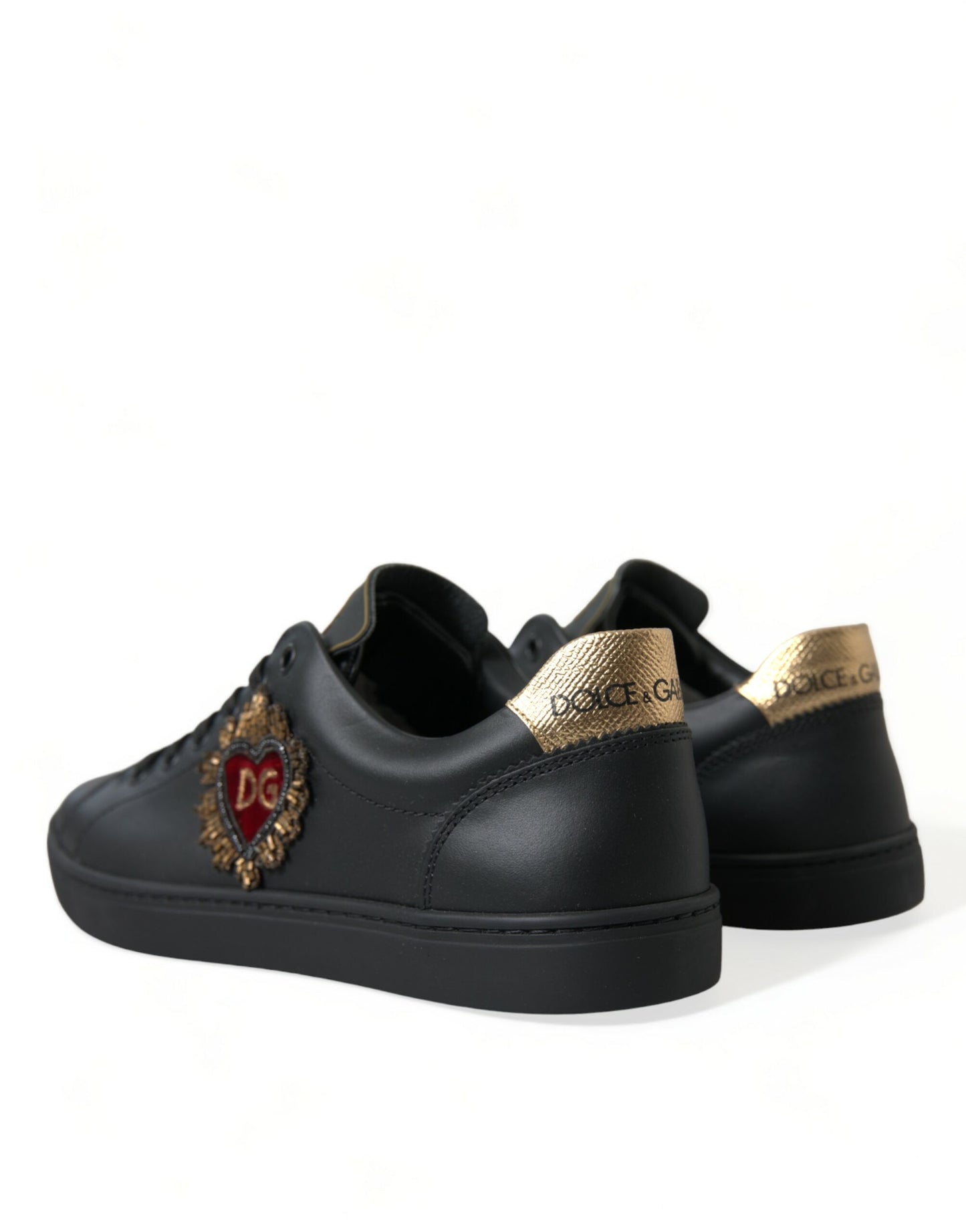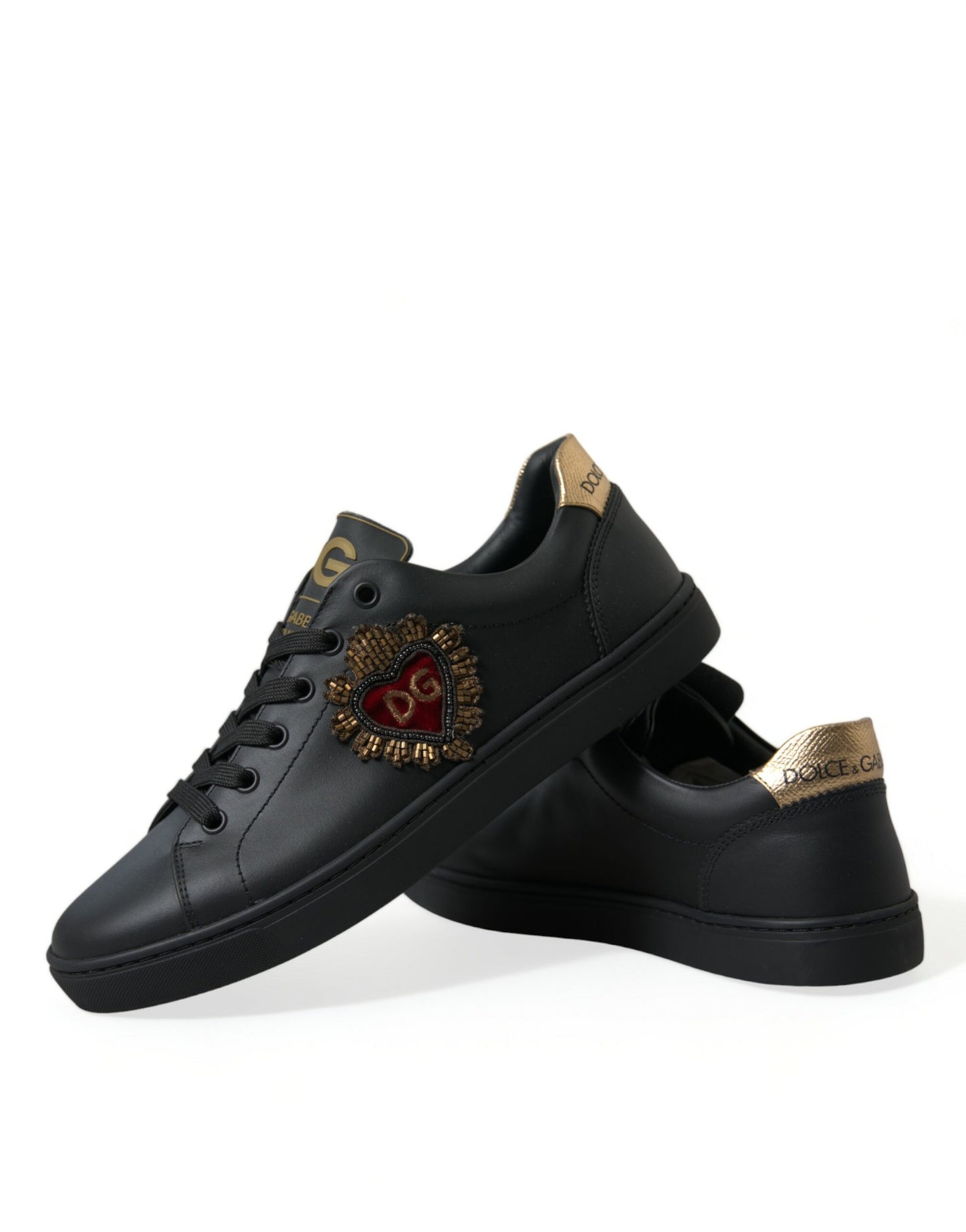 Black Leather Sacred Heart Sneakers Shoes