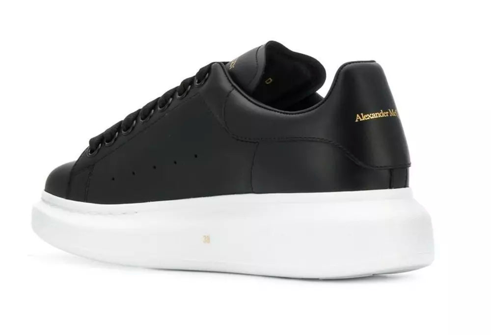 Step into luxury with these sleek black sneakers, crafted from smooth, shiny classic calf leather. Perfect for making a sophisticated statement, these lace-ups feature an oversized rounded rubber toe and meticulous perforated detail for added breathability. The plush kid leather lining ensures superior comfort, while the sturdy 7-hole metal eyelets accommodate flat, broad laces. In addition to the primary laces, the sneakers come with an extra set in white for a fresh look. The bold, oversized rubber sole not only provides unmistakable style but also superior support. This pair is finished with the signature logo discreetly placed on the tongue and back counter for an exclusive touch.