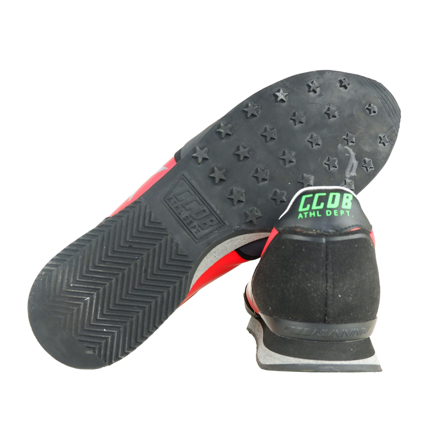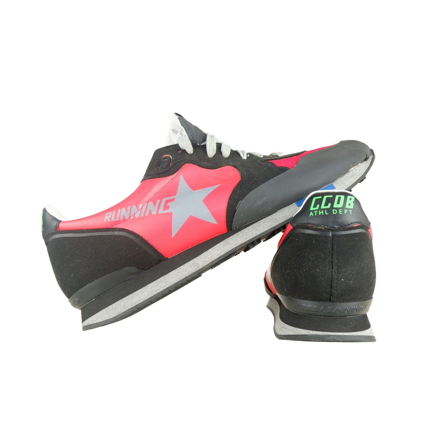 Step into unparalleled comfort and artisan craftsmanship with these black suede calfskin sneakers. Featuring striking red leather accents and a distinctive Running logo on the side, these shoes are the epitome of sports luxe. With a heel counter adorned with a green logo, they are as stylish as they are comfortable. Crafted from the finest leather and set on a durable rubber sole, these sneakers are made for those who appreciate quality and style.