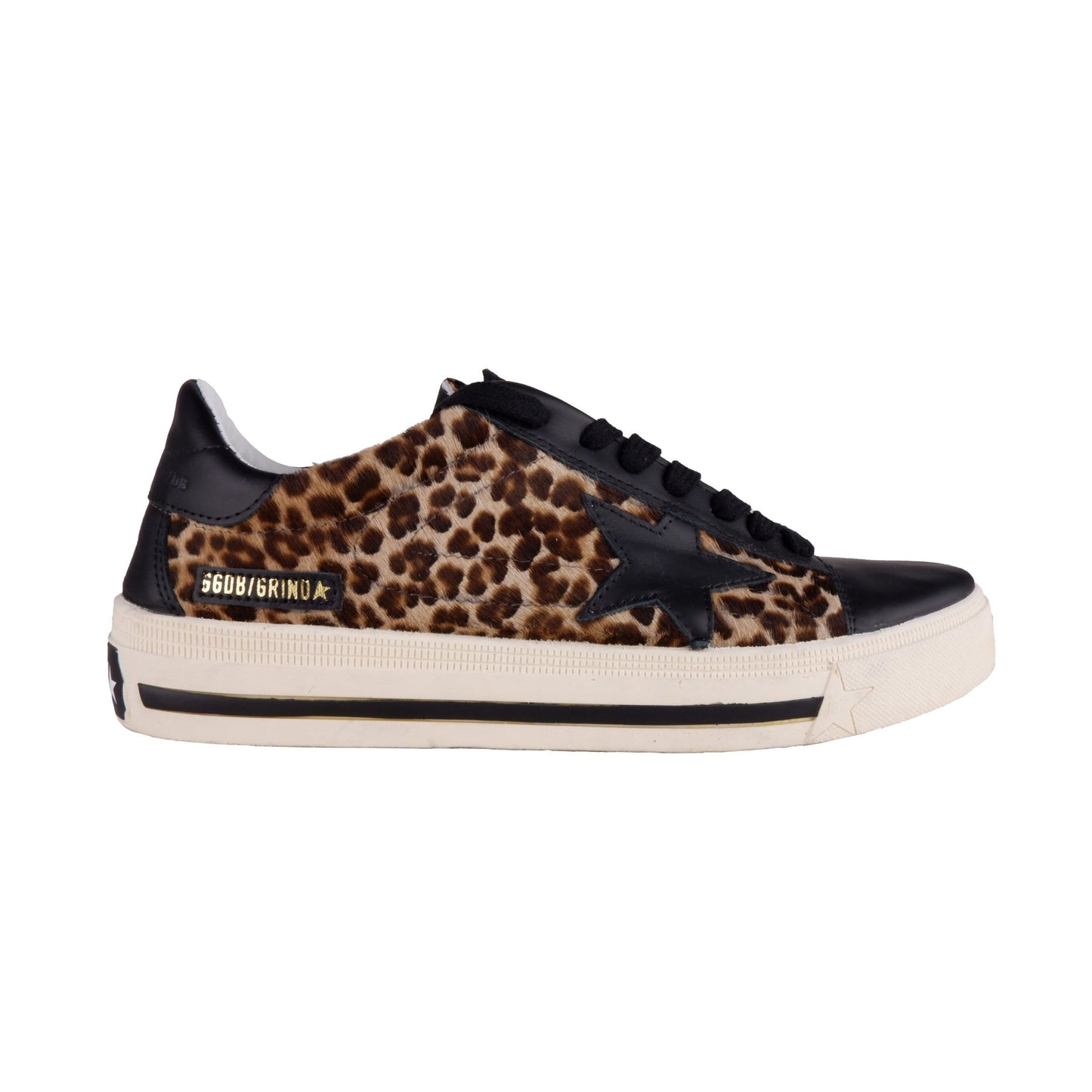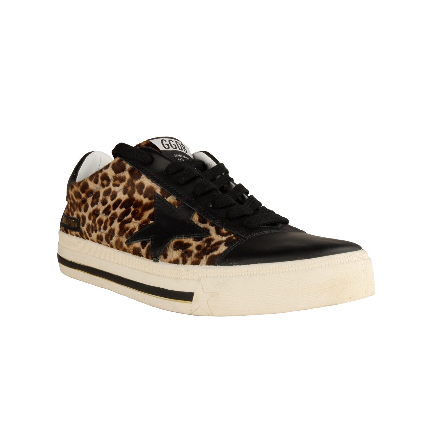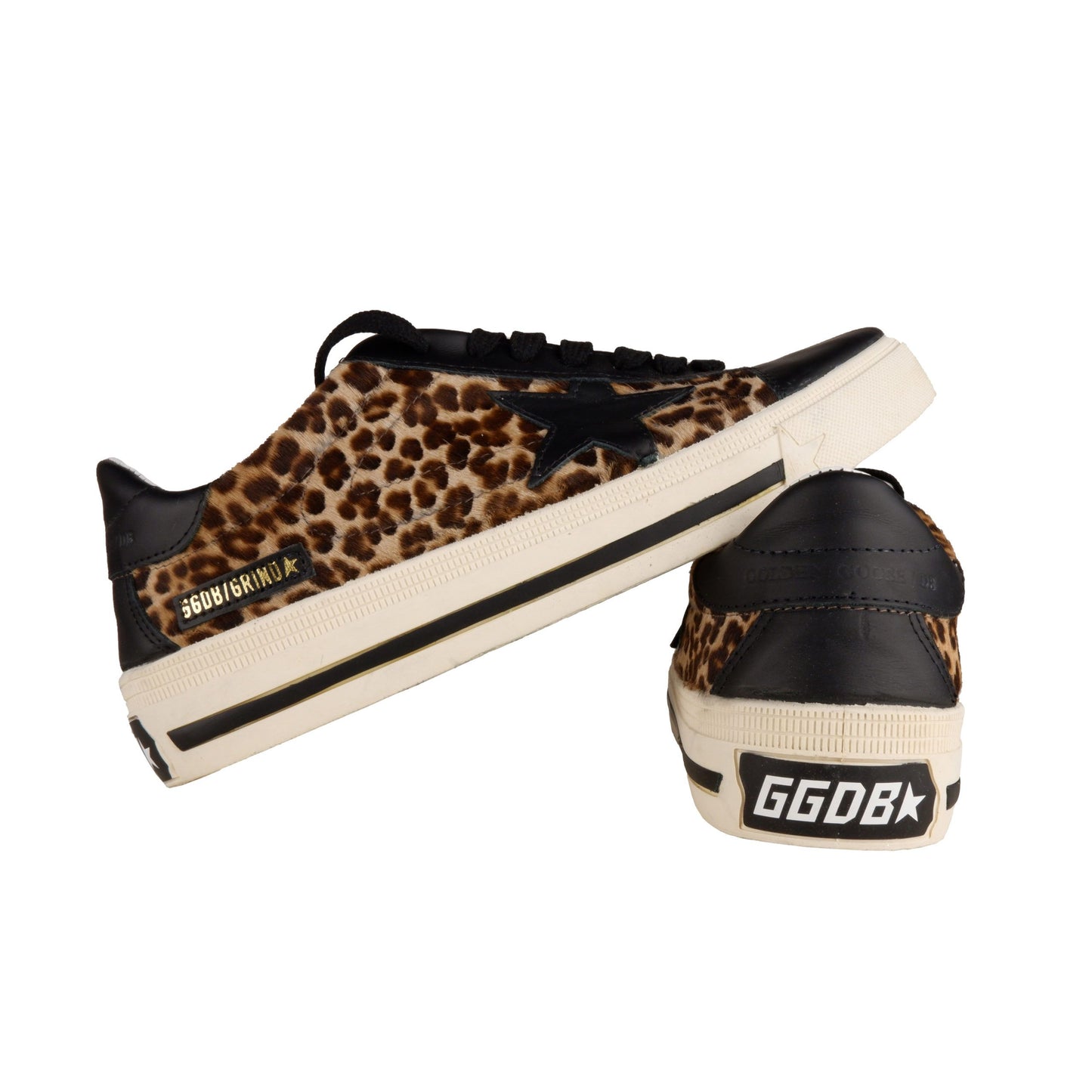 Step up your sneaker game with these standout black leather sneakers featuring bold leopard-print pony hair accents. These luxurious kicks have been expertly crafted with a 100% leather composition, including a sleek black leather star logo, ensuring superior quality and style. Elevate your casual looks with a touch of Italian sophistication, perfect for fashion-forward individuals who demand both comfort and elegance from their footwear.