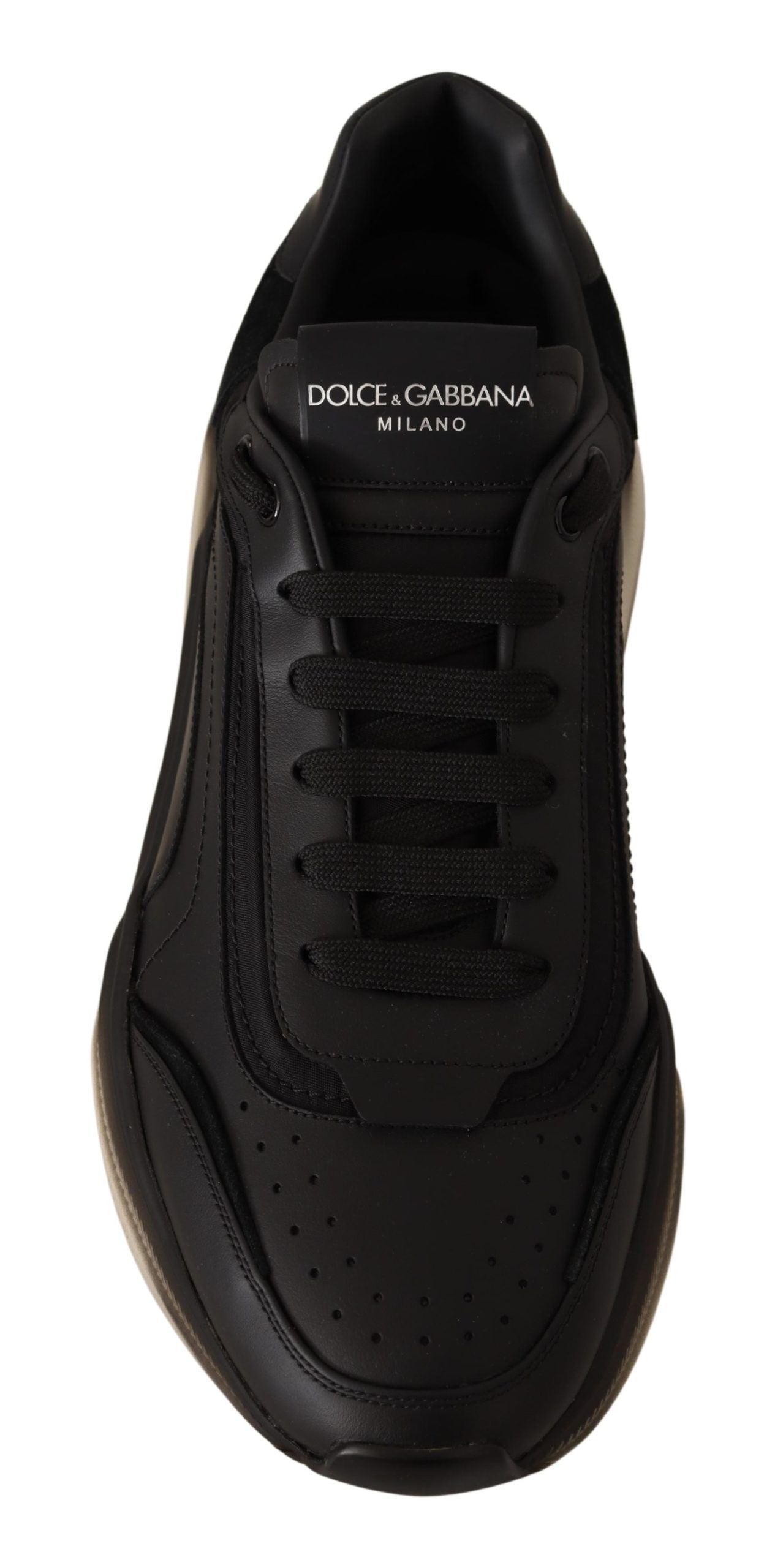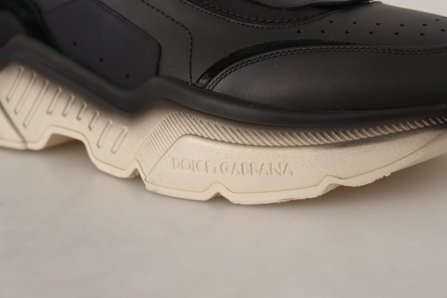Step into luxury with these sleek, gorgeous Dolce & Gabbana Daymaster Casual Sneakers. Newly released, sporting a sophisticated black color and white soles, this pair is a perfect blend of comfort and high-end style. Crafted with exceptional quality and the finest materials, they showcase the exquisite craftsmanship Italy is known for. Add a touch of elegance to your footwear collection and enjoy the distinction of logo details that radiate exclusivity.