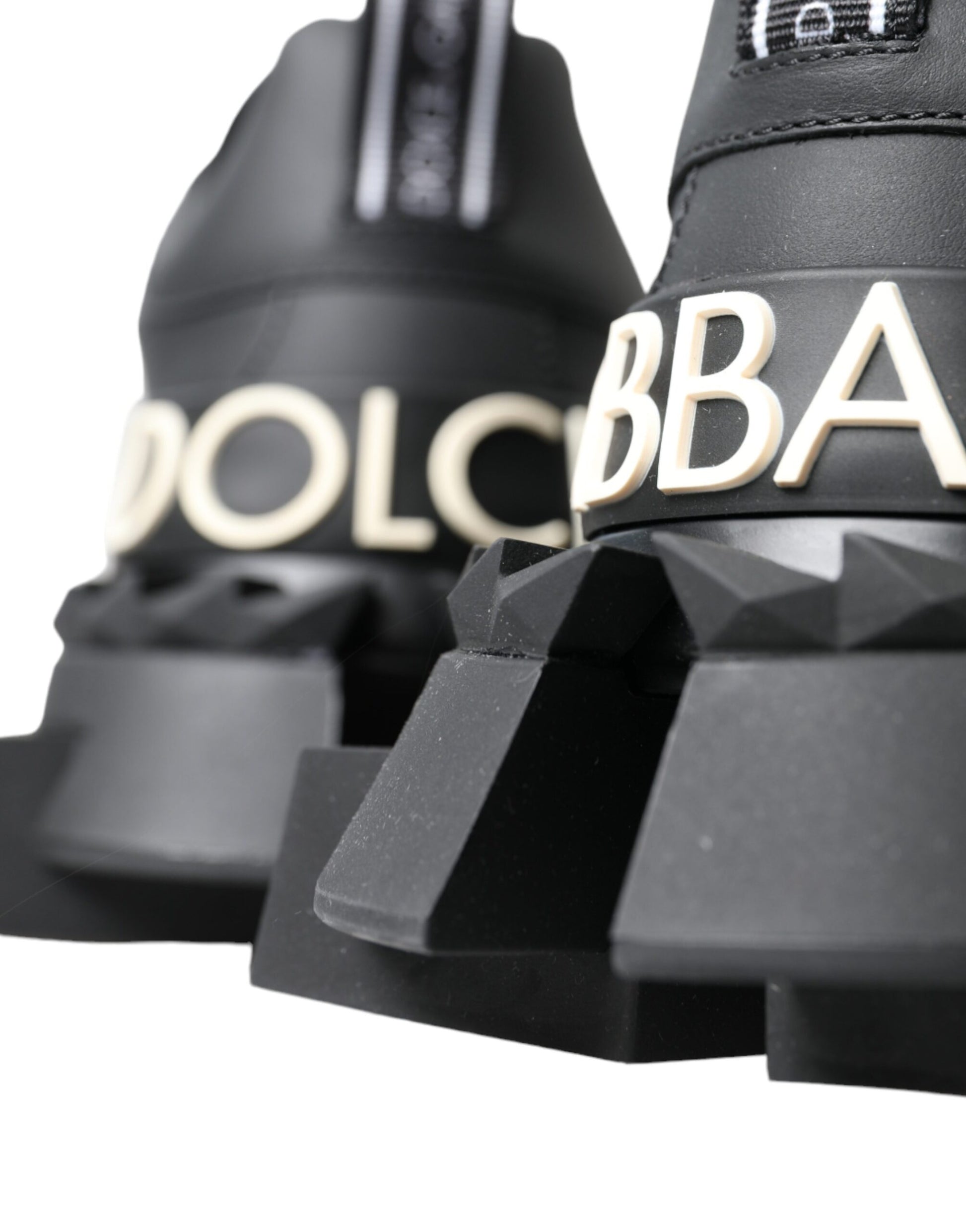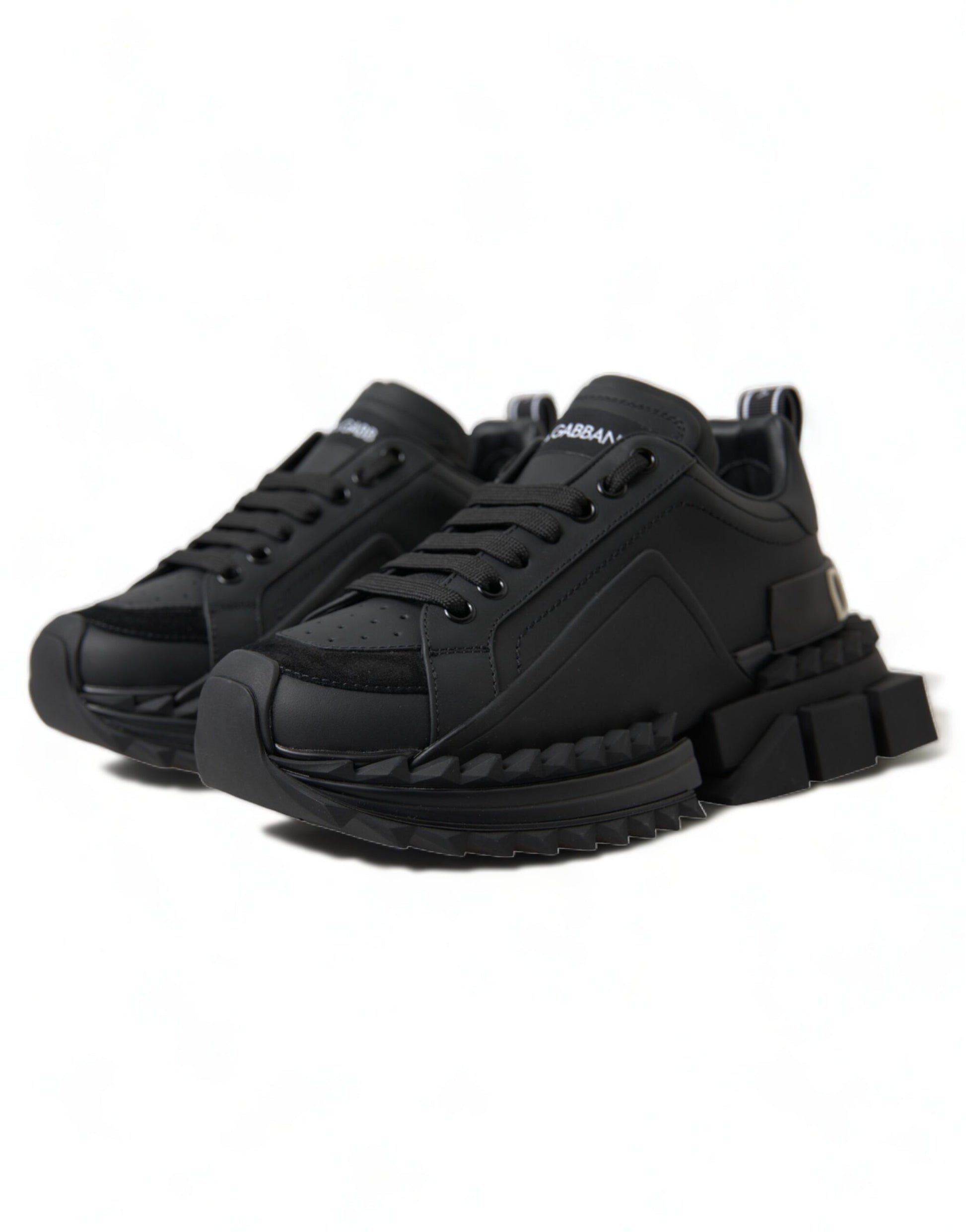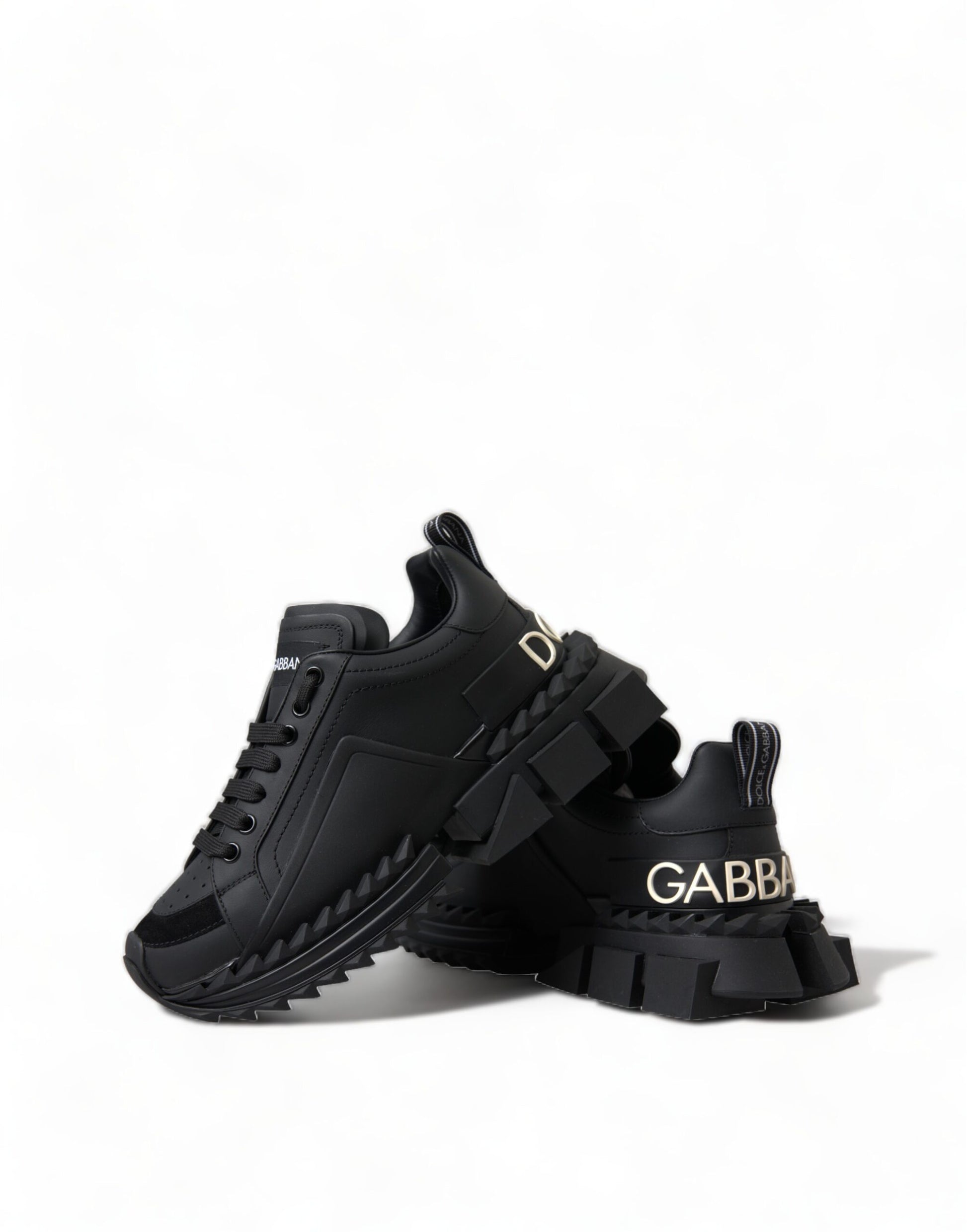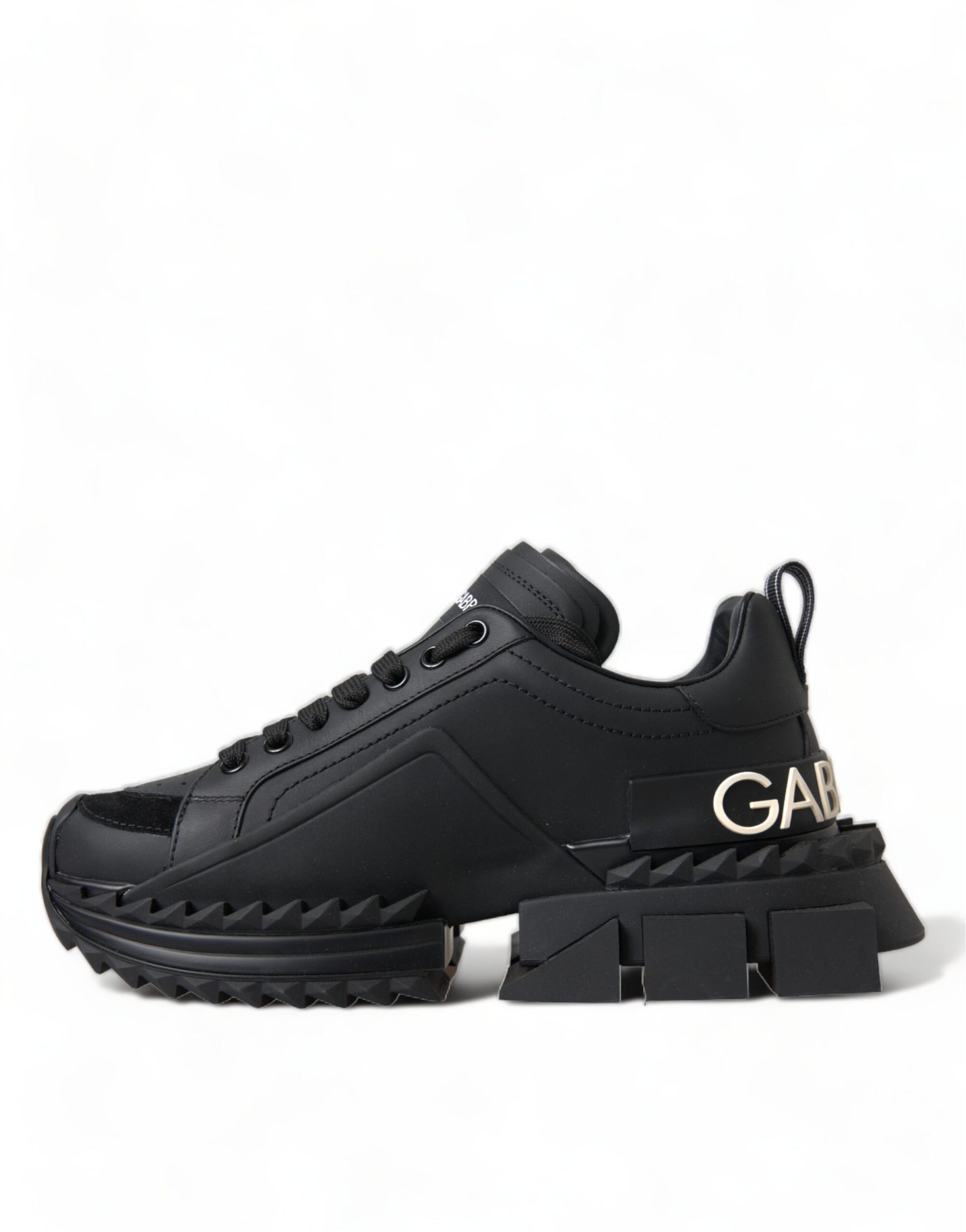 Step into luxury with these Gorgeous, brand new, 100% Authentic low top sneakers from Dolce & Gabbana. Defined by excellence and high craftsmanship, these ‘Super Queen’ sneakers blend fashion with comfort, featuring a sleek black colorway and a meticulously designed rubber sole for everyday wear with a touch of sophistication.
