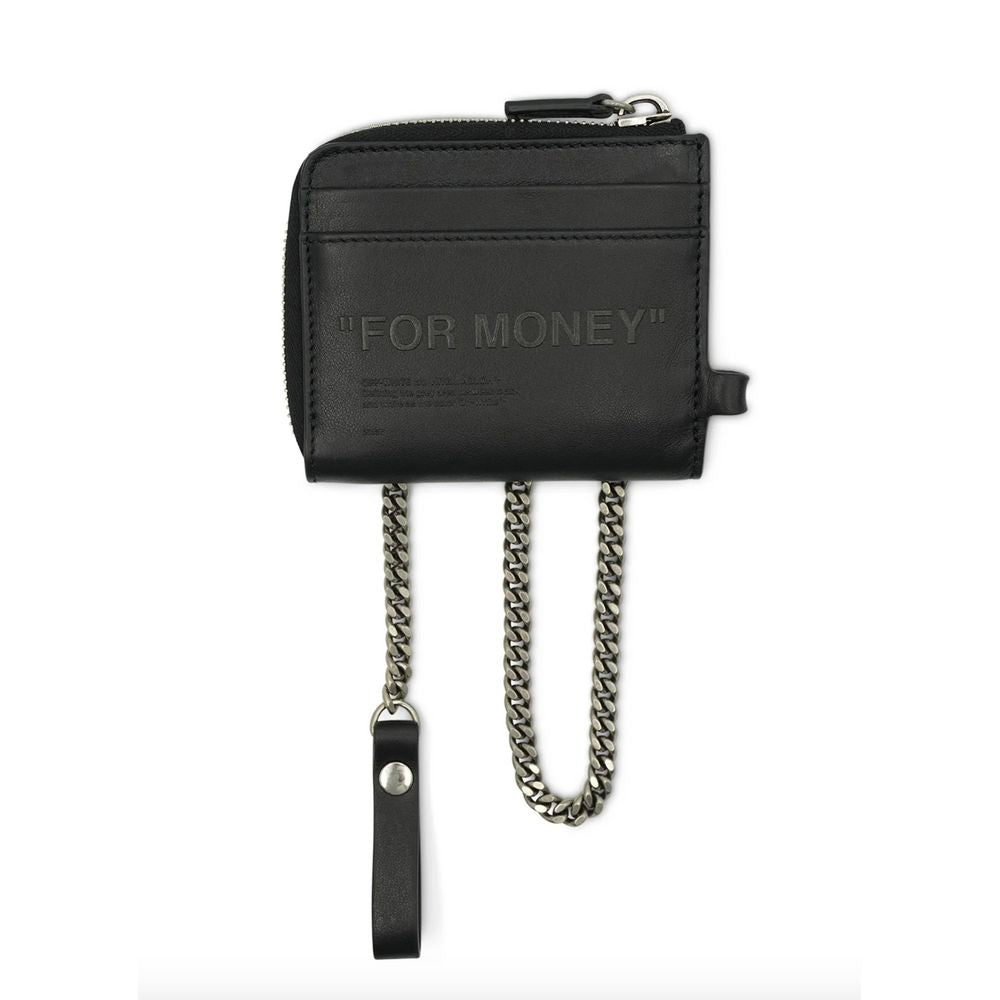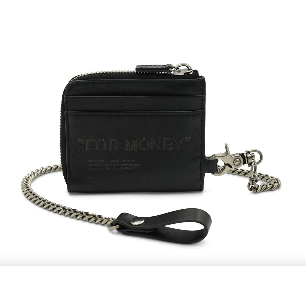 Indulge in the essence of sophistication with this sleek black leather chin wallet, featuring a unique embossed ‘for money’ quote, adding a touch of exclusivity to your financial essentials. Perfectly crafted in Italy, this wallet boasts functionality with its secure top zip fastening and practical card slots, making it an ideal choice for the discerning gentleman.