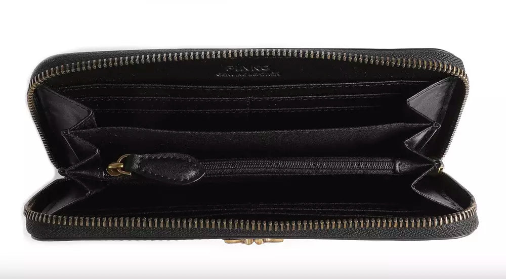 Unveil the epitome of sophistication with this chic black leather wallet, perfect for the fashion-forward individual. It features an exquisite brand logo on the front, paired with a secure zipper closure, ensuring your essentials stay safe and stylishly tucked away. Compact yet spacious, this wallet measures 20x10x2 cm, offering ample room for your cards, cash, and receipts.