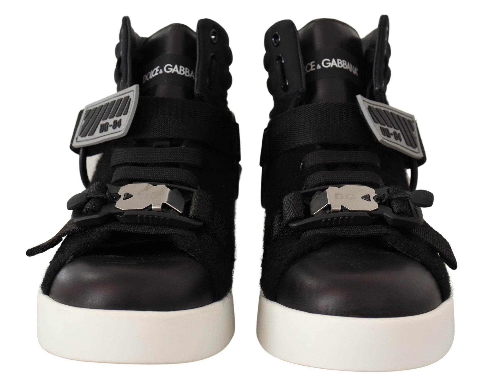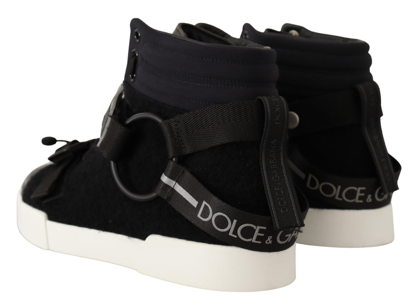 Step into luxury and style with these exquisite High Top Wool Leather Sneakers, a masterpiece of craftsmanship by Dolce & Gabbana. Boasting an impressive combination of premium materials, these sneakers offer unmatched comfort and durability, making them perfect for those who appreciate the finer things in life. The sleek black color ensures versatility while adding a touch of sophistication to any outfit.