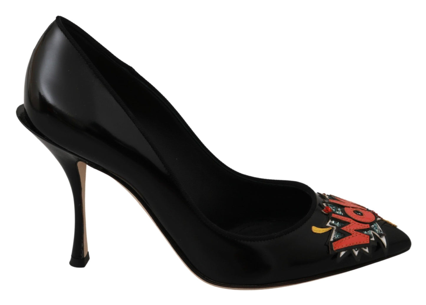 Step into luxury with these stunning Dolce & Gabbana classic heels pumps. Impeccably crafted from a blend of the finest materials, these black pumps feature an exquisite WOW embroidery that adds a touch of glamour to any ensemble. Perfect for high-end events or a sophisticated night out, these shoes proudly showcase Italian craftsmanship, complete with a leather sole and discreet logo details. Don’t miss out on the chance to elevate your shoe collection with this iconic pair.