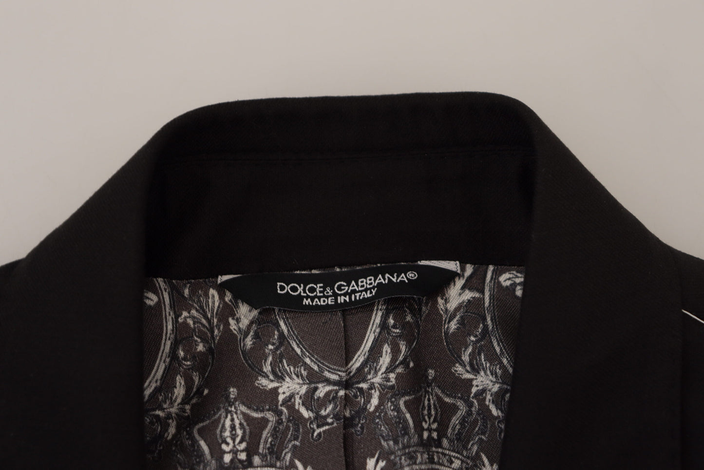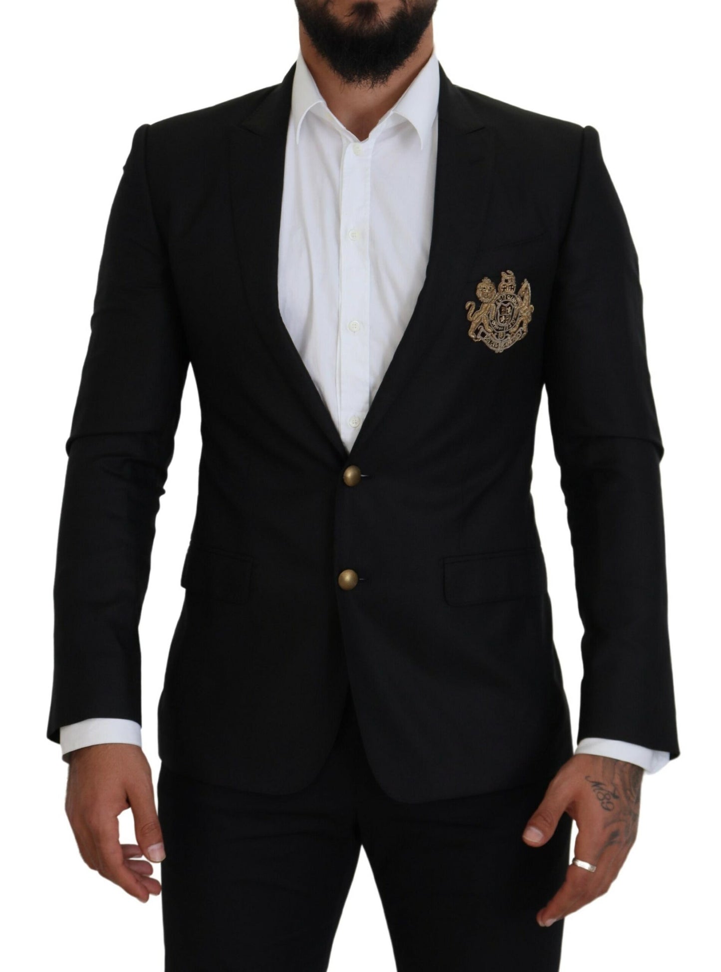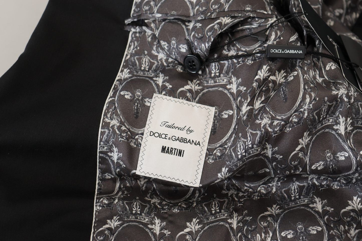 Discover sophistication with this 100% Authentic Dolce & Gabbana Martini Blazer, crafted from a luxurious blend of silk and polyester. Perfect for formal events, this single-breasted jacket features a sleek black color, neatly lined with viscose for your comfort. The two-button front closure and front pockets add a classic touch to this Italian-made masterpiece, complete with the iconic logo details.