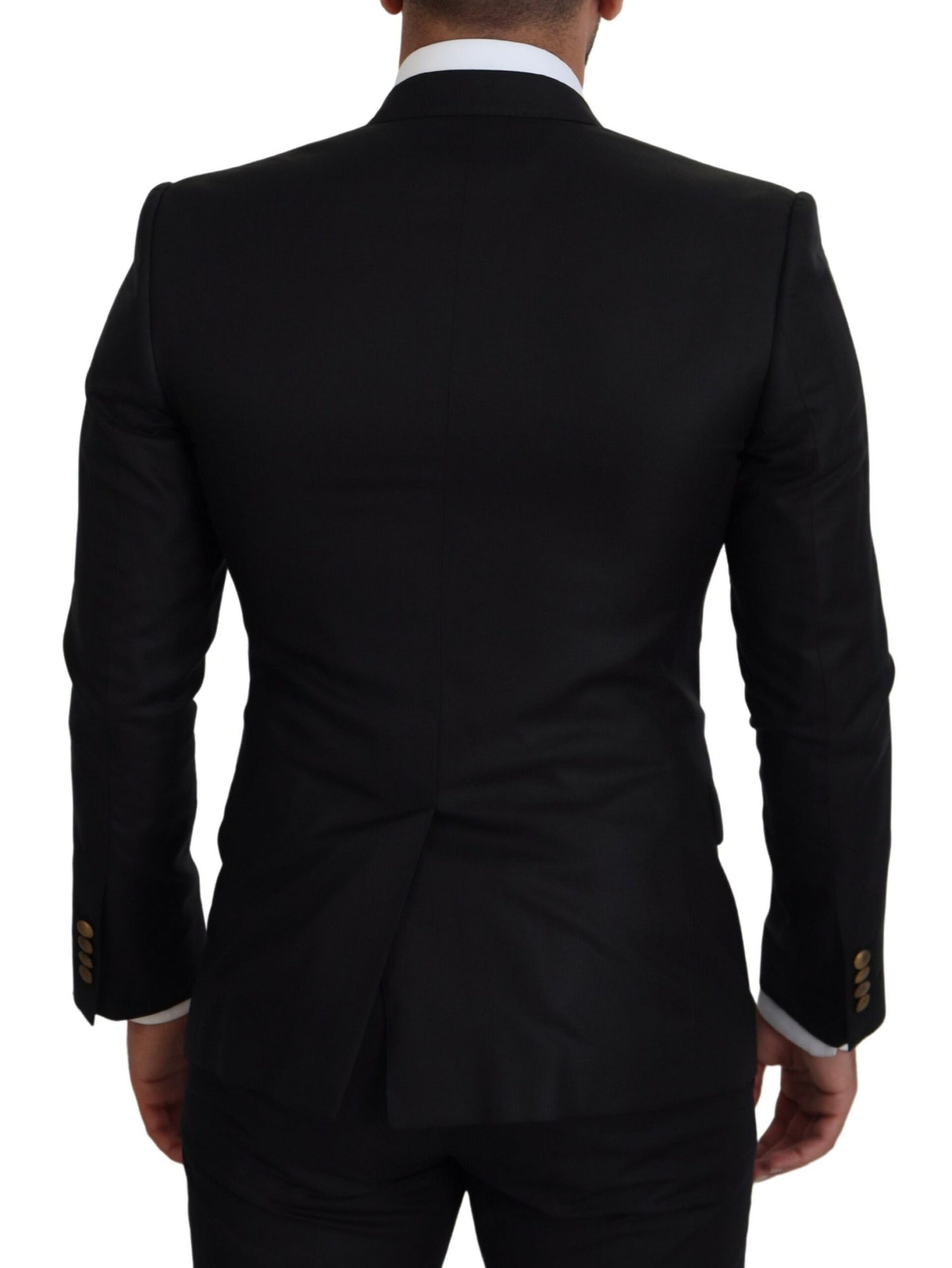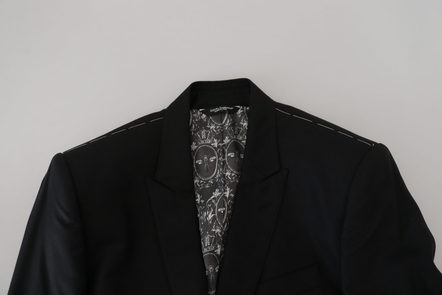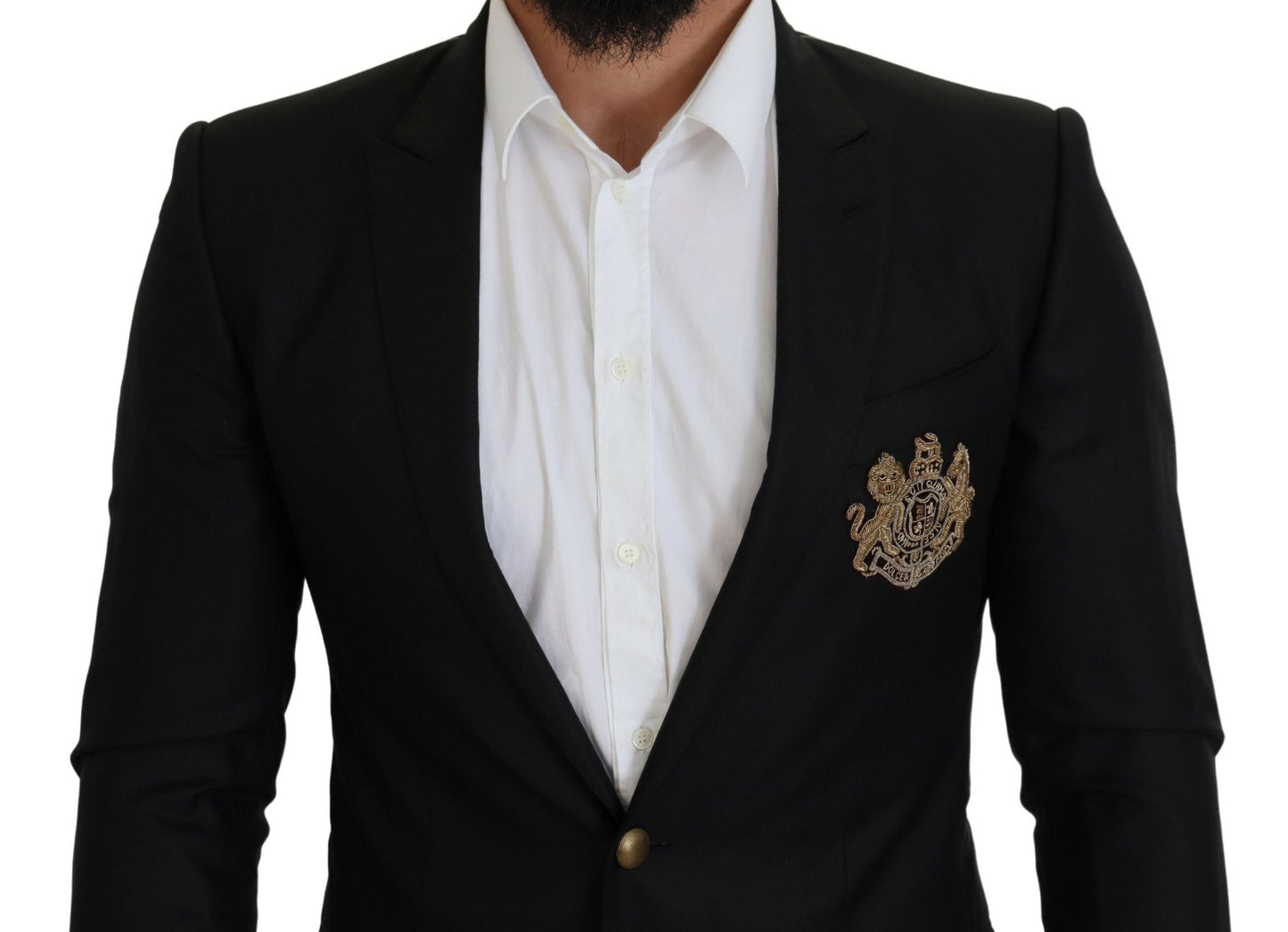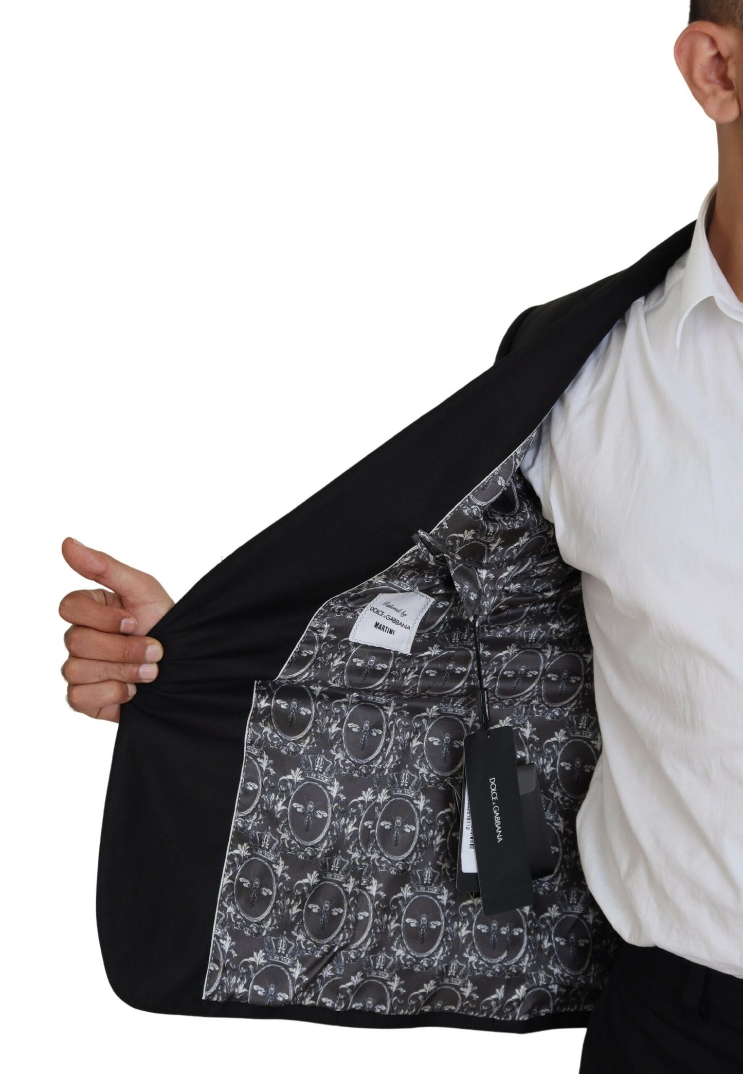 Discover sophistication with this 100% Authentic Dolce & Gabbana Martini Blazer, crafted from a luxurious blend of silk and polyester. Perfect for formal events, this single-breasted jacket features a sleek black color, neatly lined with viscose for your comfort. The two-button front closure and front pockets add a classic touch to this Italian-made masterpiece, complete with the iconic logo details.