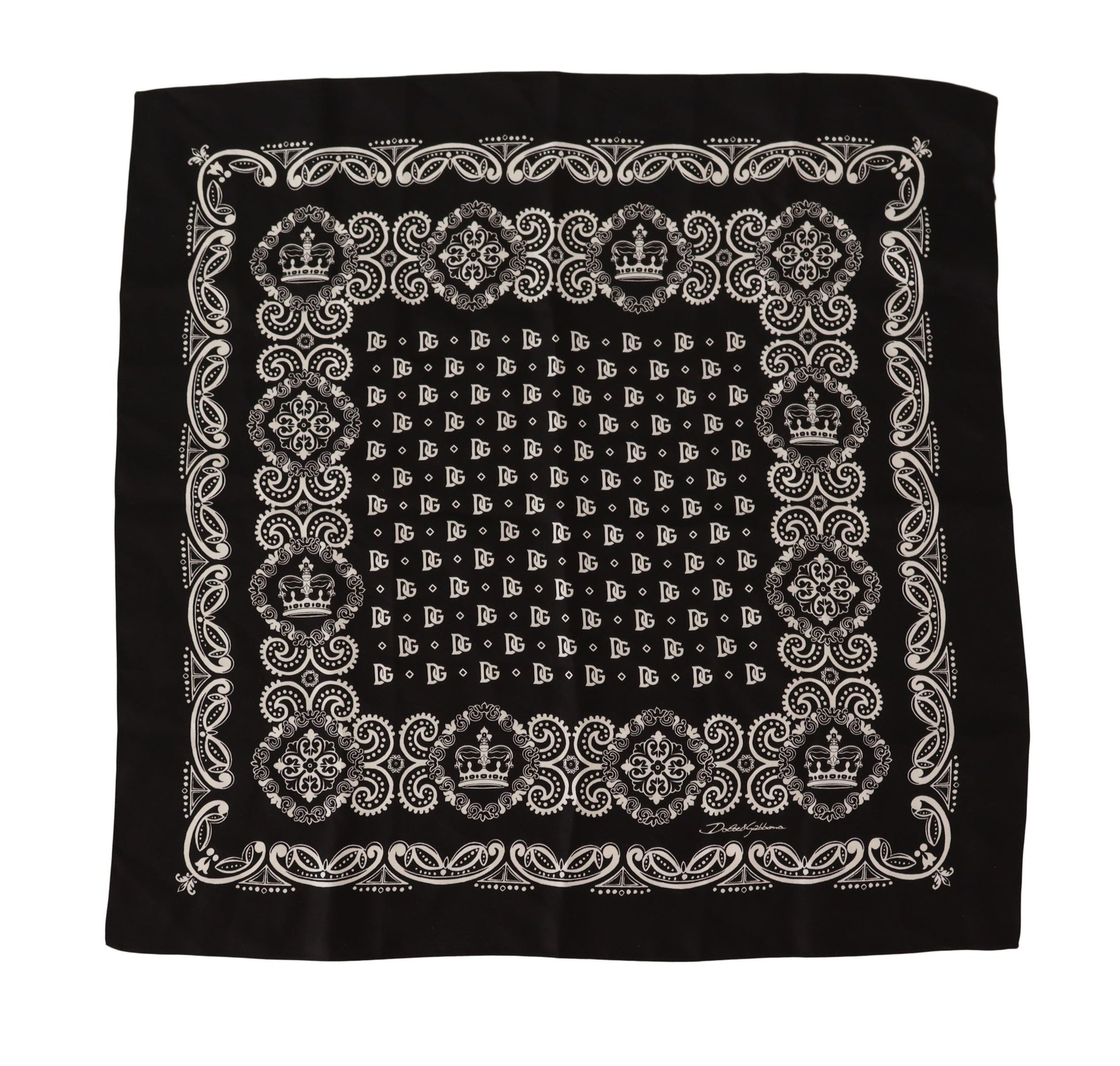 Elevate your suiting with a touch of elegance courtesy of this pure 100% Silk pocket square scarf by Dolce & Gabbana. Adorned with the label’s signature logo details, this luxurious accessory is a timeless staple for the discerning gentleman. Crafted in Italy, the classic black hue ensures versatile styling with your finest tailoring.