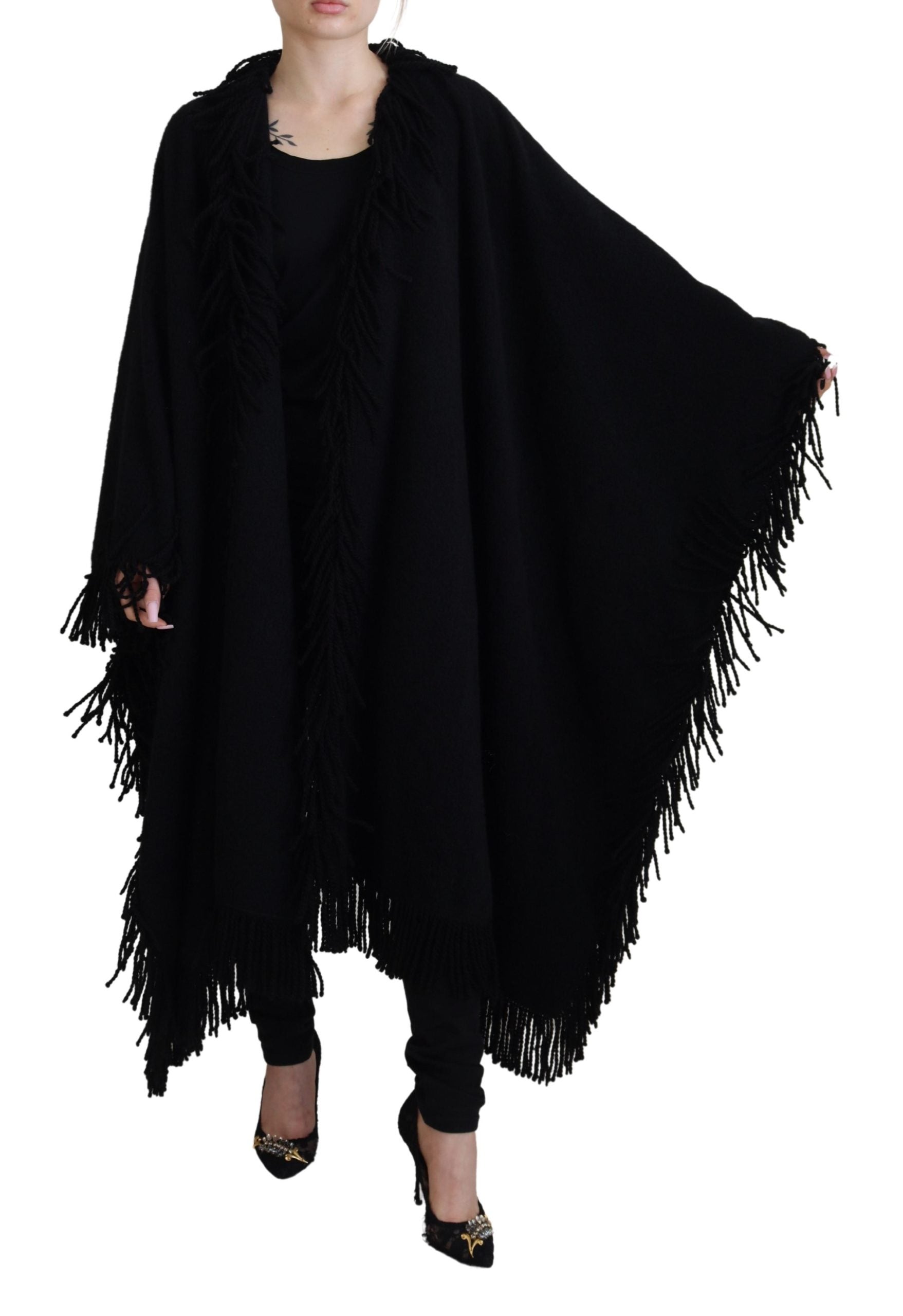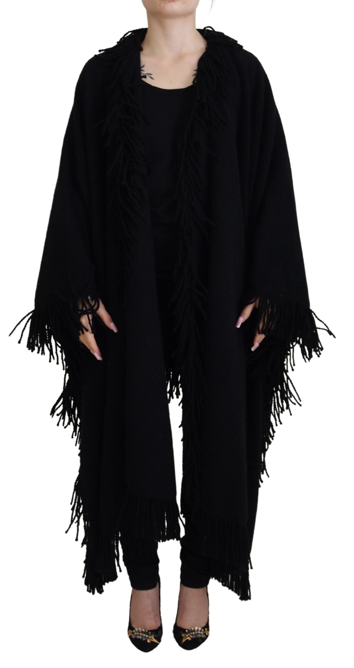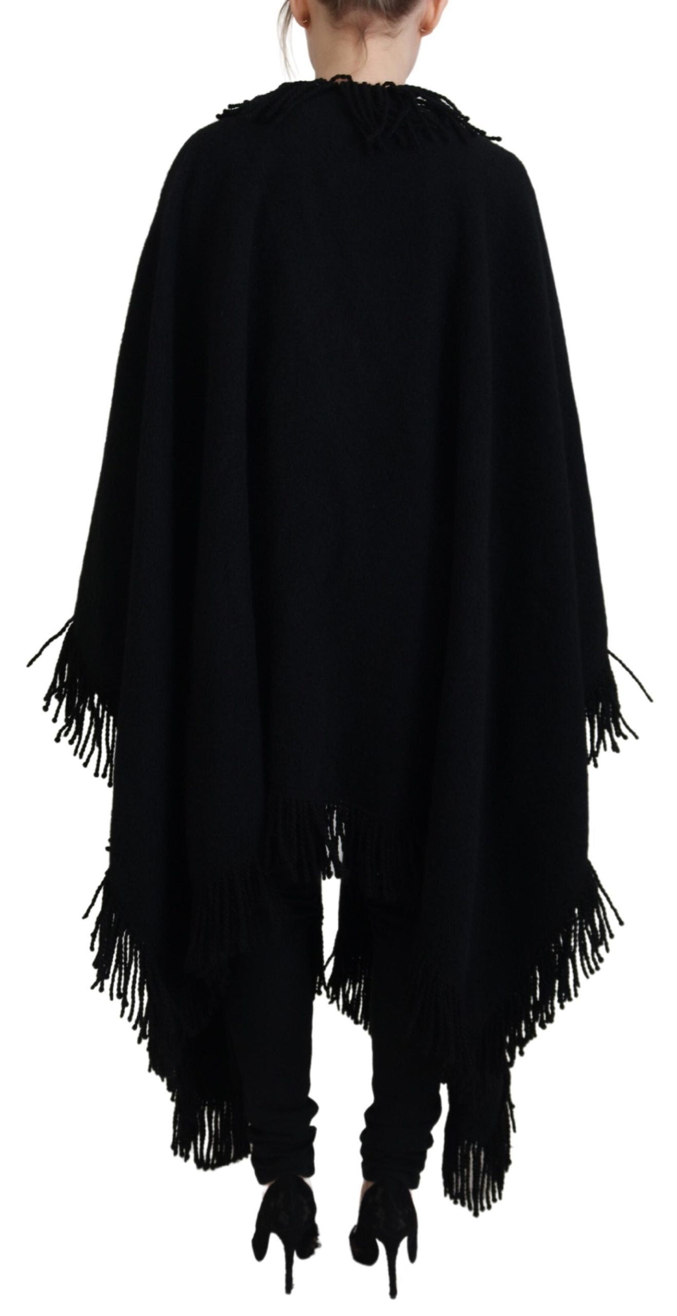 Black Long Sleeves Fringe Coat Alpaca Jacket