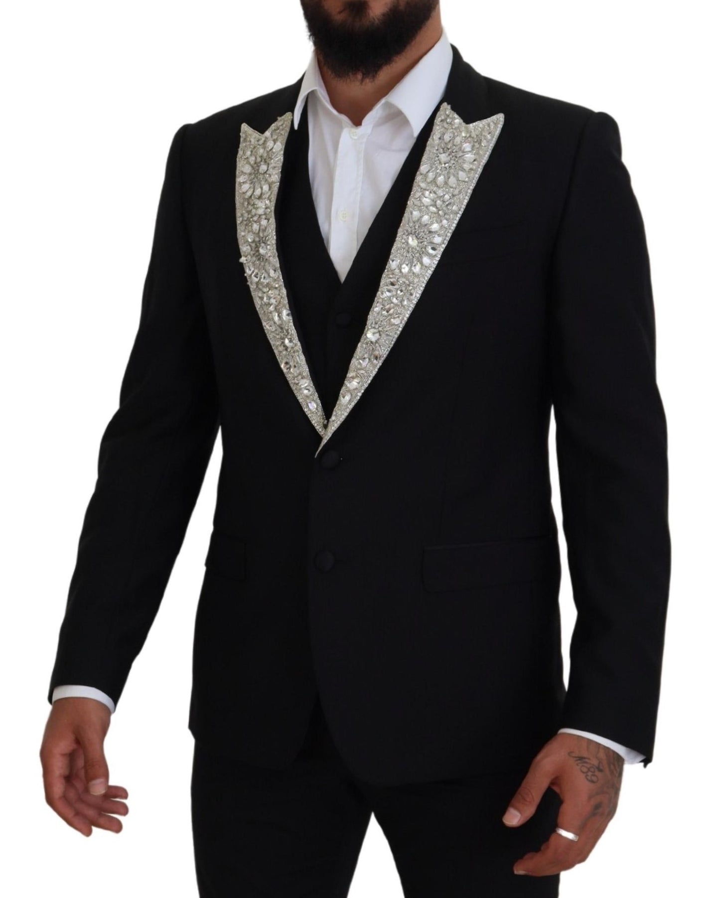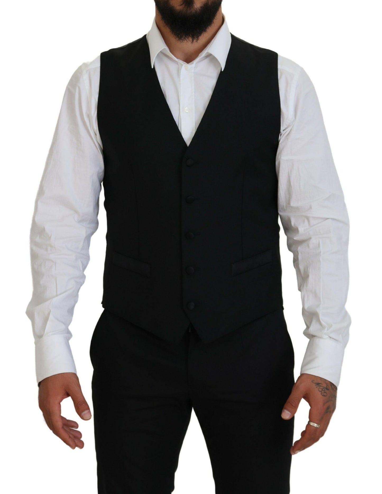 Step into the world of high fashion with this stunning, 100% authentic Dolce & Gabbana black slim-fit two-piece blazer and vest. Perfect for those who appreciate the fine craftsmanship and sophisticated style that Dolce & Gabbana is renowned for. The Martini model features a sleek single breasted one-button design that’s both timeless and modern. With a comfortable slim fit, this set is designed to elevate any formal or smart-casual look with ease and sophistication.