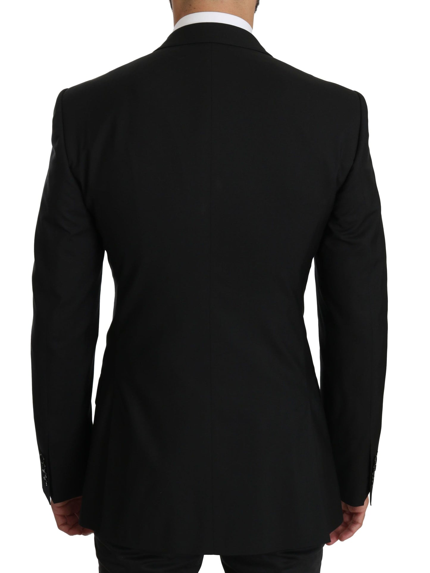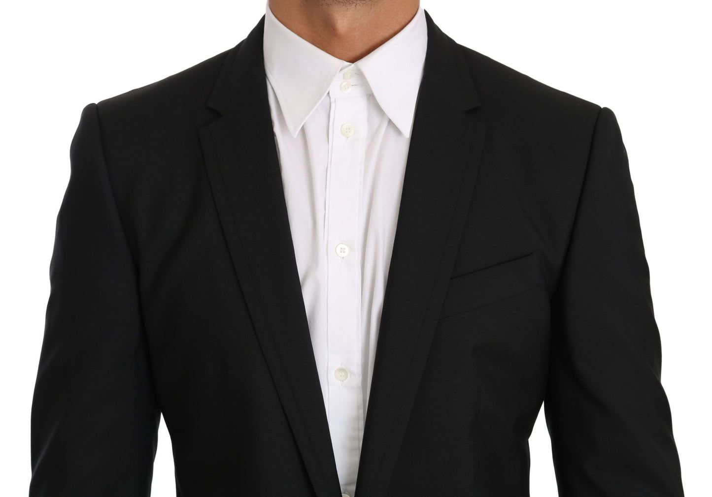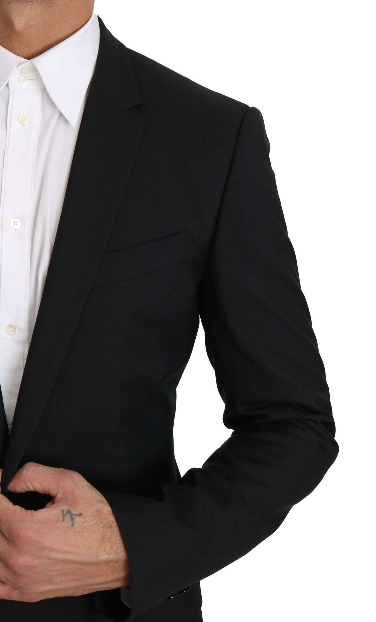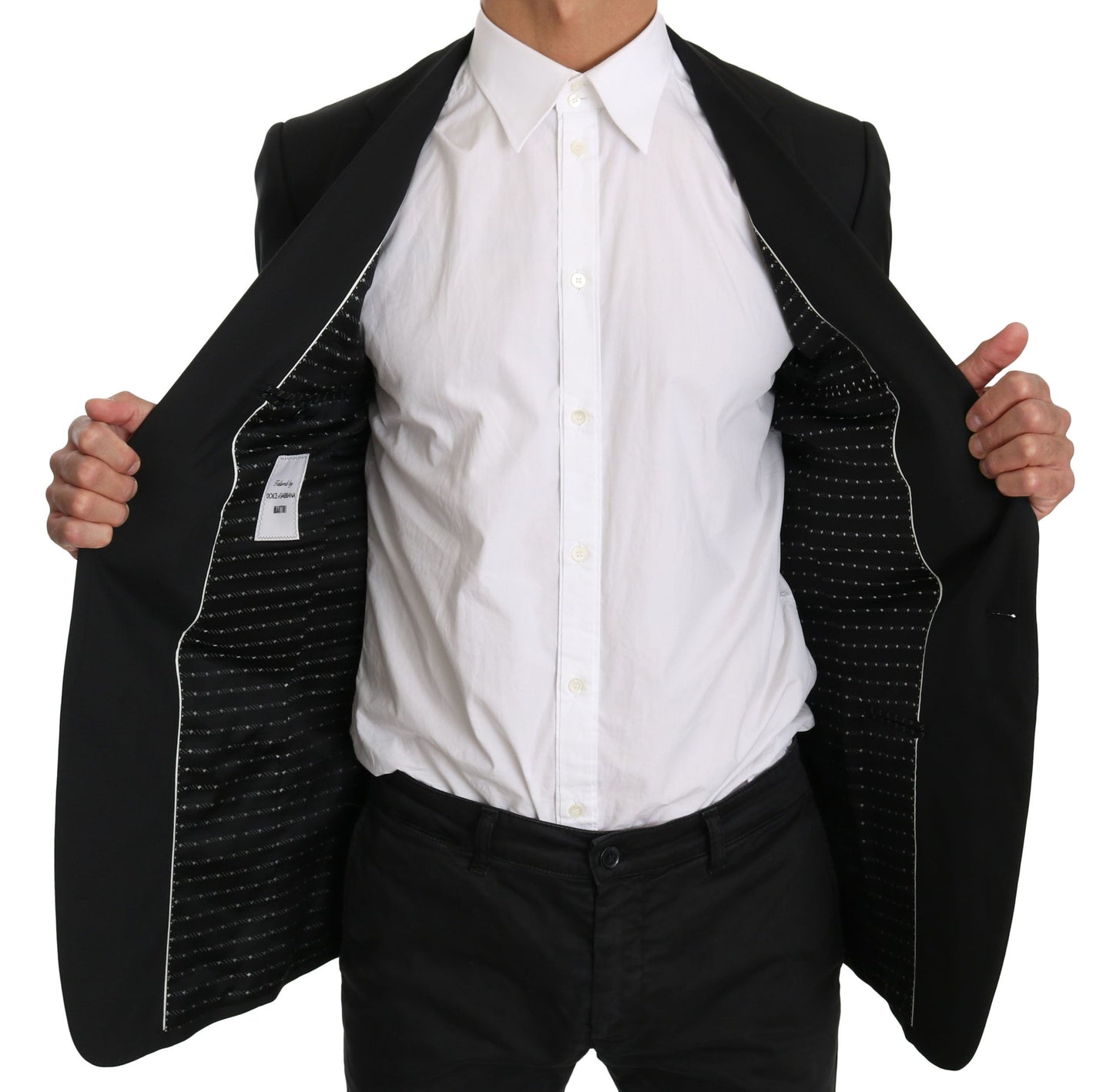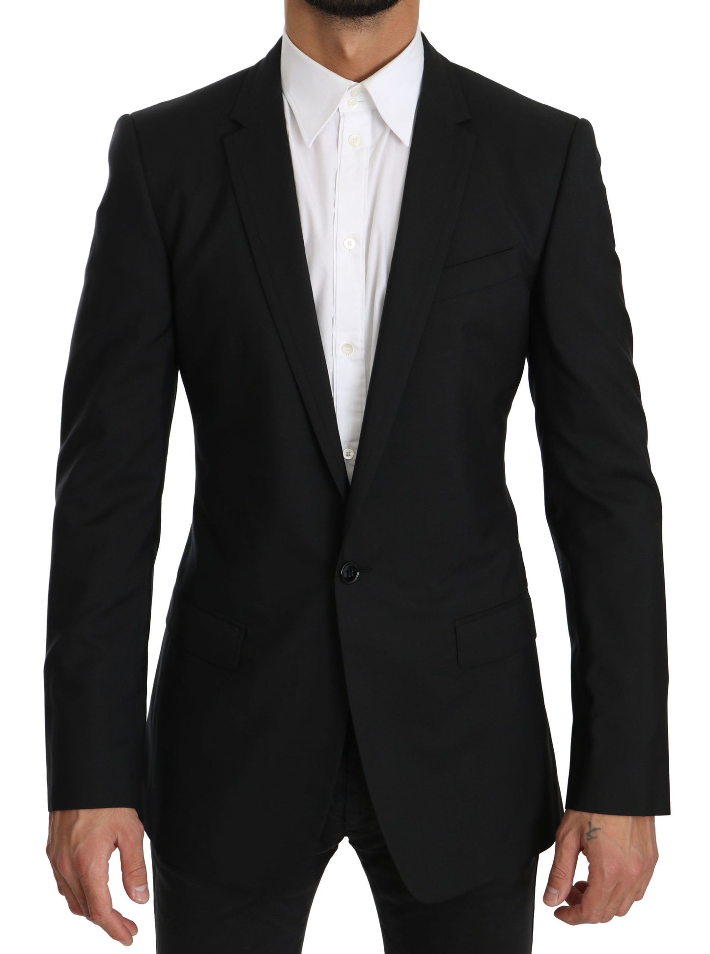 Step out in sophistication with this stunning Dolce & Gabbana Martini Blazer. A perfect blend of luxury and tailored precision, this sleek black blazer is a wardrobe essential for those who appreciate the finer things in life. Crafted from a sumptuous mix of silk and virgin wool, it offers a slim fit that effortlessly contours to your frame, ensuring a sharp silhouette for any formal occasion.