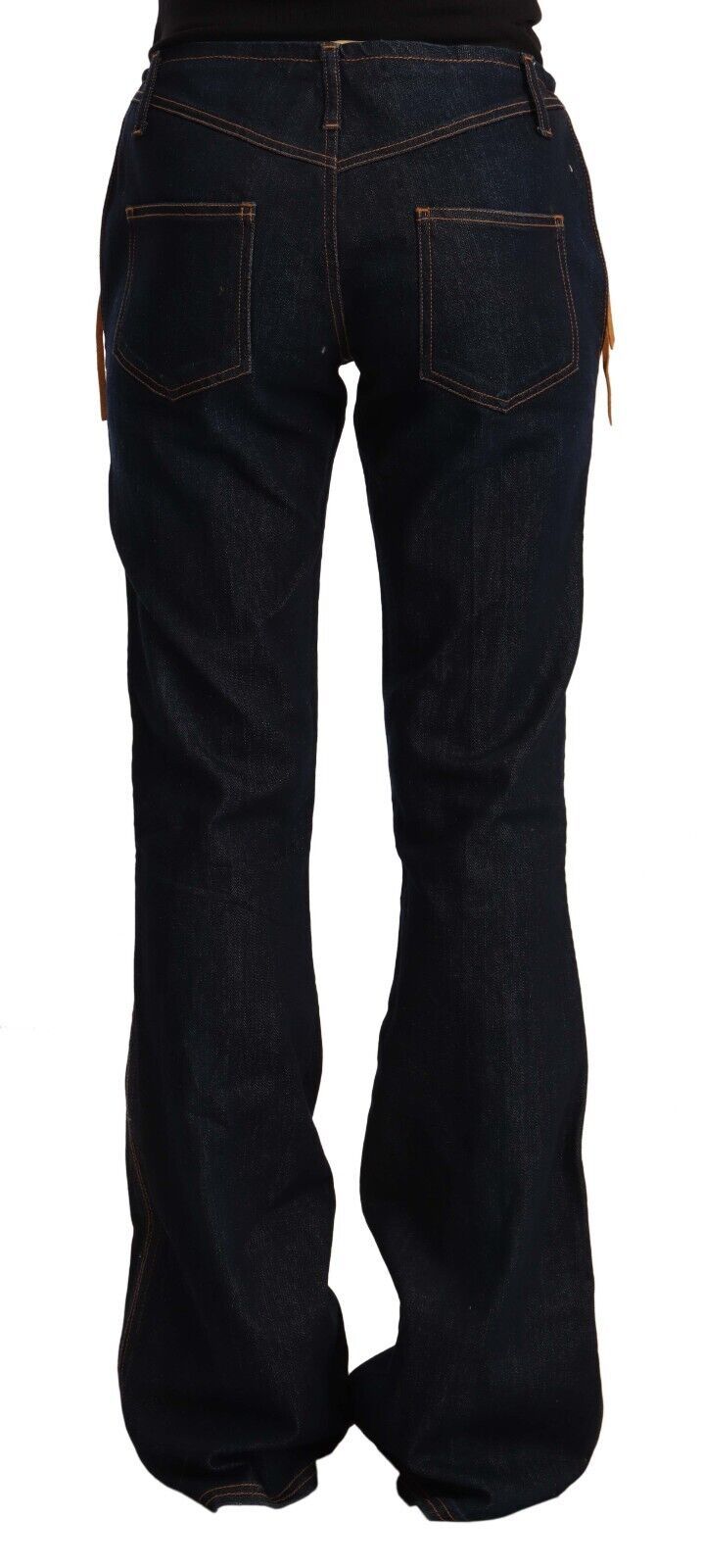 Step into sophistication with these stunning GF Ferre slim fit jeans. Expertly crafted to provide an impeccable fit, they are brand new with tags and feature a versatile black color that complements any ensemble. The comfortable mid waist style is equipped with a neat zipper and button closure. Emblazoned with discreet logo details, these jeans are a blend of fashion and function, perfect for the discerning fashionista.
