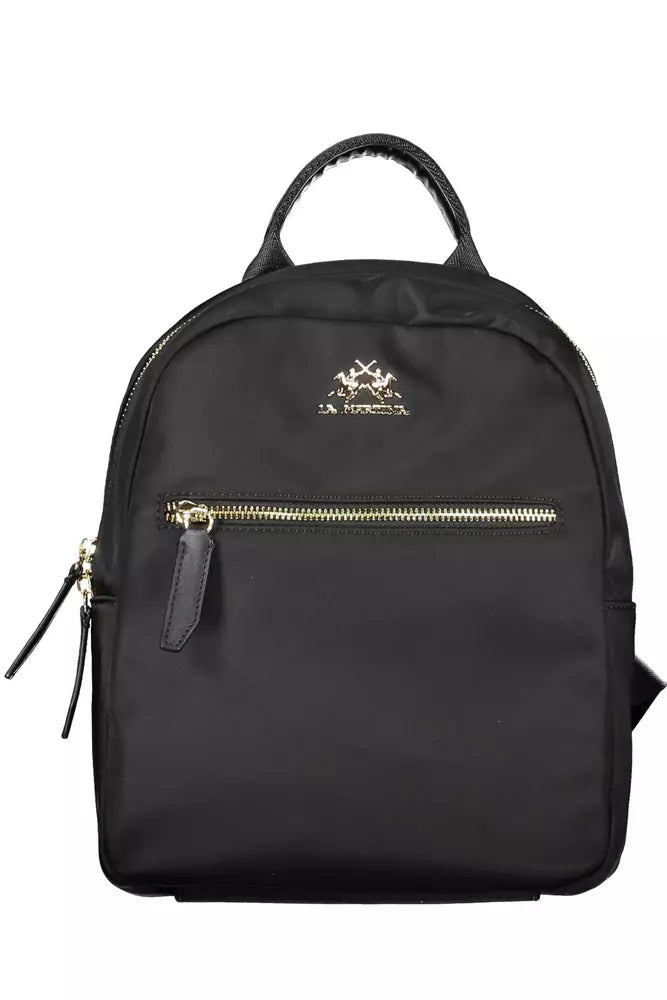 Elevate your style with this sleek black backpack from La Martina, designed for both functionality and elegance. Featuring a comfortable single handle, adjustable shoulder straps for a custom fit, and multiple pockets for ample storage, this backpack is perfect for the fashion-forward individual on the go. The zip closure secures your belongings while the prominent logo adds a distinctive touch of luxury to your everyday carry.