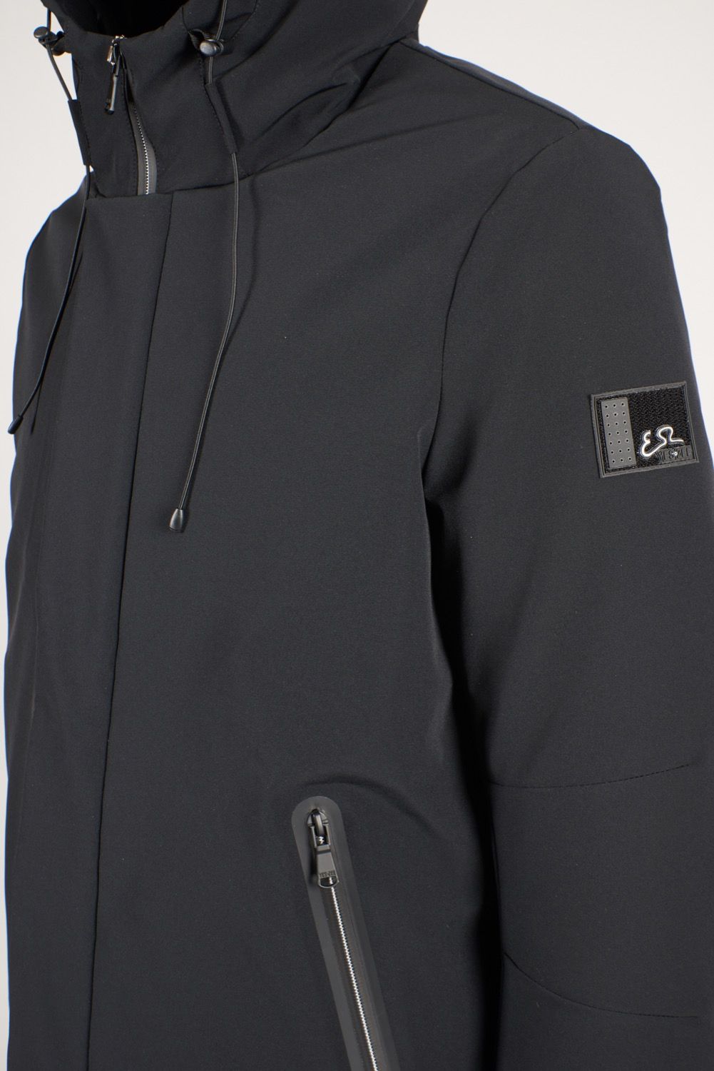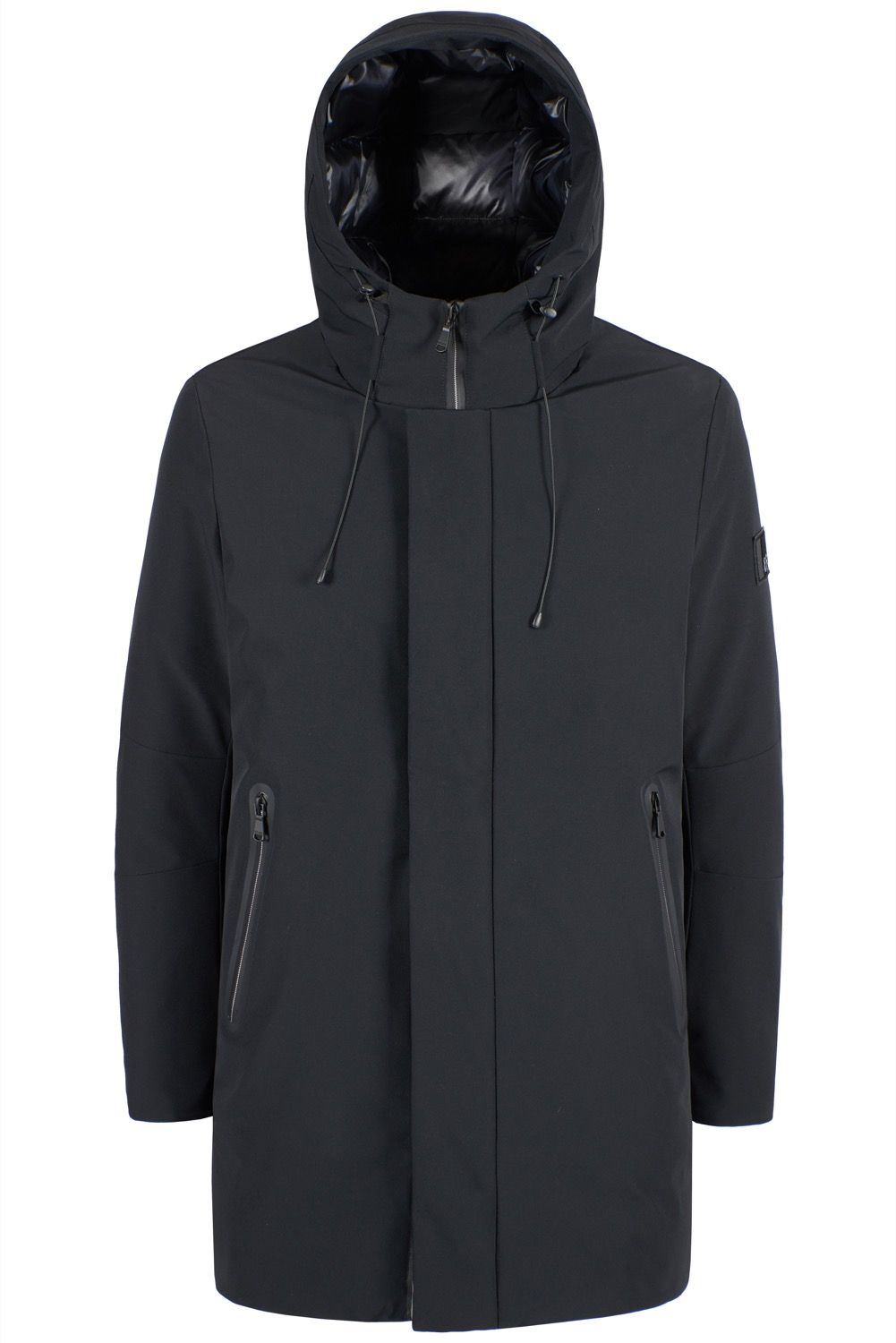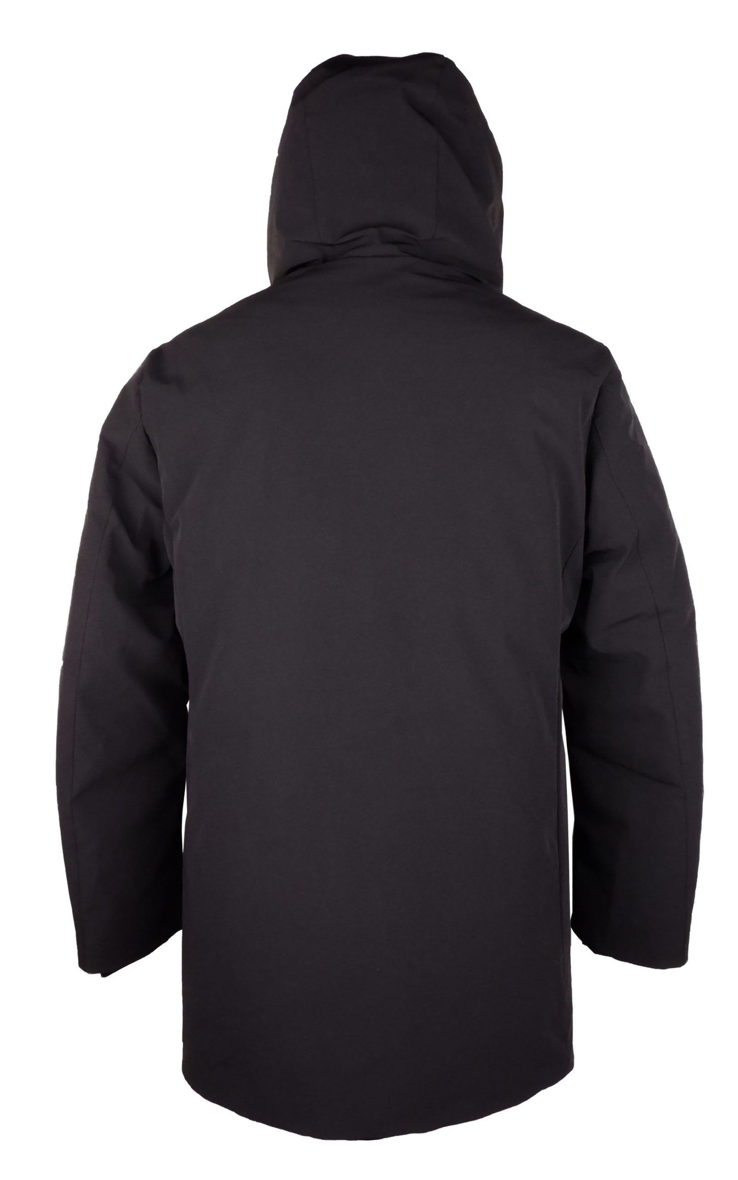 Sophisticated yet practical, this black hooded jacket is a versatile addition to your outerwear collection. Designed for maximum comfort and style, the four-pocket feature offers functionality while the front zip and button closure ensures warmth and protection against the chill. Crafted from high-quality technical fabric, this jacket is an essential for brisk days.