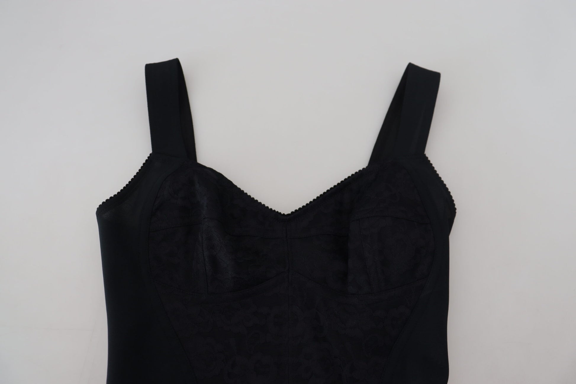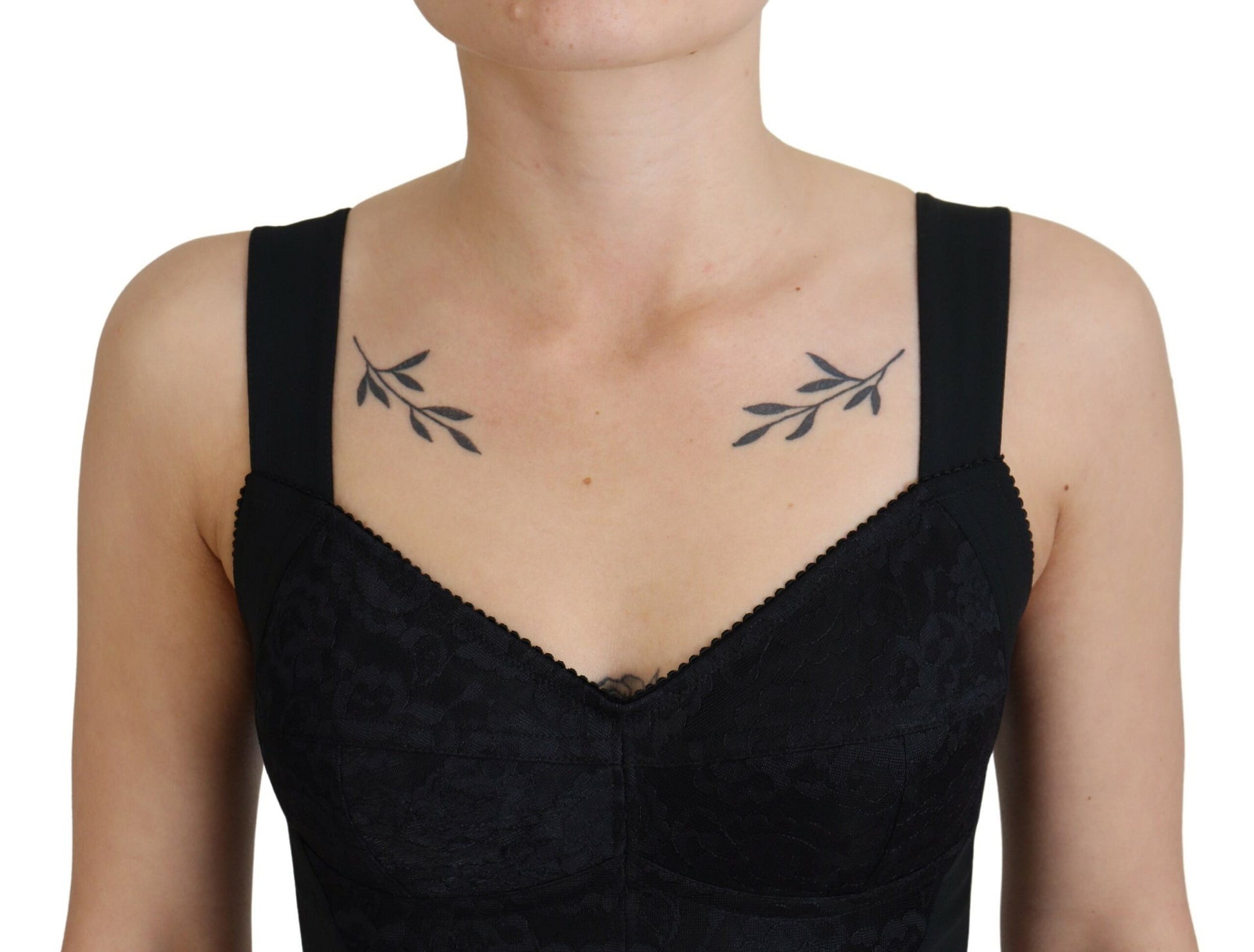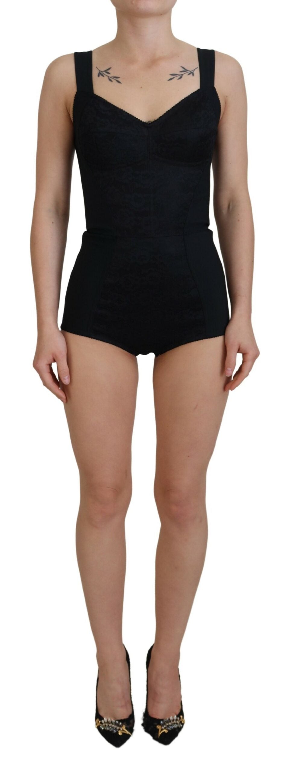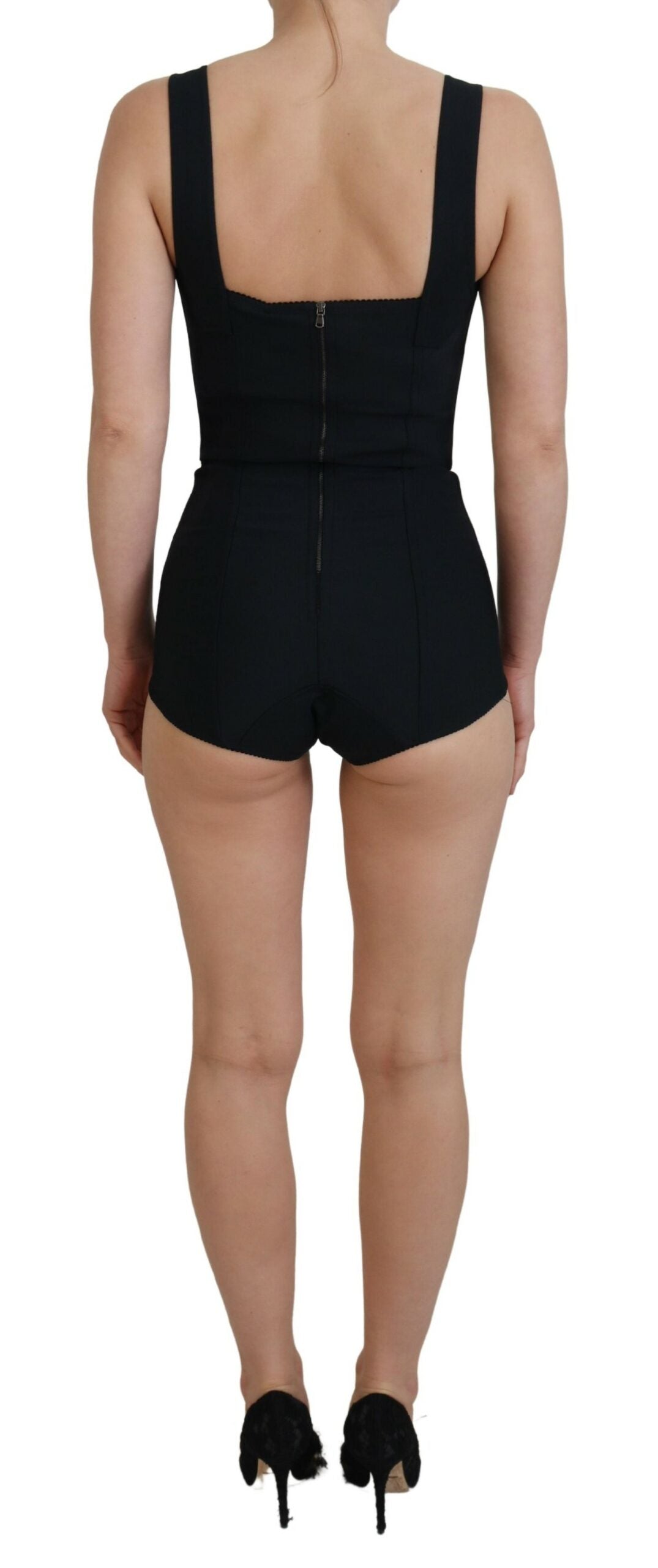 Discover luxury redefined with this sophisticated bodysuit dress by Dolce & Gabbana. With its sleek black hue and form-fitting nylon blend, this dress promises to deliver a seamless blend of comfort and high fashion. Its zipper closure ensures a perfect fit, complemented by the discreet logo details. Exquisitely crafted in Italy, this dress is an epitome of elegance and style.