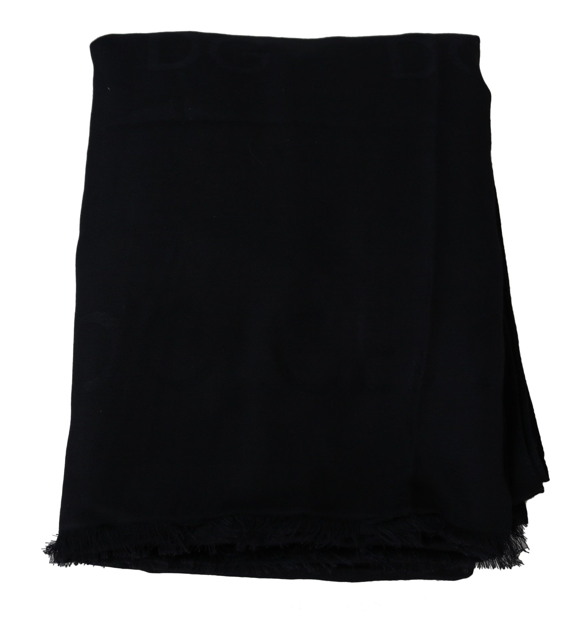 Indulge in the opulence of Dolce & Gabbana with this stunning black scarf. This exquisite accessory is expertly crafted in Italy from a luxurious blend of 95% modal and 5% cashmere, ensuring a soft touch against the skin. It boasts an elegant black pattern and is adorned with delicate fringing on the sides, adding a touch of sophistication to any ensemble. Elevate your accessory collection with this gorgeous, brand new scarf, complete with authentic tags and logo details.