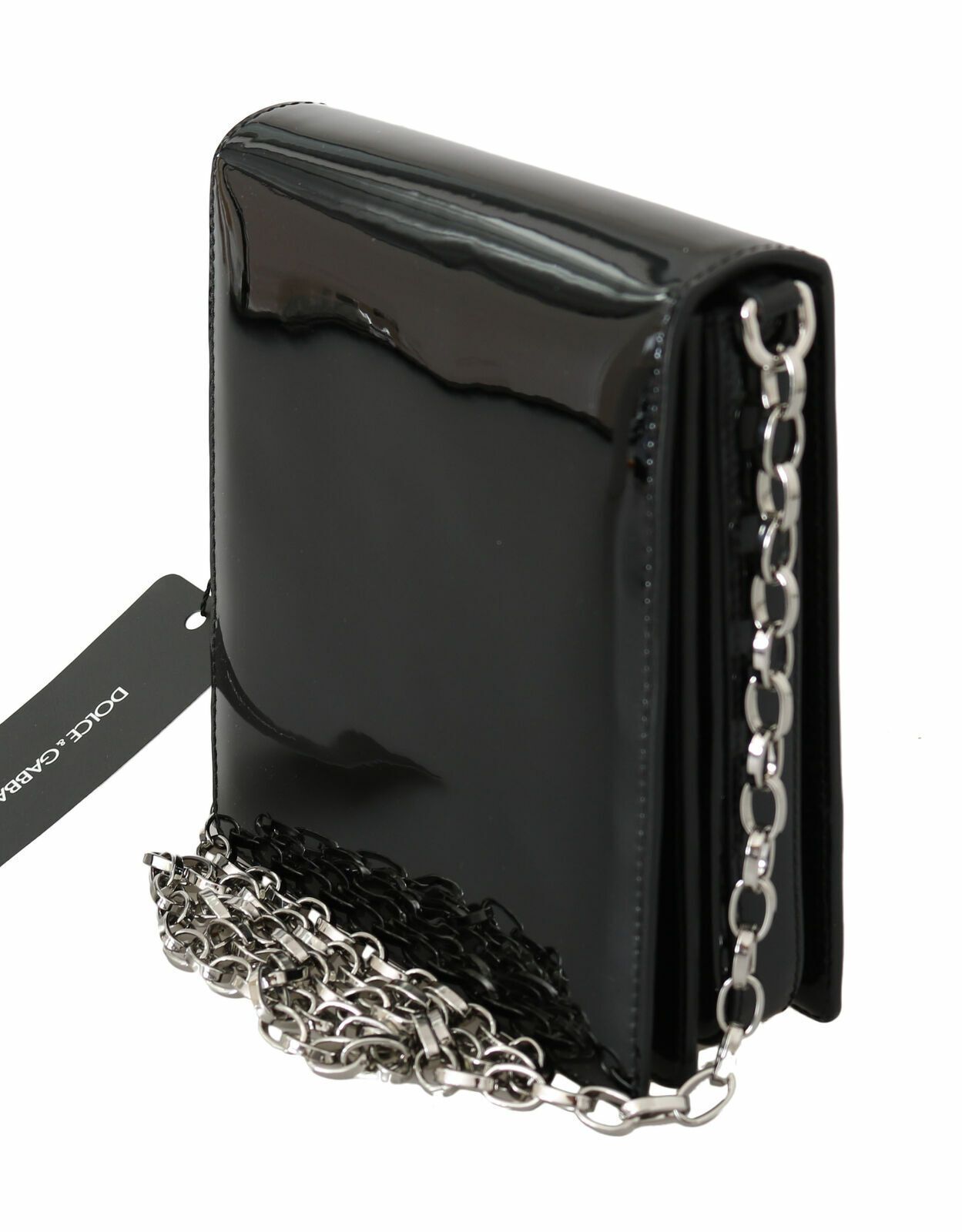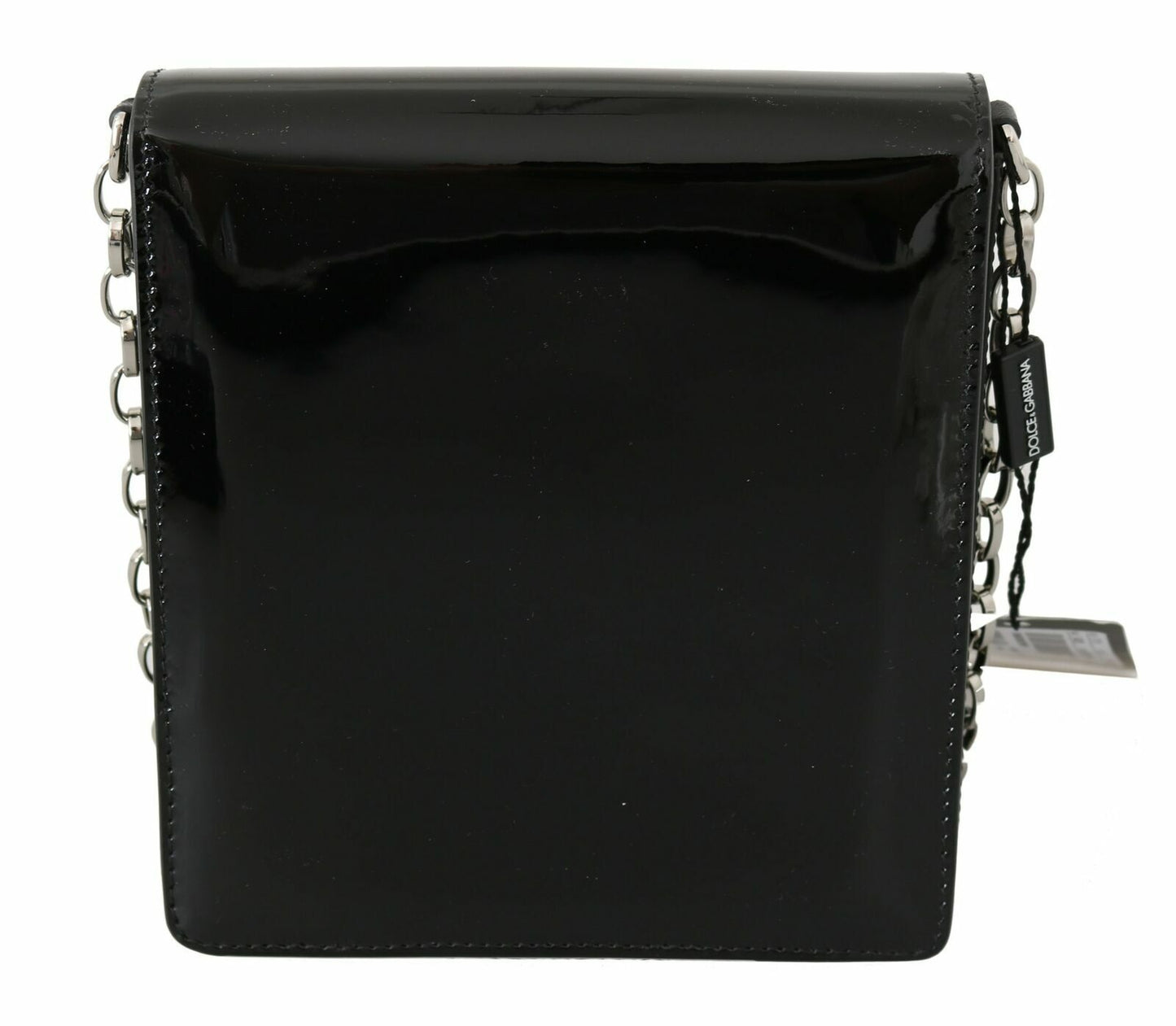 Indulge in the epitome of evening elegance with this exquisite Dolce & Gabbana clutch. A sophisticated accessory that’s sure to turn heads, this shoulder purse from the #DG GIRLS collection boasts a glossy patent leather finish in a timeless black hue, complemented by striking silver metal detailing. Its sleek silhouette and luxurious black leather interior make it an ideal companion for your most glamorous affairs. This Italian masterpiece is not just a statement piece but also a testament to impeccable craftsmanship.